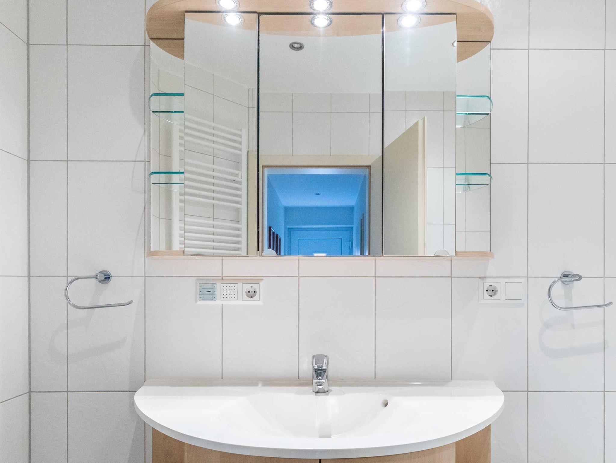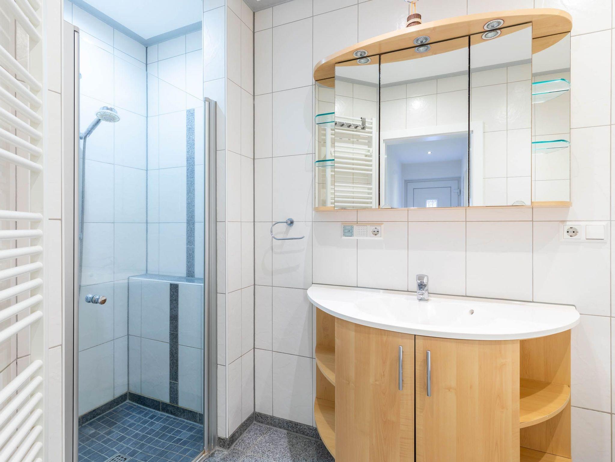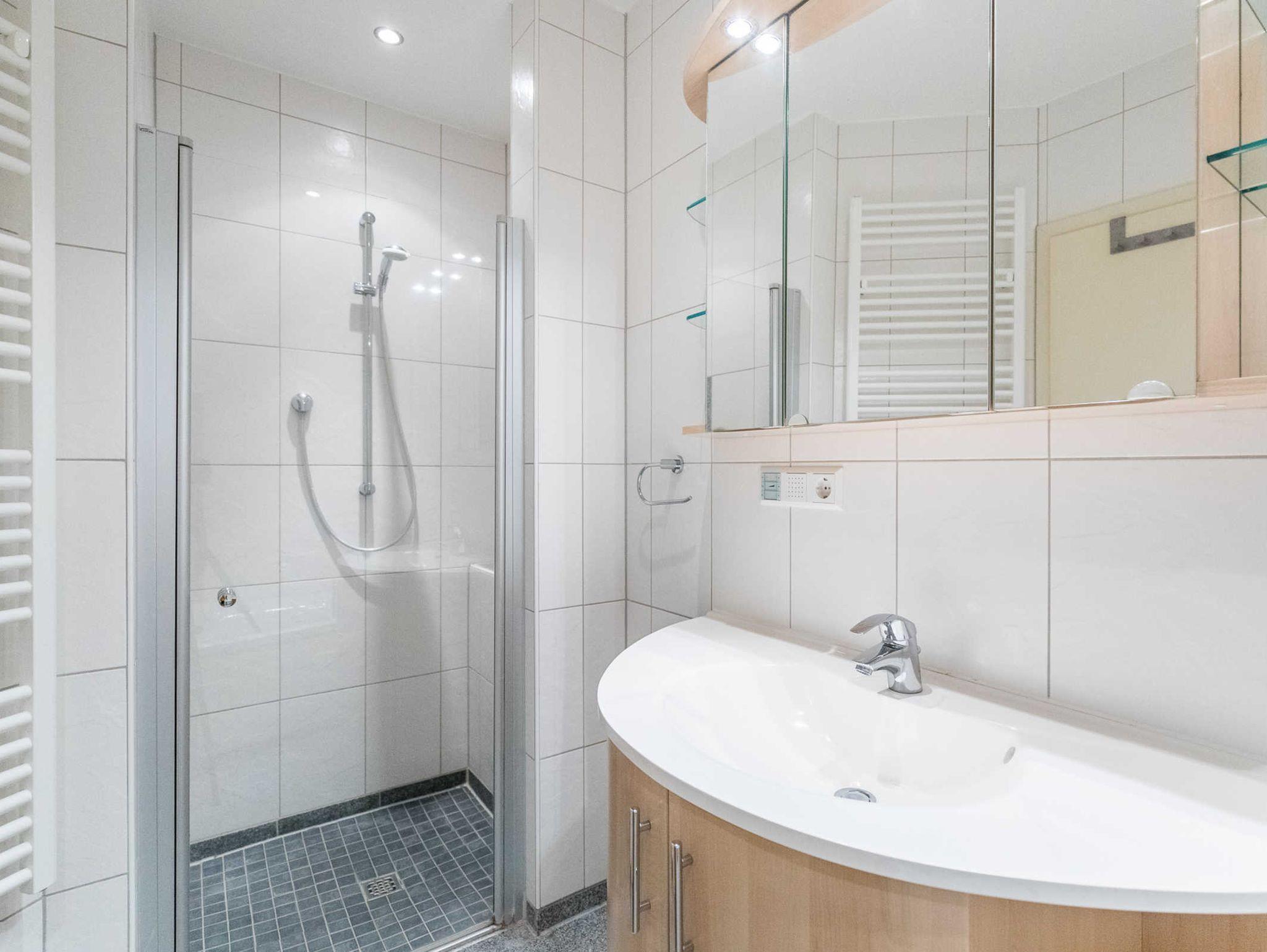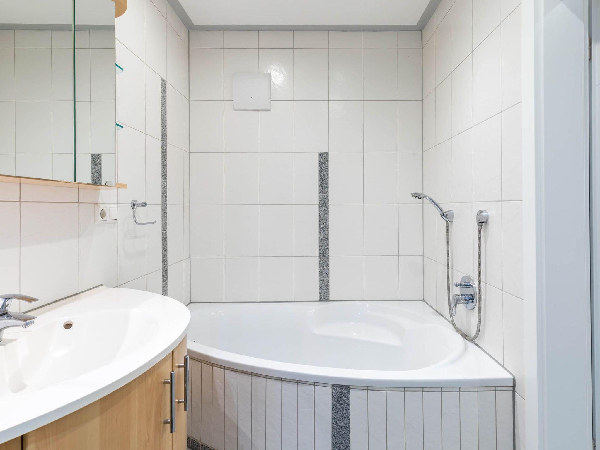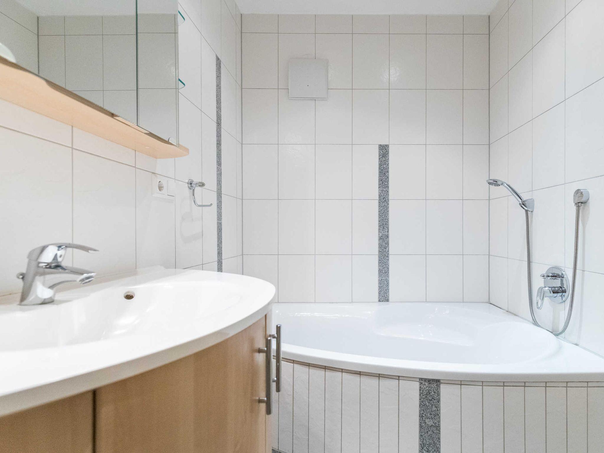 Das Badezimmer ist nicht nur mit einer Dusche, sondern zusätzlich mit einer Eckbadewanne ausgestattet. Praktischerweise gibt es ein separates WC.
