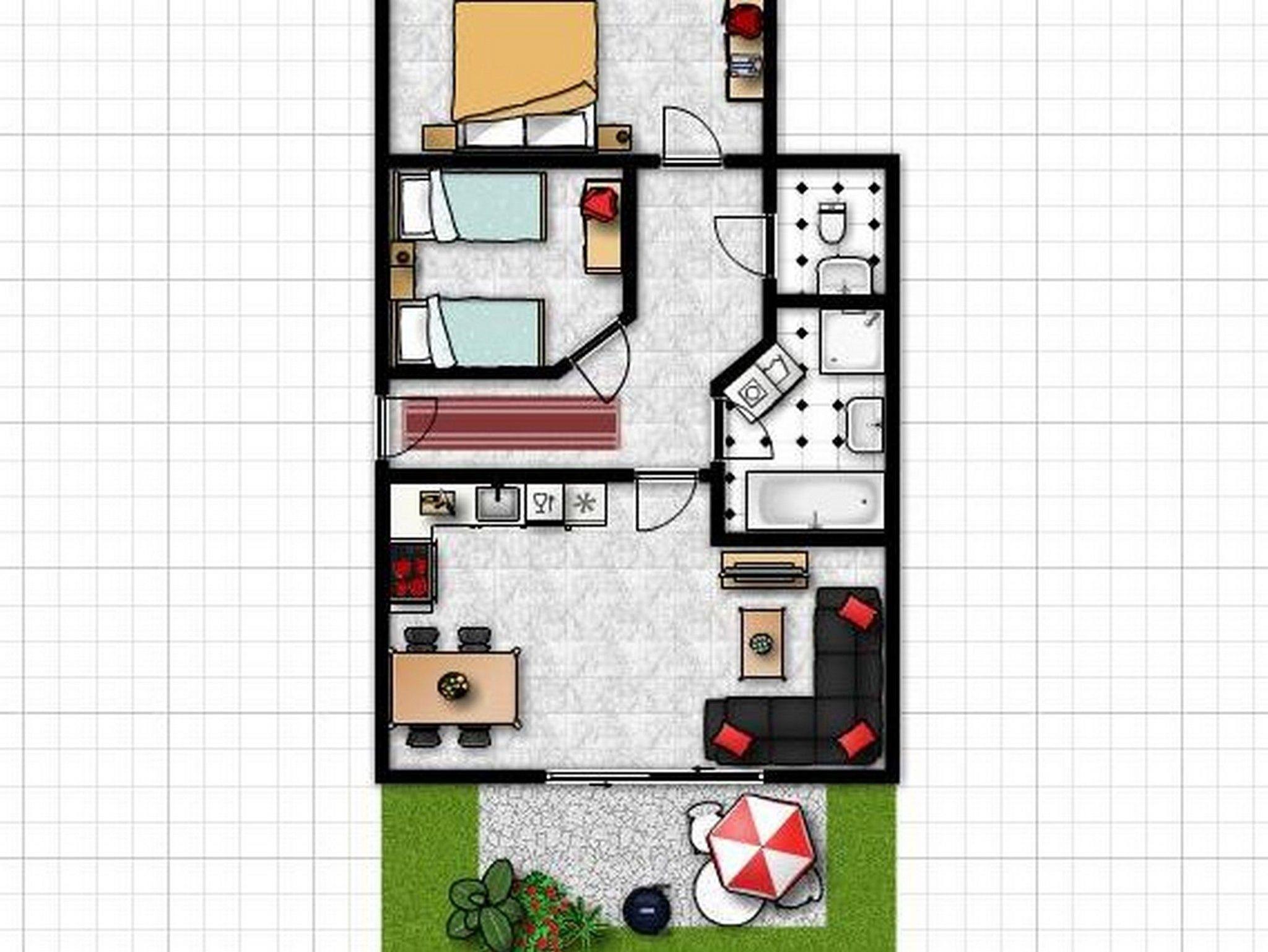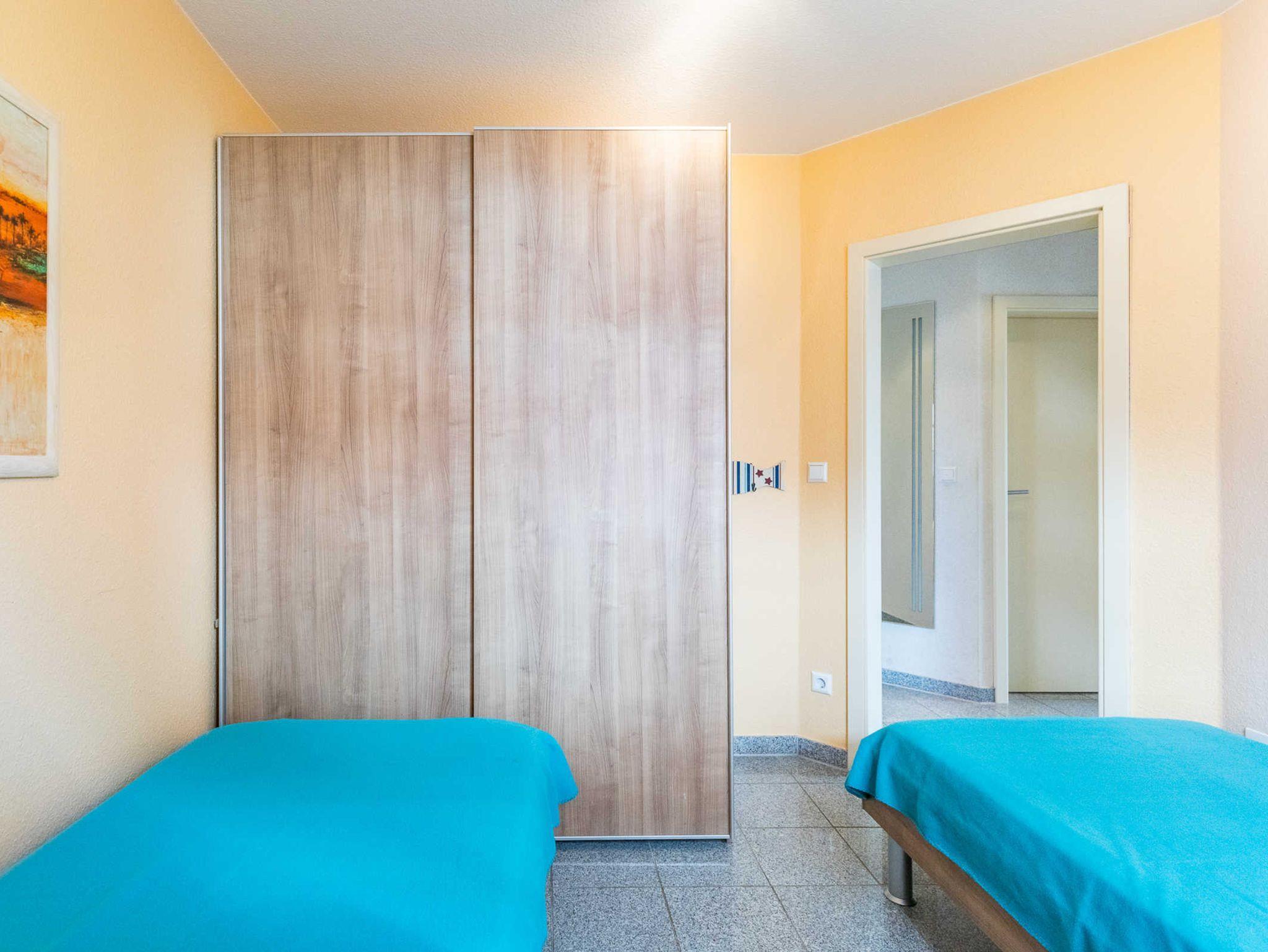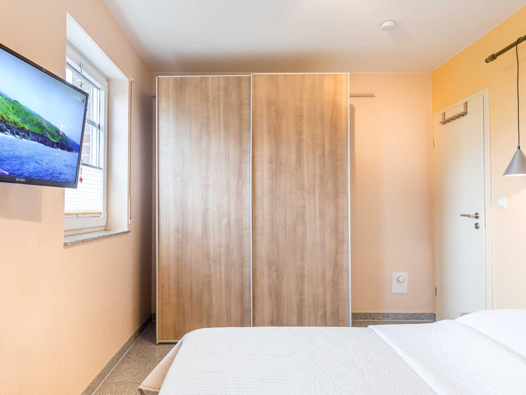 Im Schlafzimmer findet man ein gemütliches Doppelbett und TV mit integriertem DVD-Player, das Gästezimmer bietet zwei Einzelbetten. Beide Zimmer bieten auch einen Kleiderschrank.