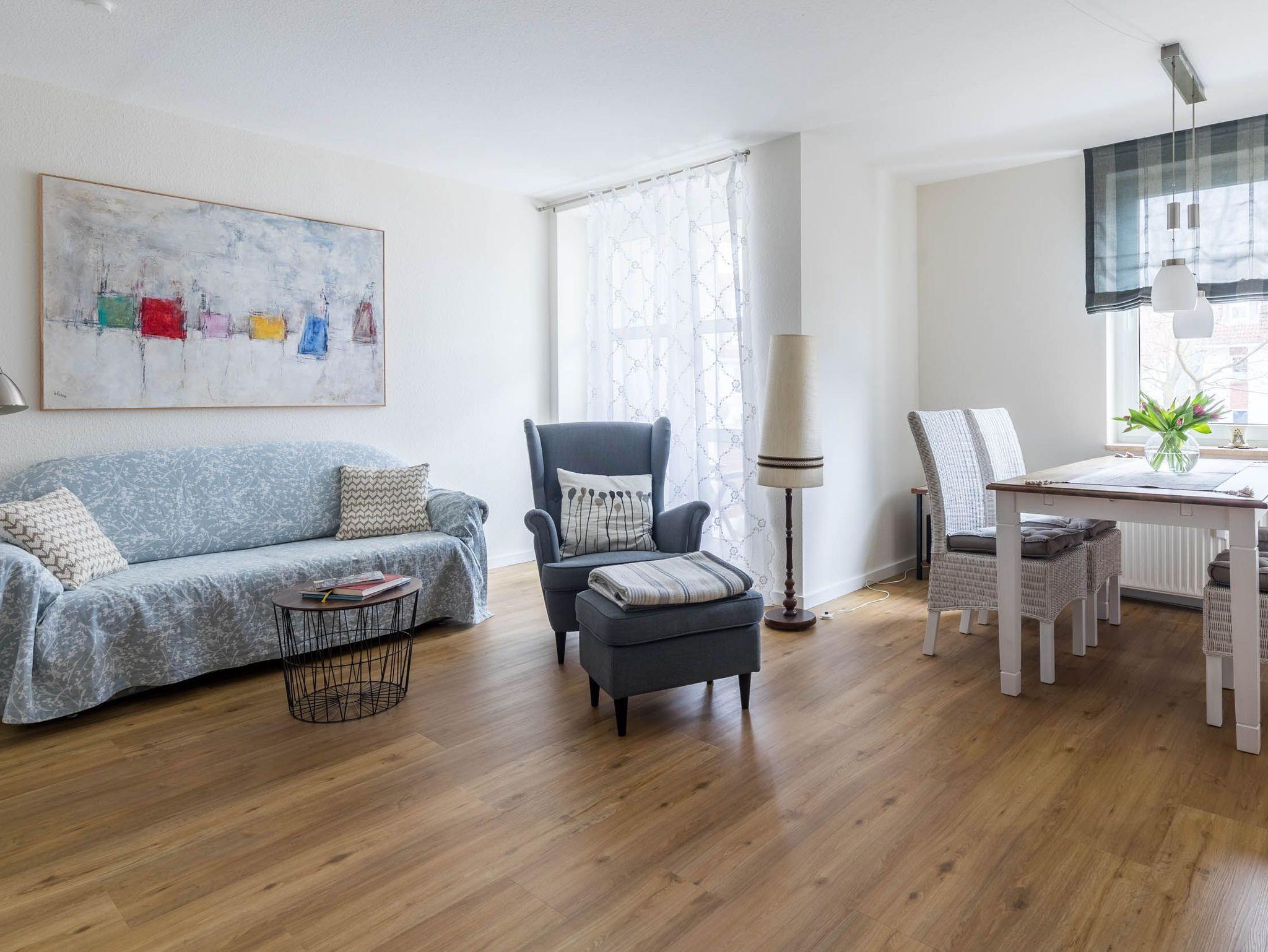 Die hell gestaltete und moderne 2-Zimmer-Ferienwohnung im 1. Obergeschoss bietet auf rund 55qm Wohnfläche Platz für 3 Gäste.