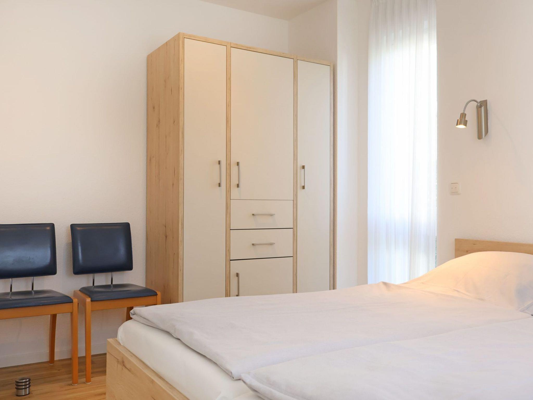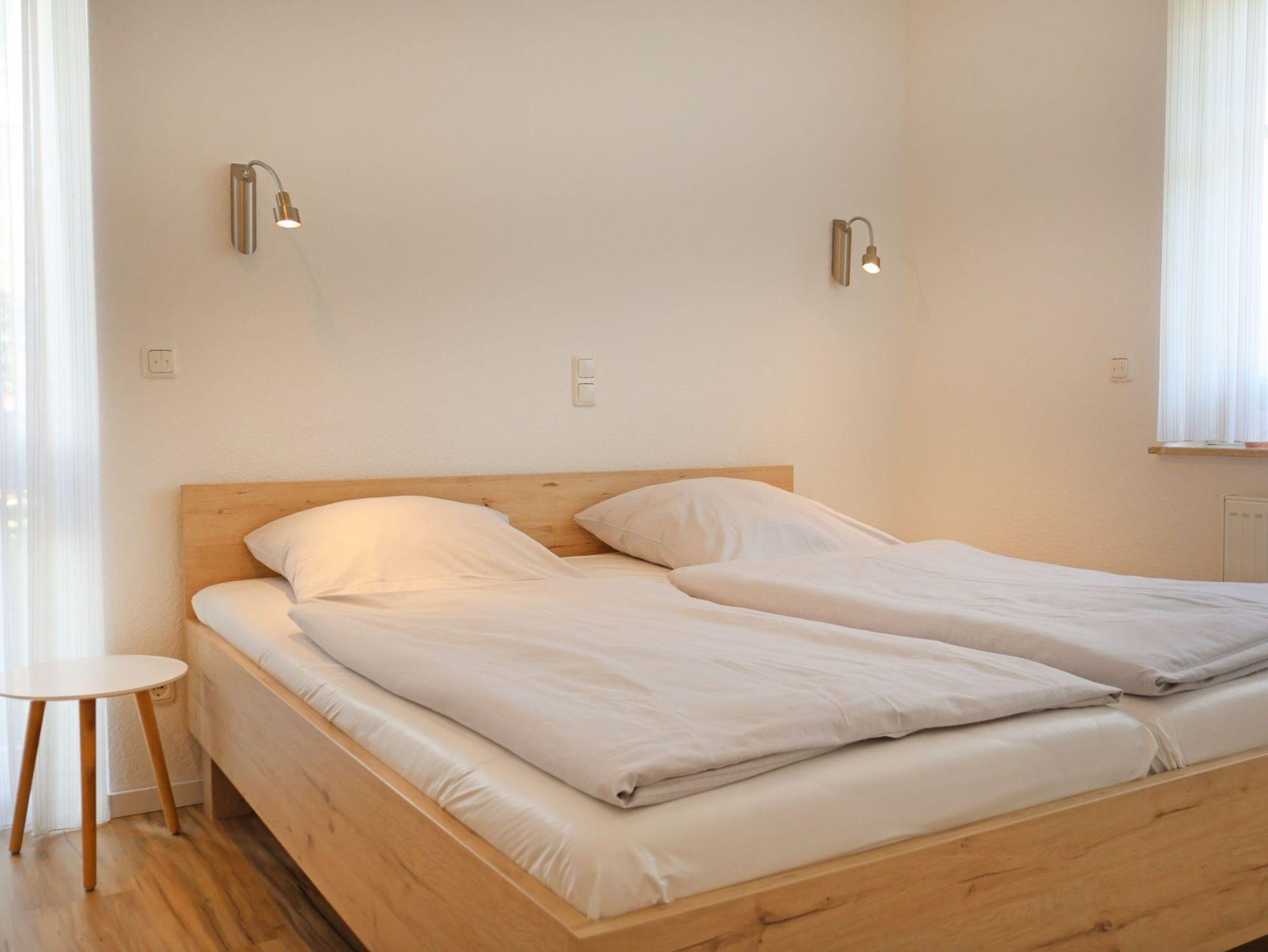 Nur 100 Meter zum feinsandigen Strand mit sehr guten Bademöglichkeiten befindet sich die 3- Zimmer Nichtraucher- Ferienwohnung 1 in der Residenz am Teich. Die zentrumsnahe, in einer Anliegerstraße liegende Wohnung, bietet mit einer schönen Terrasse Ruhe und Erholung. Auf einer Wohnfläche von 72 qm findet der Gast alles, was zu einem entspannten Aufenthalt gehört. Insbesondere die beiden separaten Schlafzimmer ? eines mit Doppelbett, das weitere mit zwei Einzelbetten- bieten bis zu 4 Personen erholsamen Schlaf. Der großzügige Wohnbereich beinhaltet eine offene, komplett ausgestattete Küchenzeile mit Geschirrspüler, Herd mit Ceranfeld, Dunstabzugshaube, Kühlschrank mit Gefrierfach, Kaffeemaschine, Toaster, Mikrowelle sowie ausreichend Geschirr und Töpfe. Die Mahlzeiten können bequem am großen Esstisch eingenommen werden. Der gemütliche Wohnbereich mit Zugang auf die Terrasse ist mit einem Sofa, zwei Sesseln sowie einer Regalwand eingerichtet. Selbstverständlich sind auch Fernsehgerät und Musikanlage vorhanden. Ein Duschbad ist vorhanden. Im Ferienhaus befinden sich Fahrradkeller, Wasch- und Trockenraum. Waschmaschinennutzung gegen Gebühr.