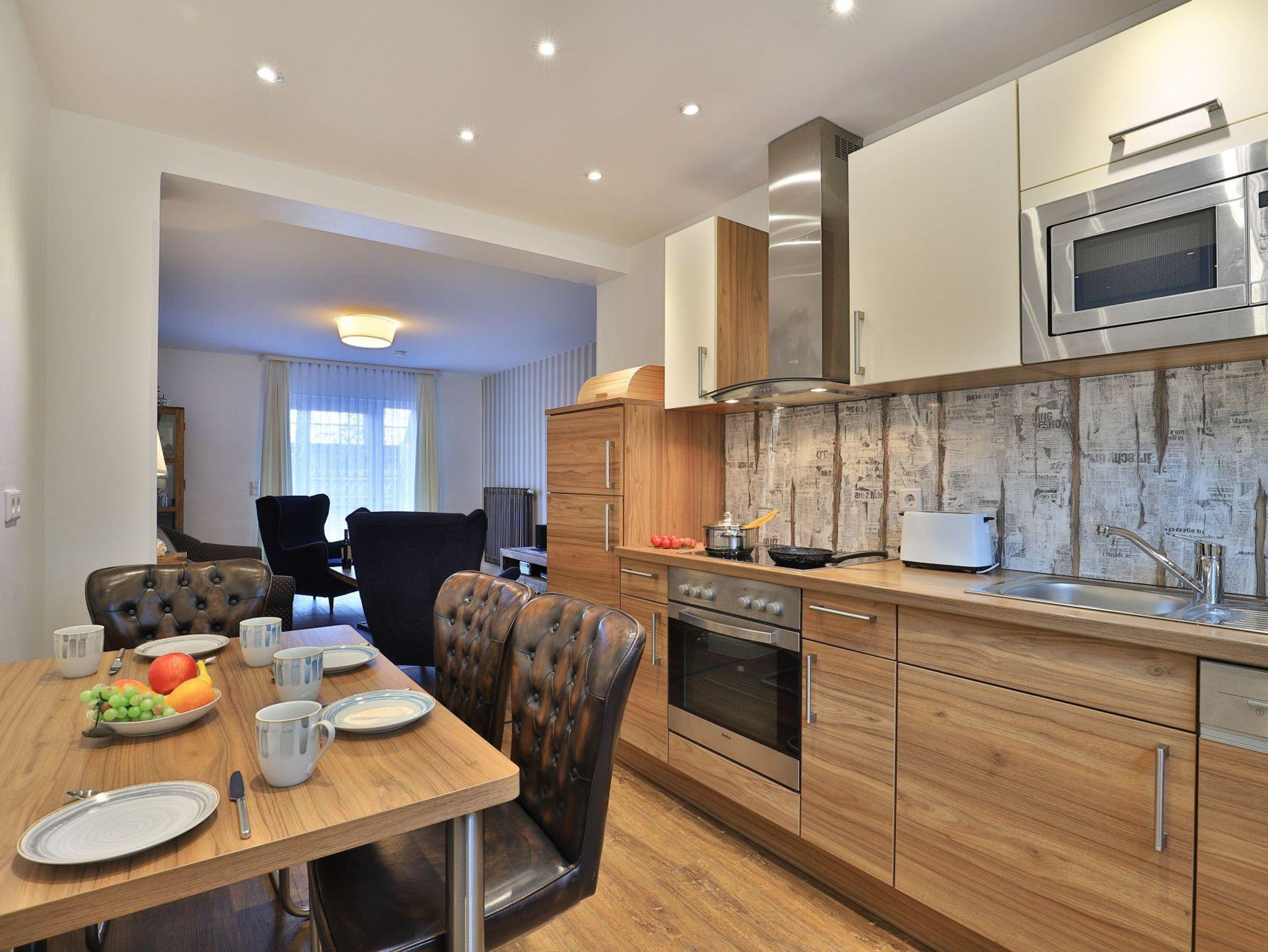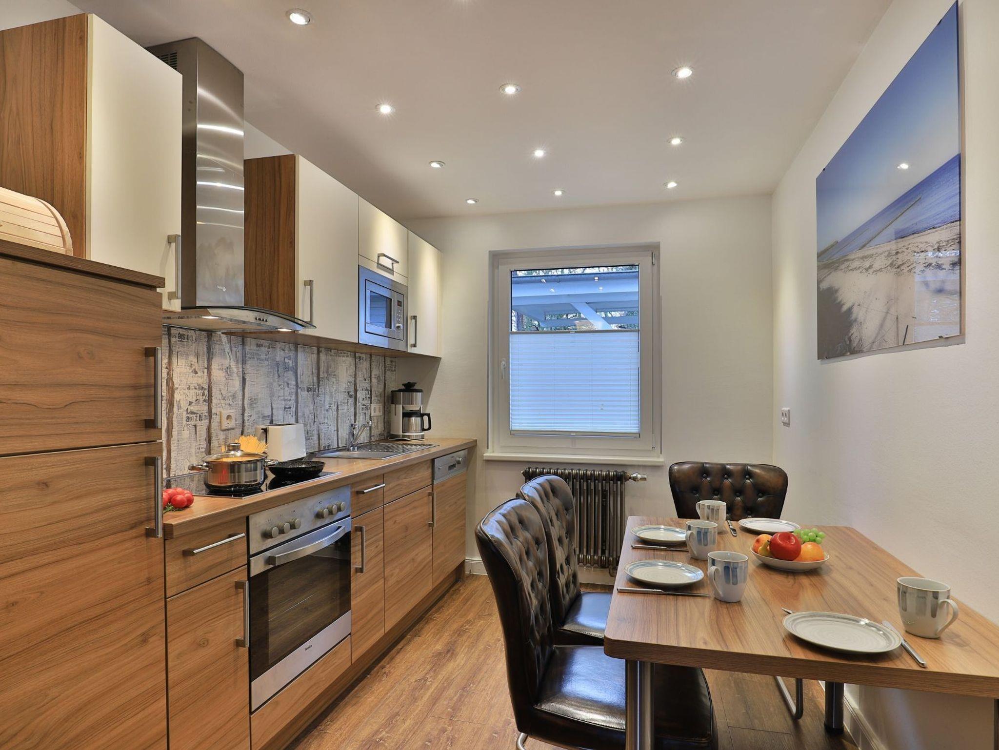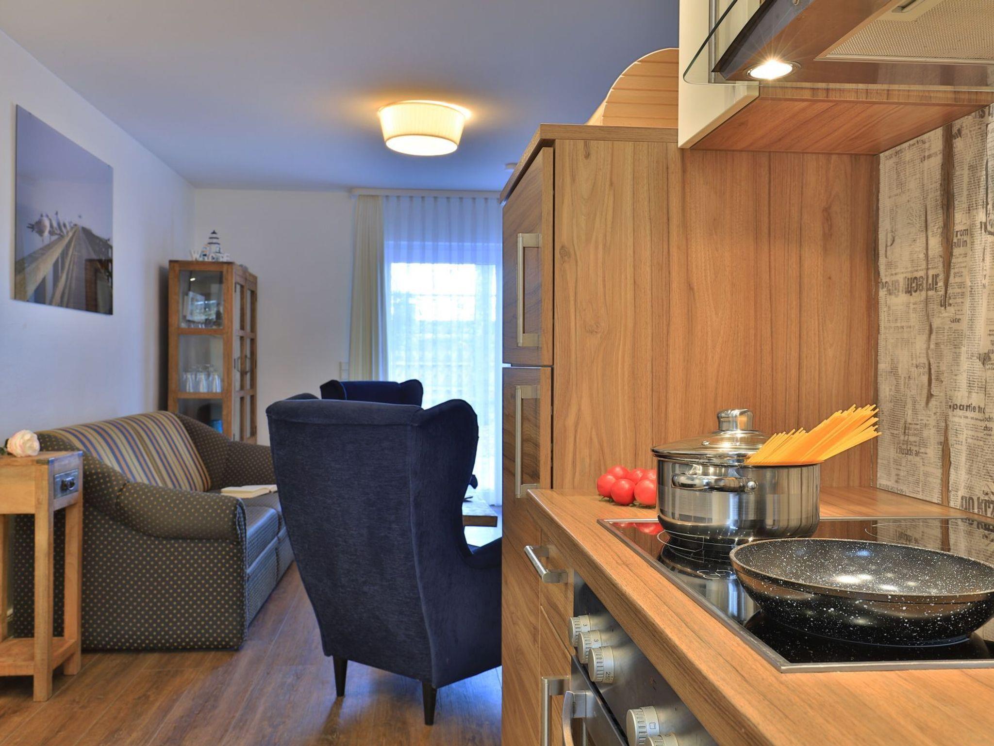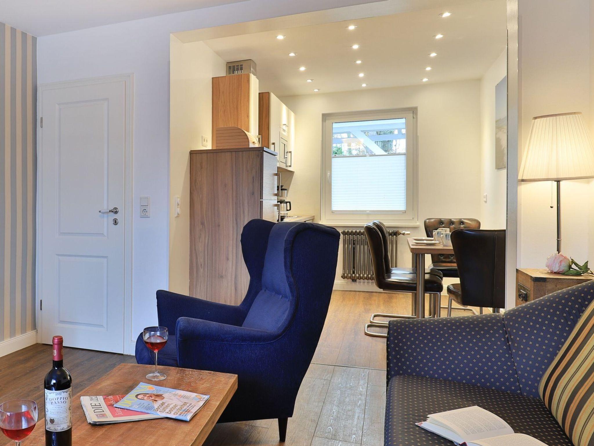 Die außergewöhnlich schicke Erdgeschoss-Nichtraucher Ferienwohnung ? Strandhafer 2- mit geschützter Nord-Terrasse umfasst eine Wohnfläche von 46qm und begrüßt mit hochwertiger Möblierung. In dem großzügigen Wohn-/Essbereich bietet ein - im modernen Design gehaltenes - ausziehbares Sofa die Möglichkeit von 2 weiteren Schlafplätzen. Flachbild TV und DVD, Musikanlage sind hier ebenso selbstverständlich wie kostenfreies WLAN. Die offene Komfort Wohnküche ist bestens ausgestattet mit Geschirrspüler, Ceranfeldherd, Backofen, Dunstabzugshaube, Mikrowelle u.v.m. Bestimmt werden Sie gerne am großen Esstisch gemeinsame Mahlzeiten einnehmen oder gemütliche Erzählabende verbringen. Sanfte Träume ermöglicht das schöne, geräumige Schlafzimmer mit Doppelbett, 2 x Sessel, Kommoden und einem weiteren Fernsehgerät. Das moderne Duschbad mit ebenerdiger Duschkabine, Tageslichtfenster, Fön und Handtuchheizung verspricht einen guten Start in den Urlaubstag. Haustiere sind in diesem Apartment nicht gestattet. Ein Pkw-Stellplatz ist am Haus.