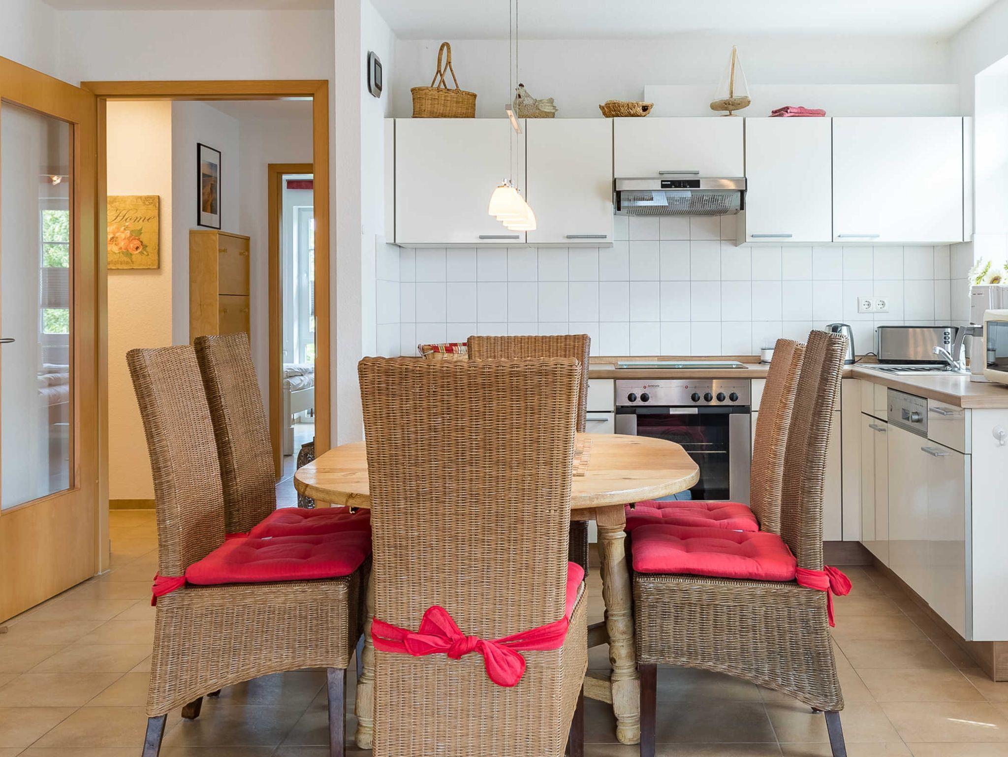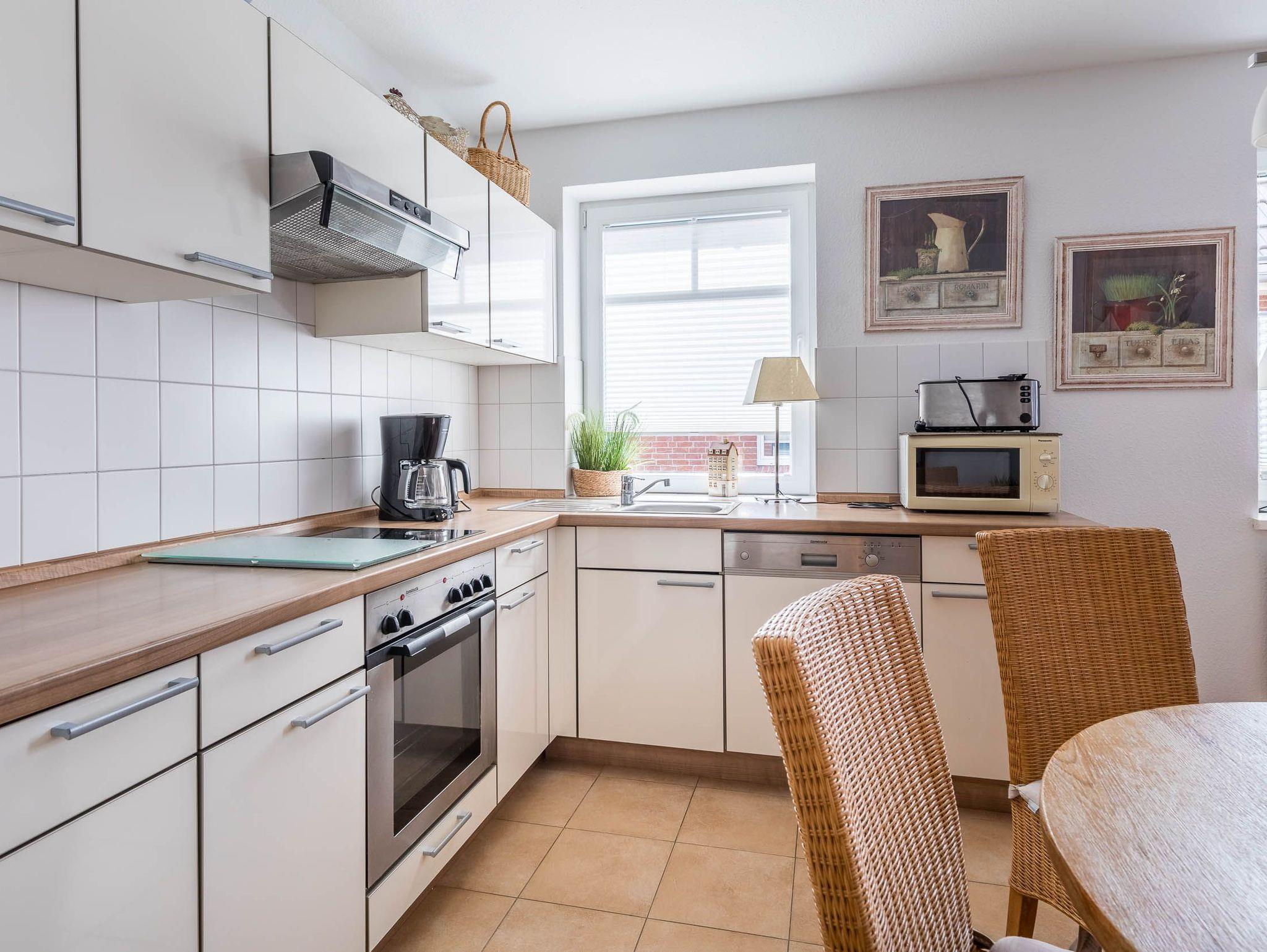 Die offene, moderne Küchenzeile bietet alles Nötige für eine sorgenfreie Selbstverpflegung. Geschirrspüler, Mikrowelle, Kühlschrank mit Gefrierfach, Herd mit Cerankochfeld, Backofen, viele nützliche Elektrokleingeräte uvm. finden Sie hier.