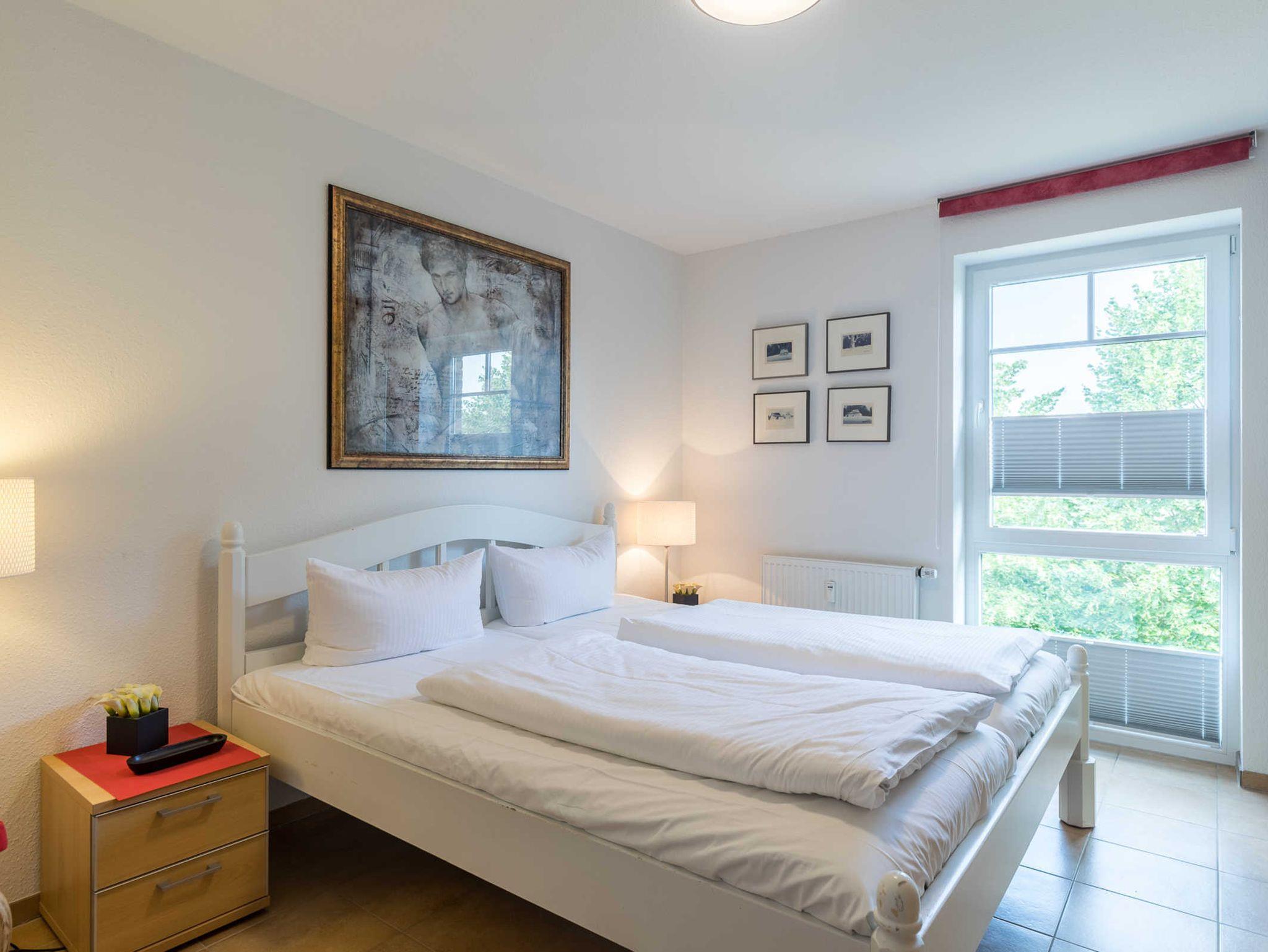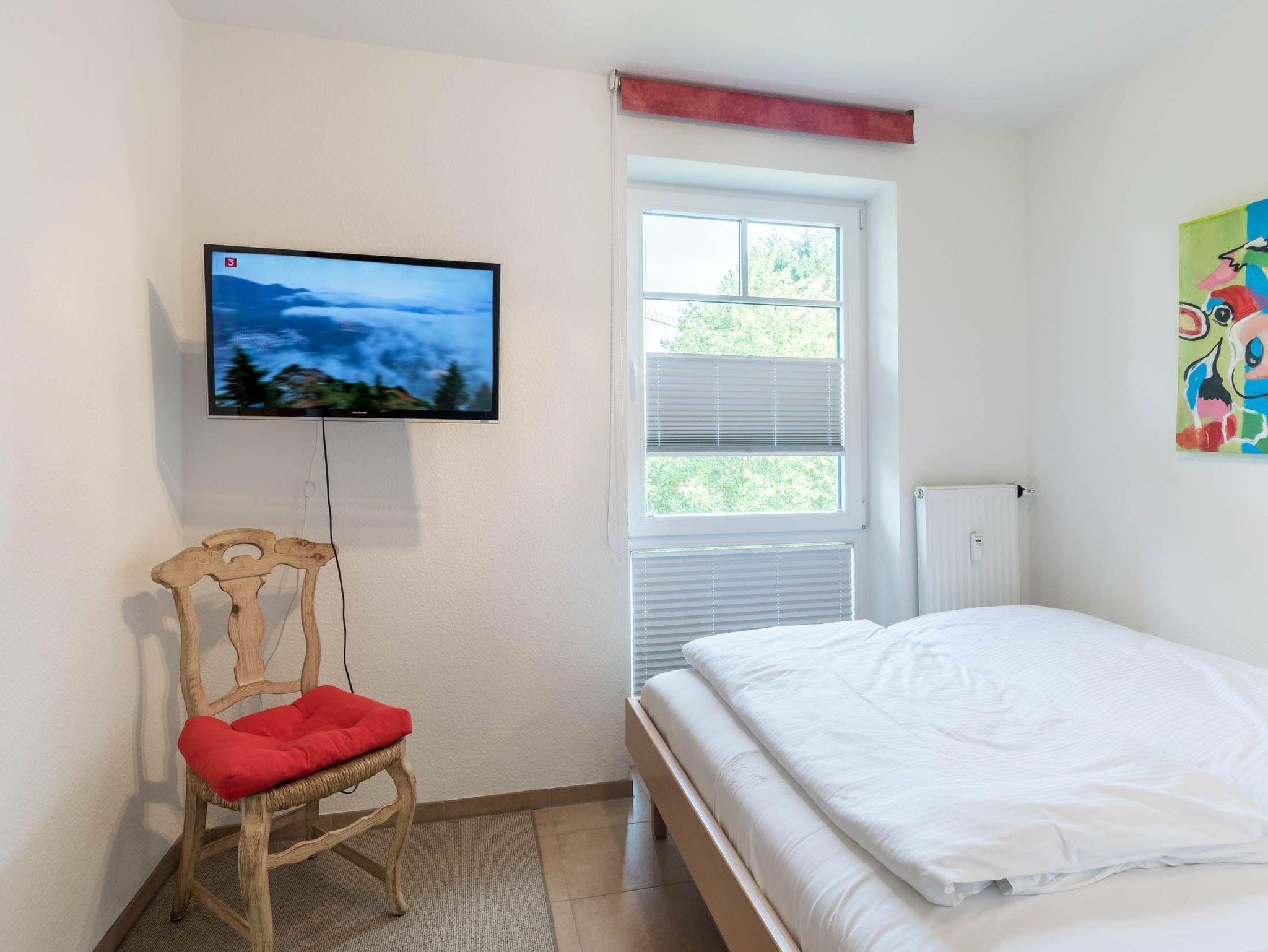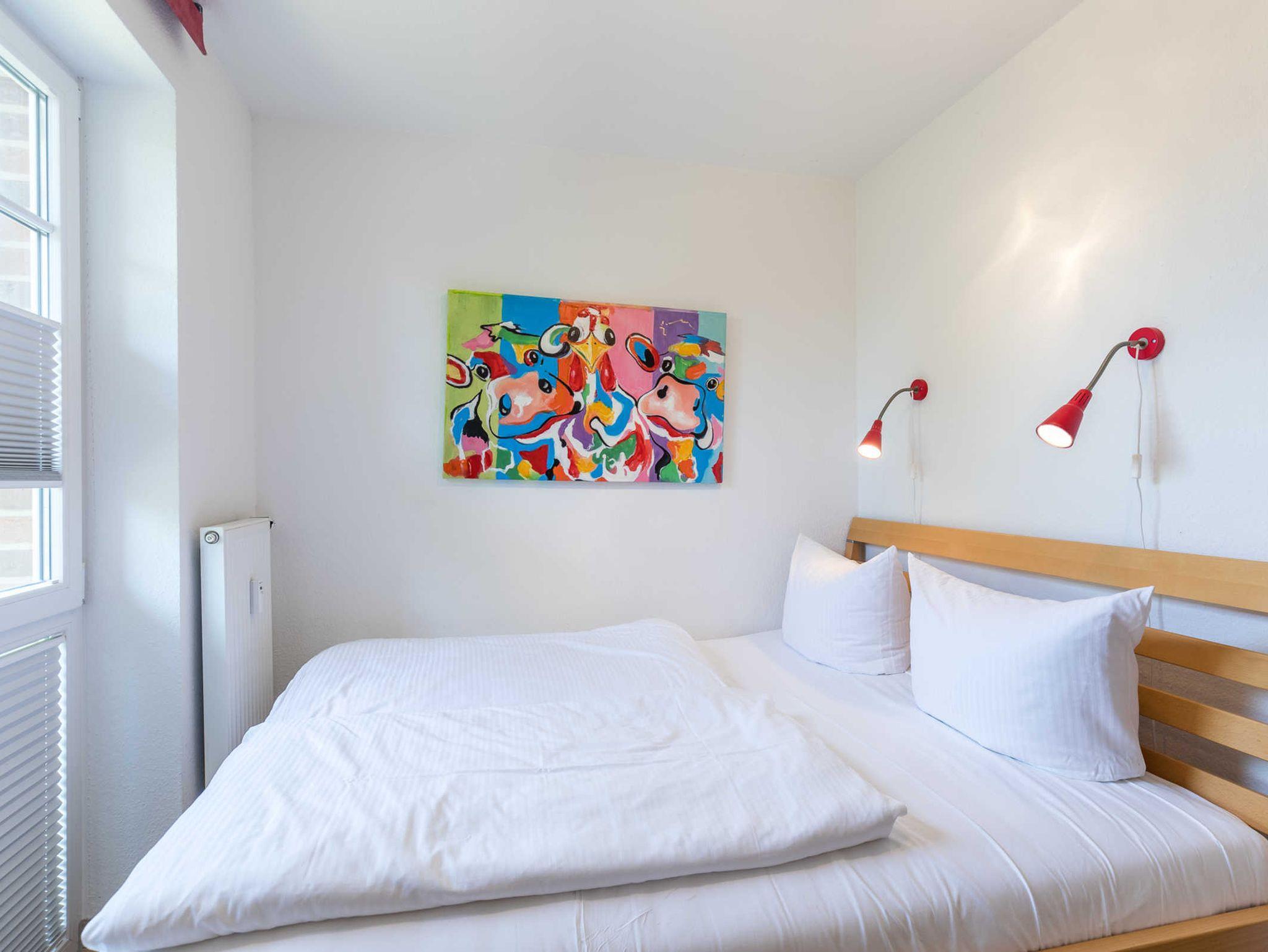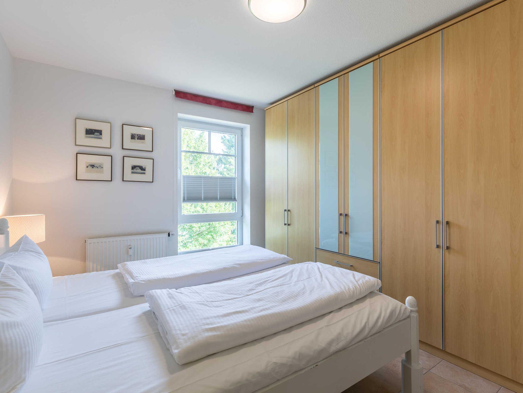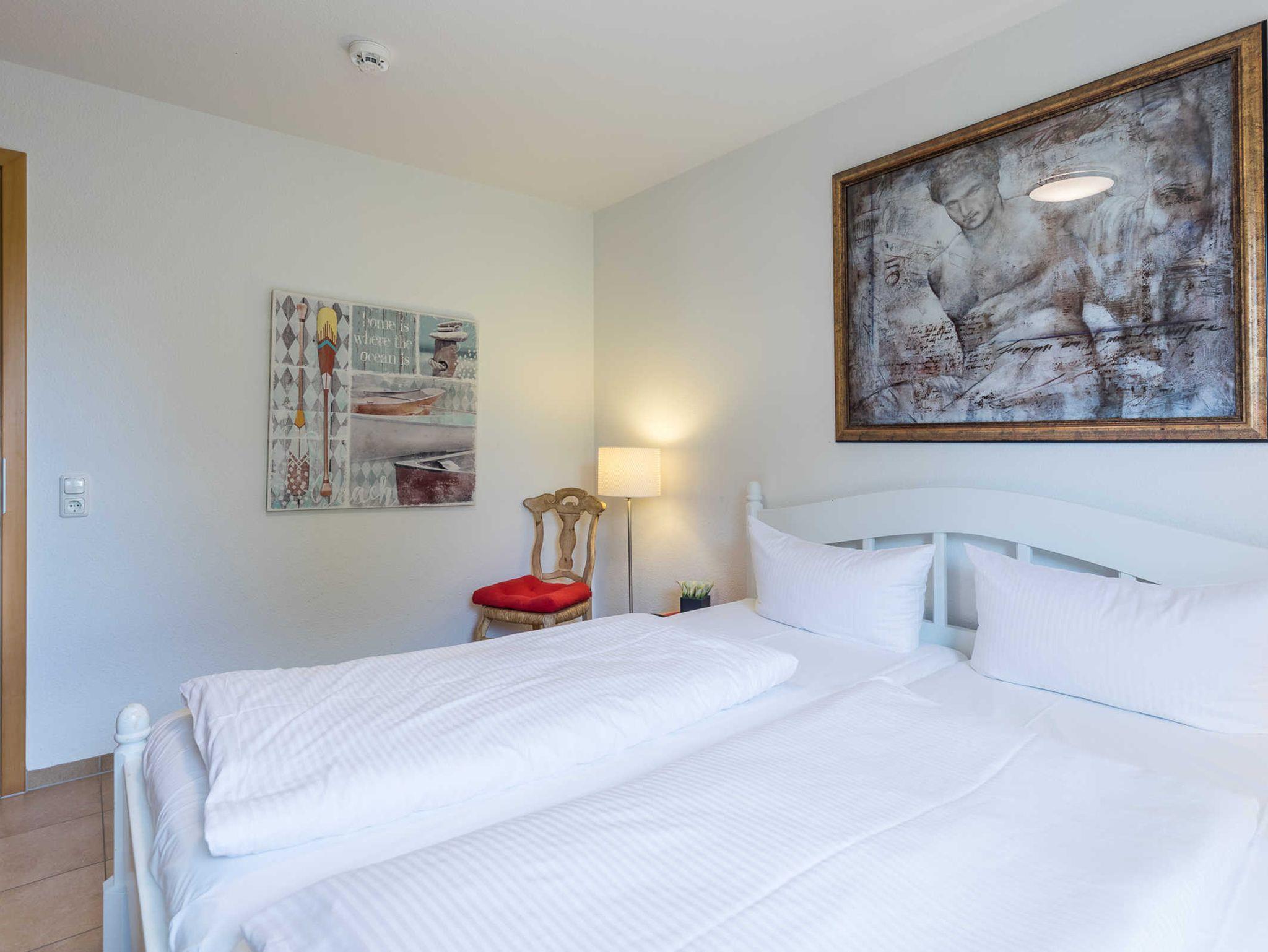 Ein Schlafzimmer bietet ein Doppelbett (200x200cm) einen großzügigen Kleiderschrank. Im Gästezimmer finden Sie ebenfalls ein Doppelbett (160x200cm), eine Kommode sowie einen zweiten SAT-TV.