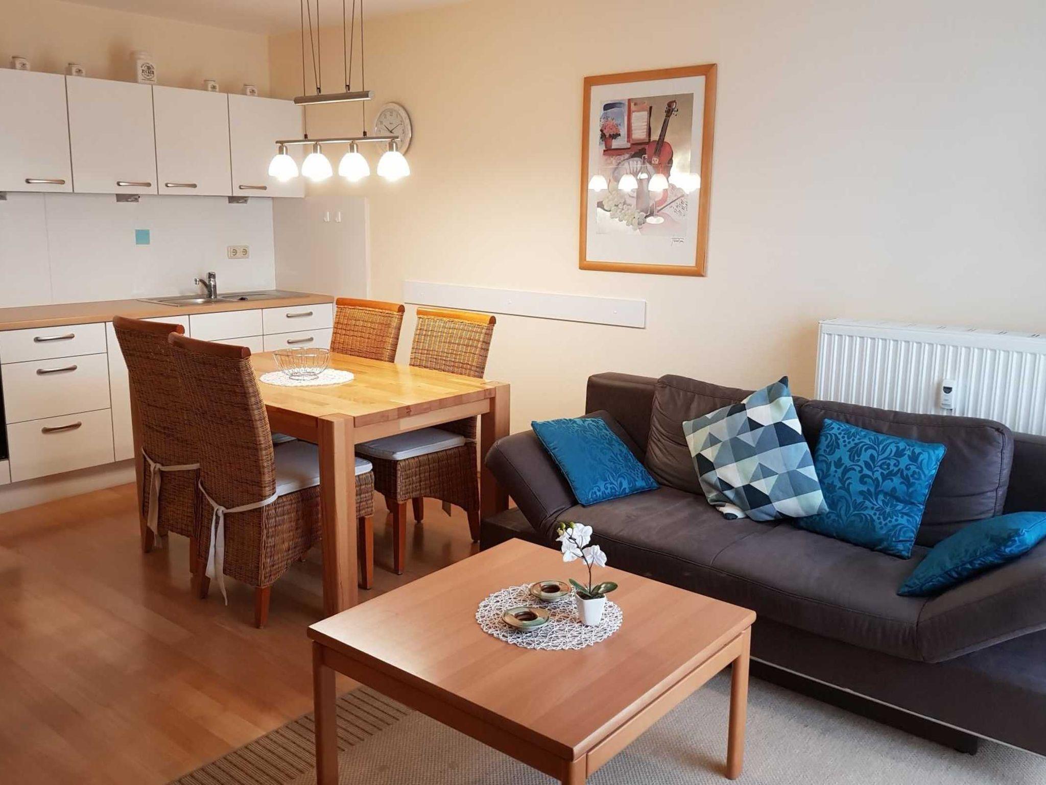 Moderne 2-Zimmer-Ferienwohnung in ruhiger Lage von Boltenhagen mit Balkon, Meerblick und Sauna.