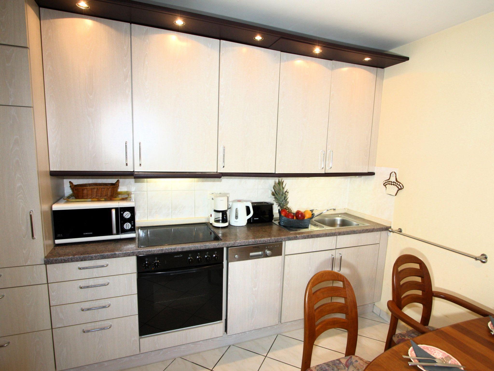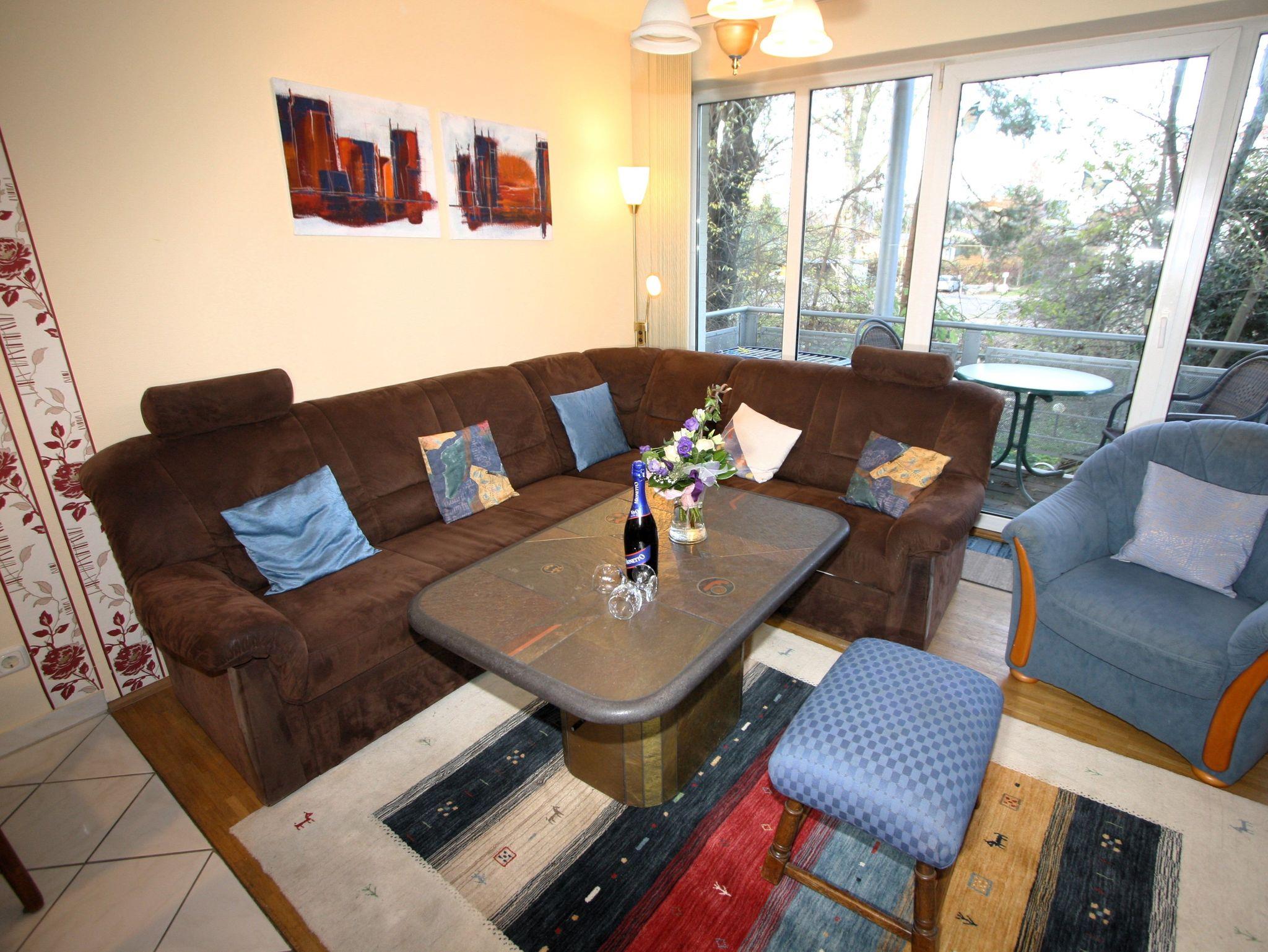 Ihre gut ausgestattete Zwei-Zimmer-Ferienwohnung für bis zu vier Personen verfügt über einen Balkon oder Terrasse, kostenfreies WLAN und sky-Empfang. Sie erreichen die Wohnung bequem mit dem Aufzug, für Ihren PKW steht ein Platz in der Tiefgarage zur Verfügung. Dort befindet sich zudem ein Waschraum mit Münzwaschmaschinen und Münzwäschetrockner und ein Platz für Ihre Fahrräder.