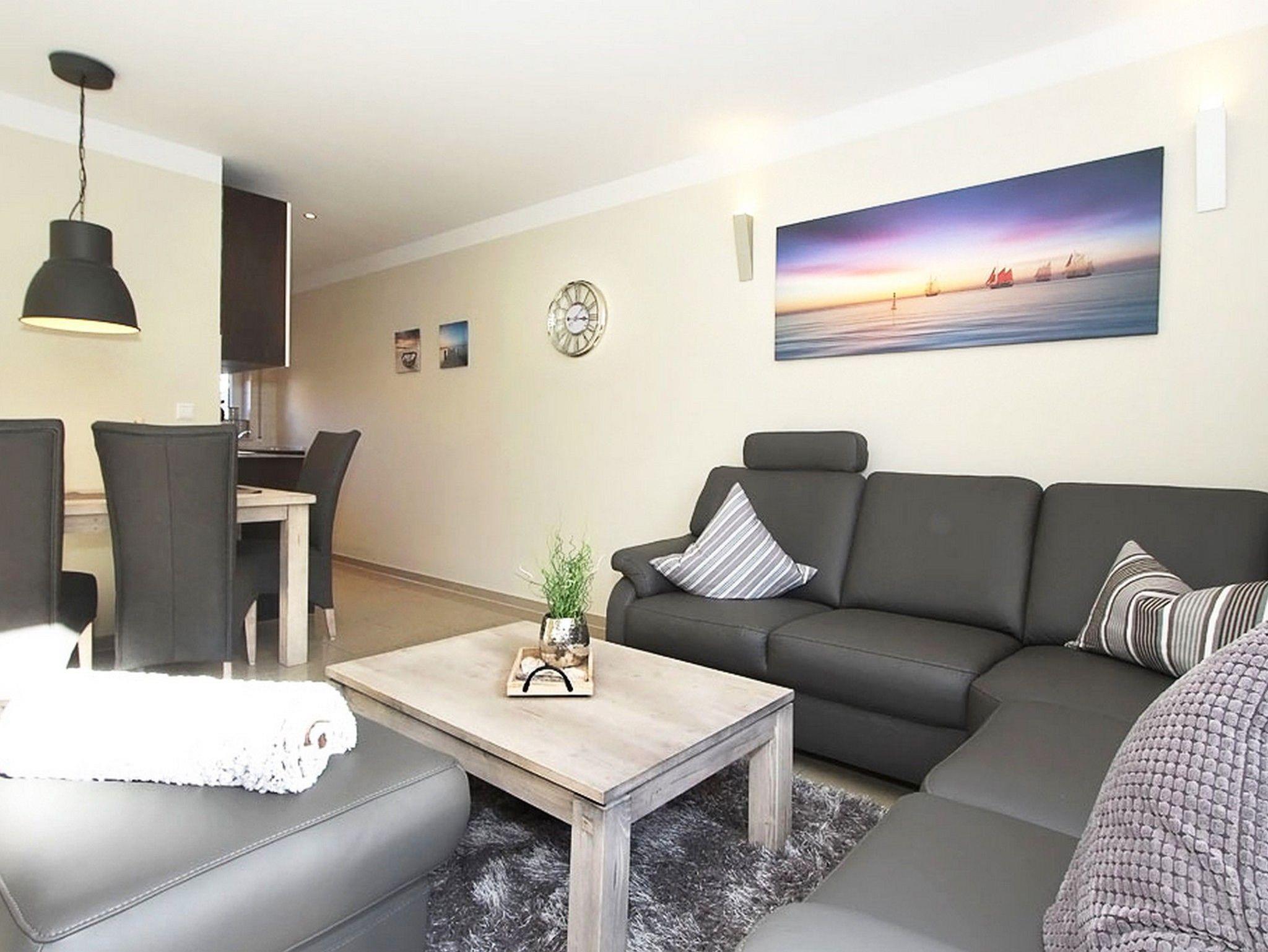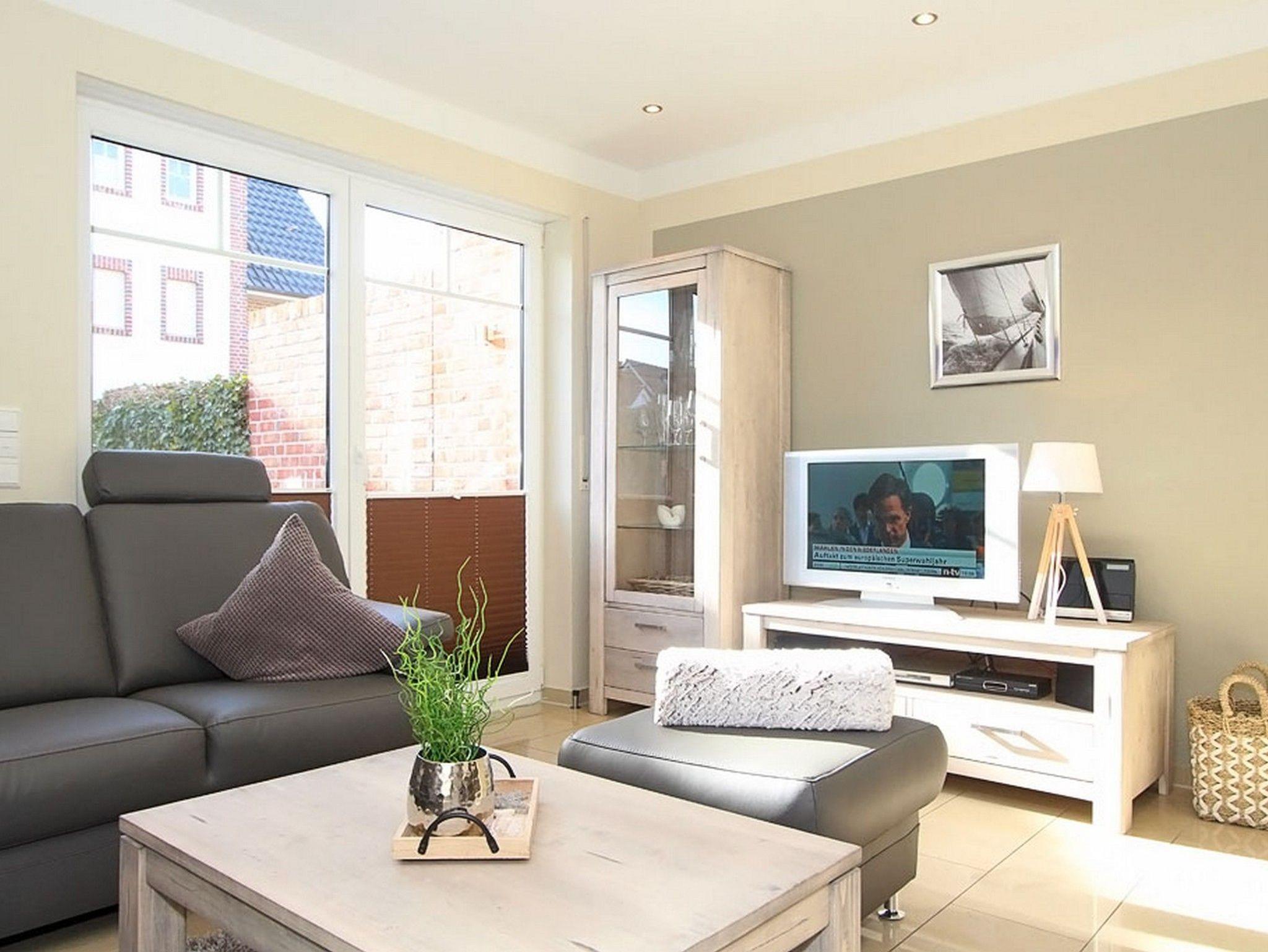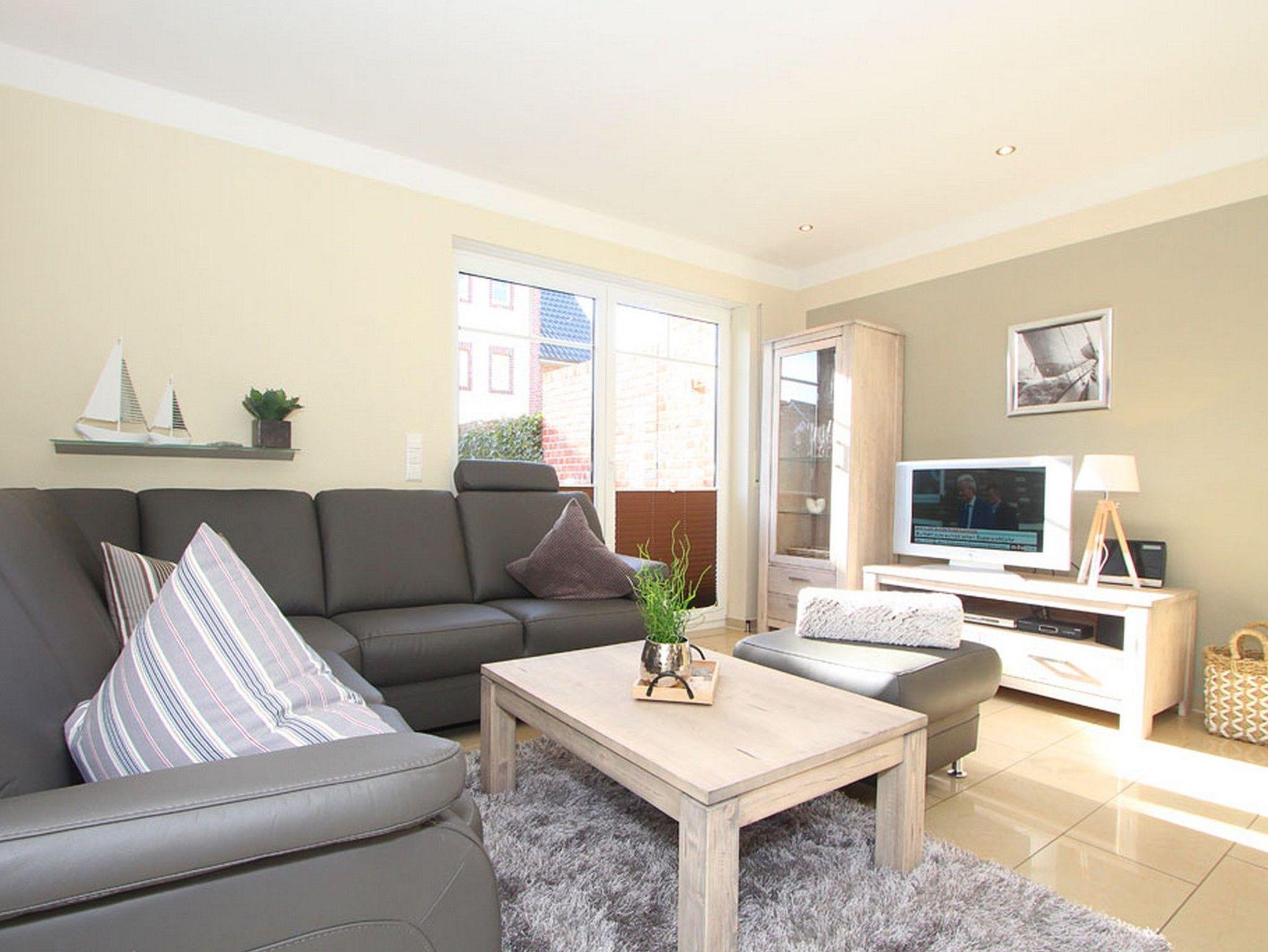 Im Wohnbereich steht Ihnen neben dem bequemen Ledersofa auch ein SAT-TV, DVD-Player sowie eine kleine Musikanlage zur Verfügung. Ein Reisebettchen könnte hier bei Bedarf auch aufgestellt werden. Die Essecke für bis zu vier Gäste kann für gemeinsame Mahlzeiten genutzt werden.