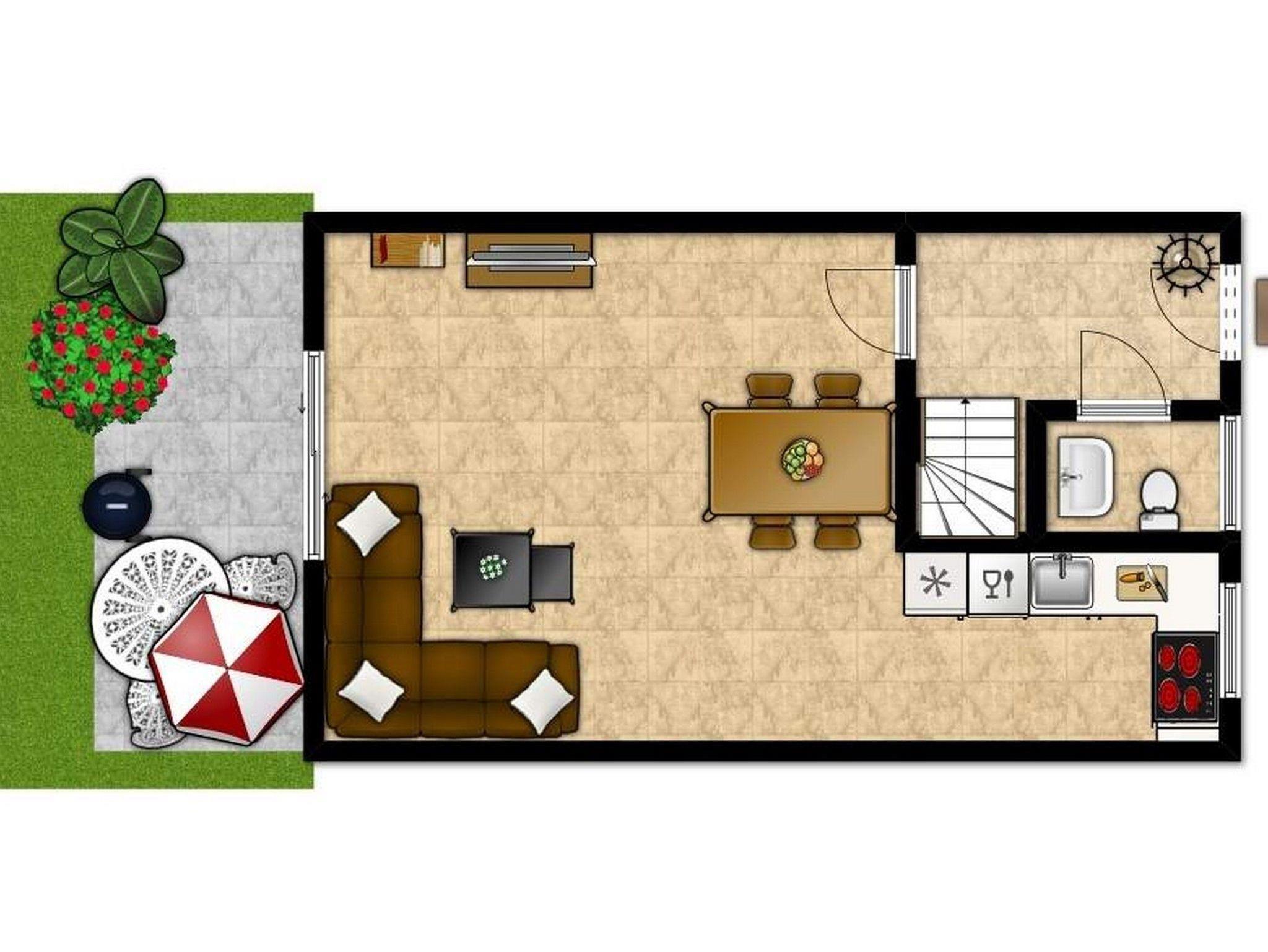 Das Reihenmittelhaus ist mit drei Zimmern ausgestattet und geht über drei Ebenen. Für bis zu vier Gäste + Kleinkind eignen sich die etwa 69 Quadratmeter Wohnfläche hervorragend für einen Urlaub.