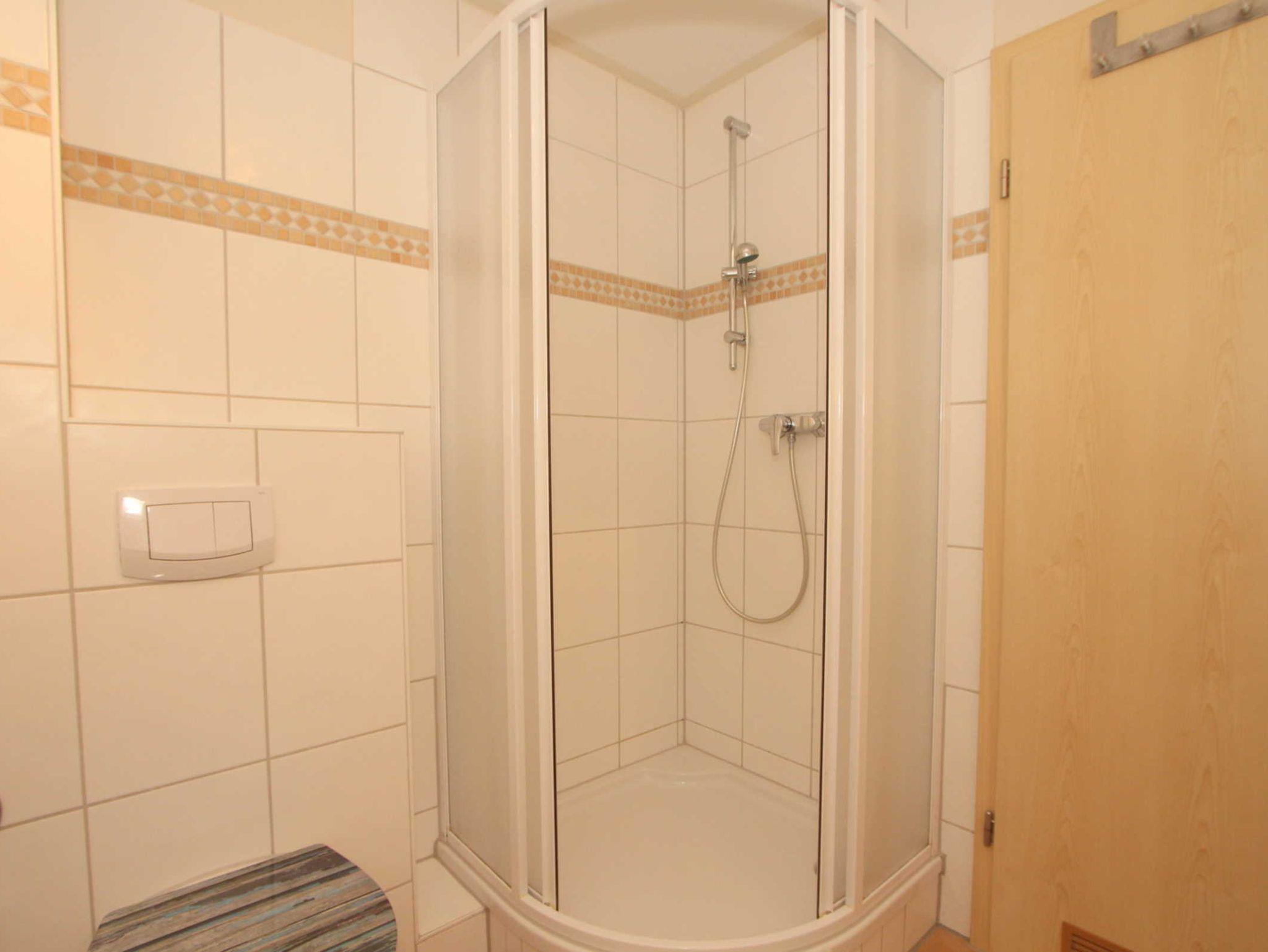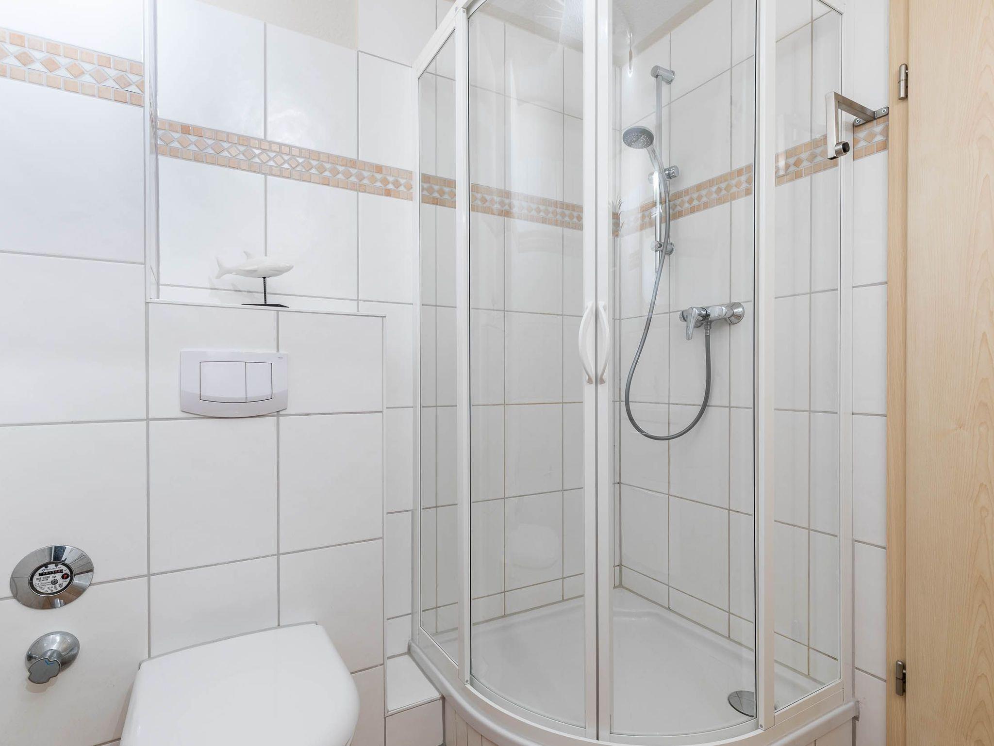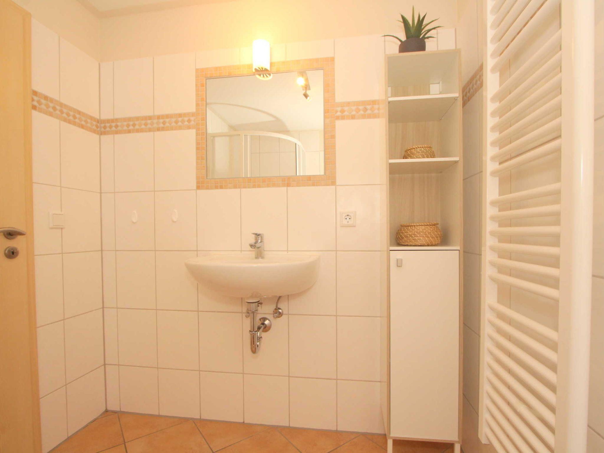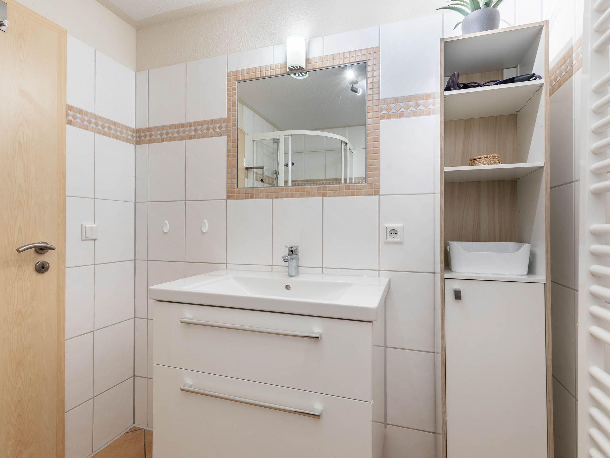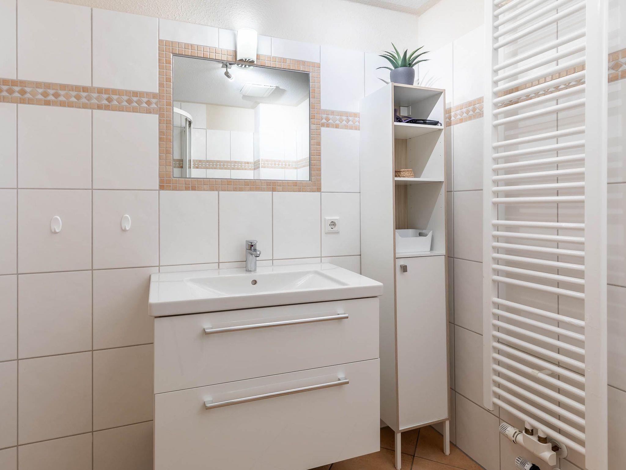 Zur Wohnung gehören des Weiteren ein helles Bad mit Dusche, WC und Waschbecken.
