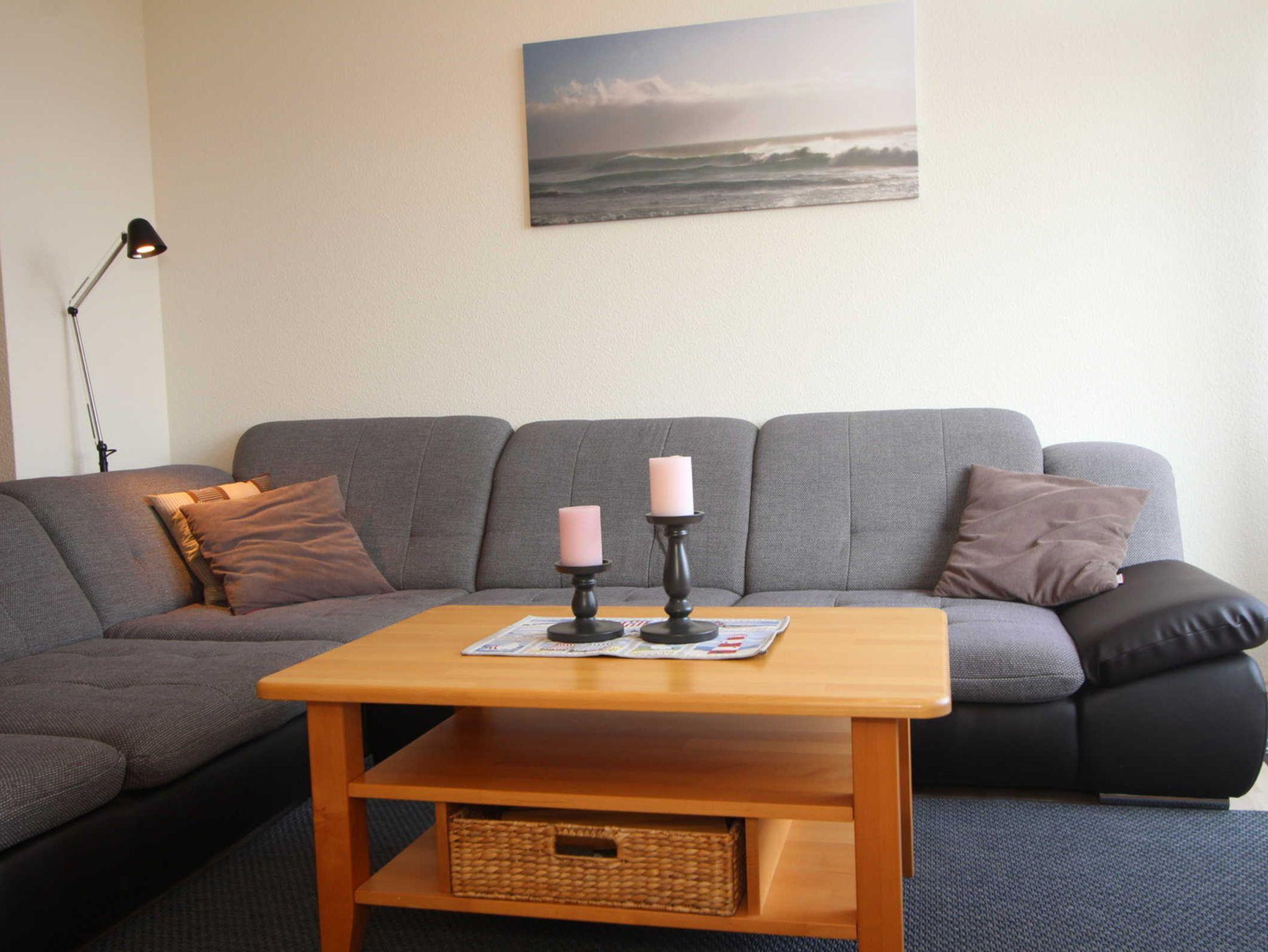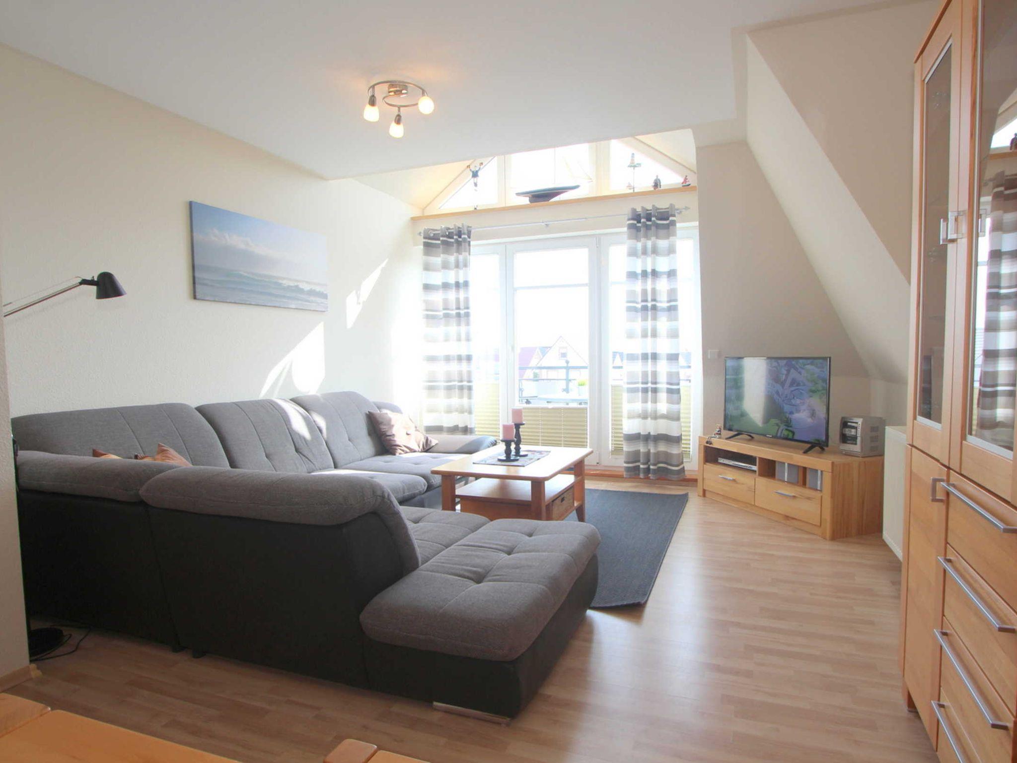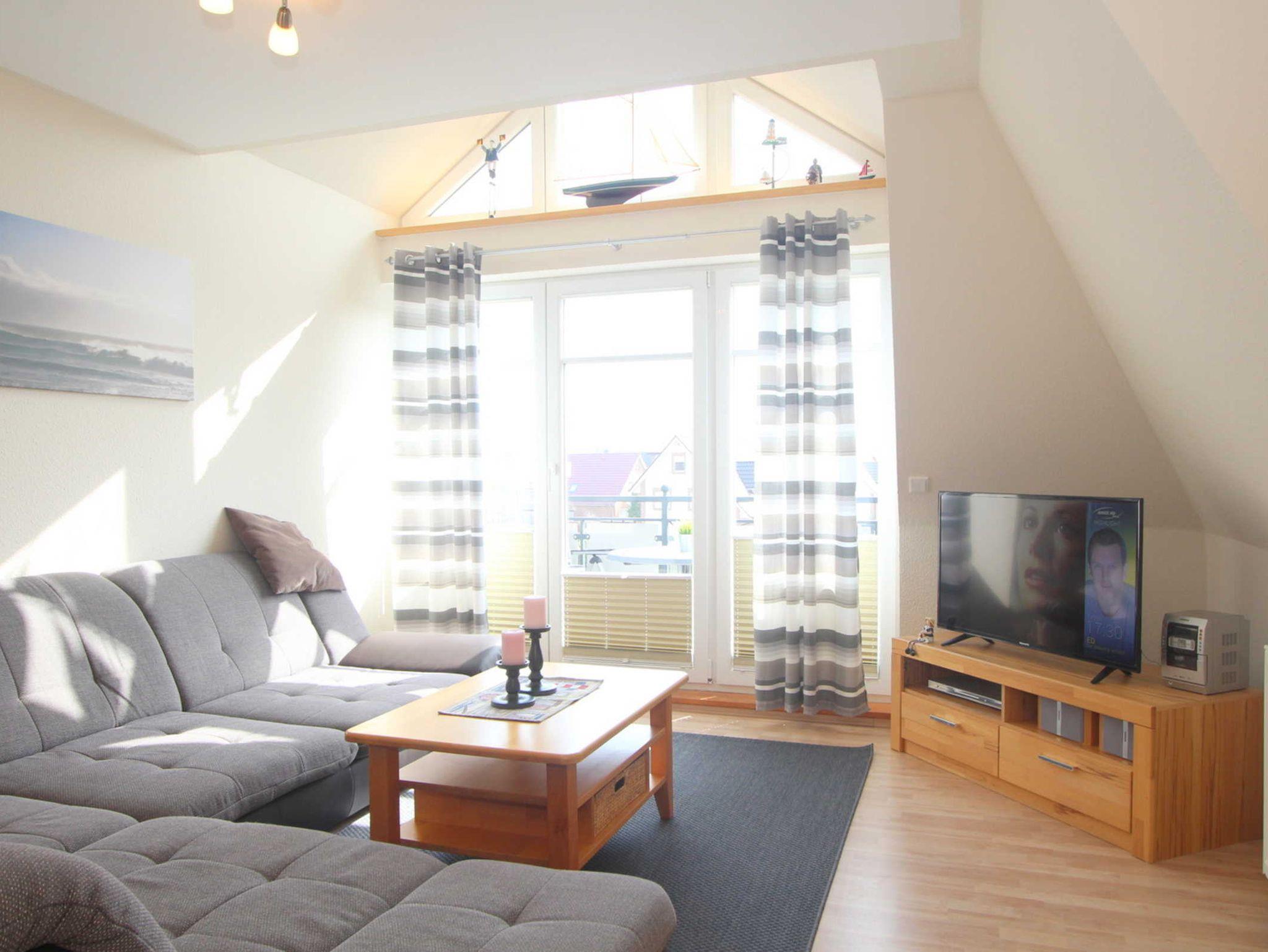 Der schöne Wohnbereich mit SAT-TV und gemütlicher Sofalandschaft, von dem aus Sie auf den möblierten Balkon gelangen, lädt zum Beisammensein sein ein. Auf dem Balkon können Sie dank des Elektrogrills gemütliche Grillabende veranstalten.