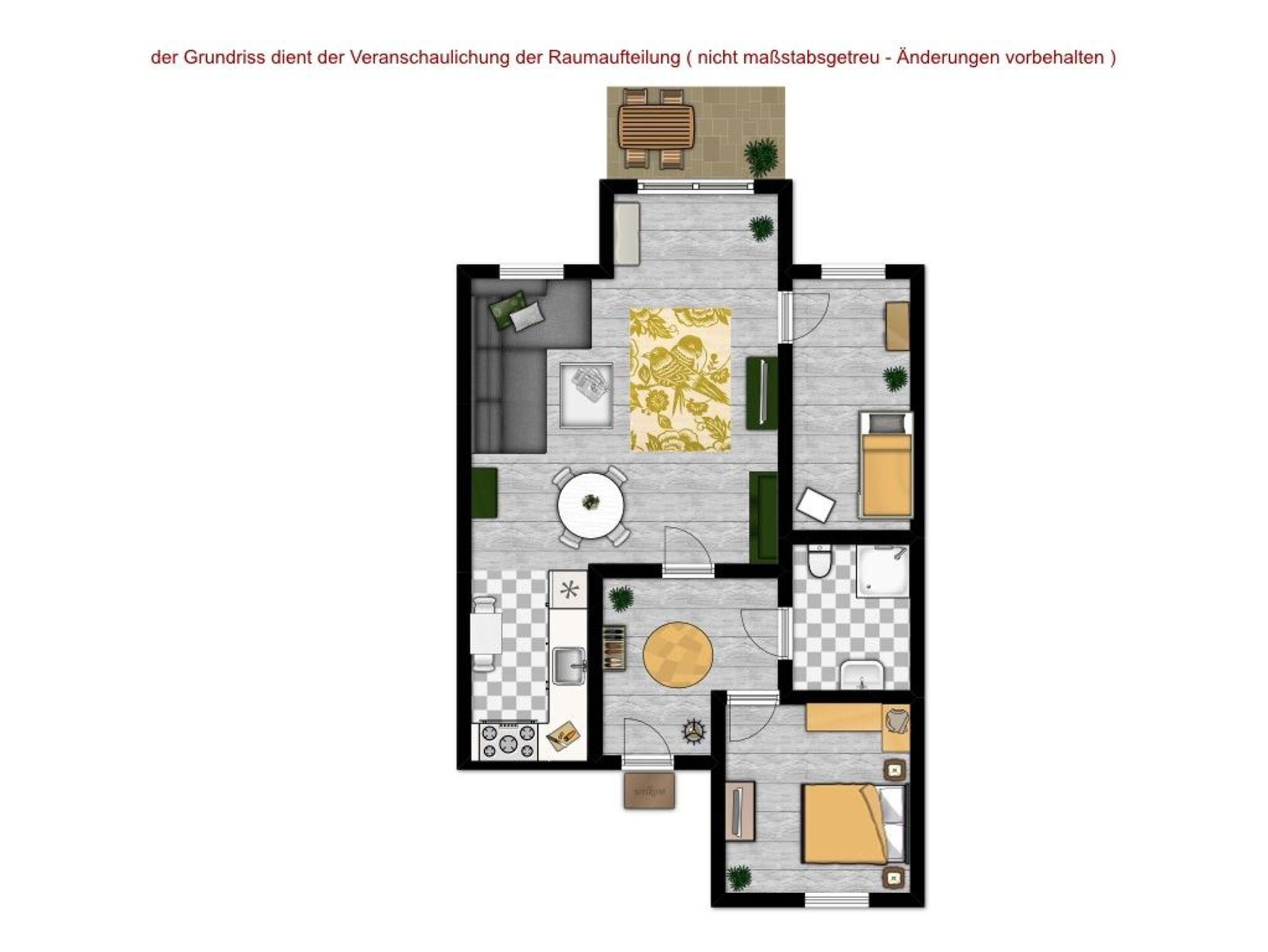 In dieser 3-Zimmer-Wohnung quartieren Sie im Erdgeschoss auf 65qm Wohnfläche mit bis zu 4 Personen.