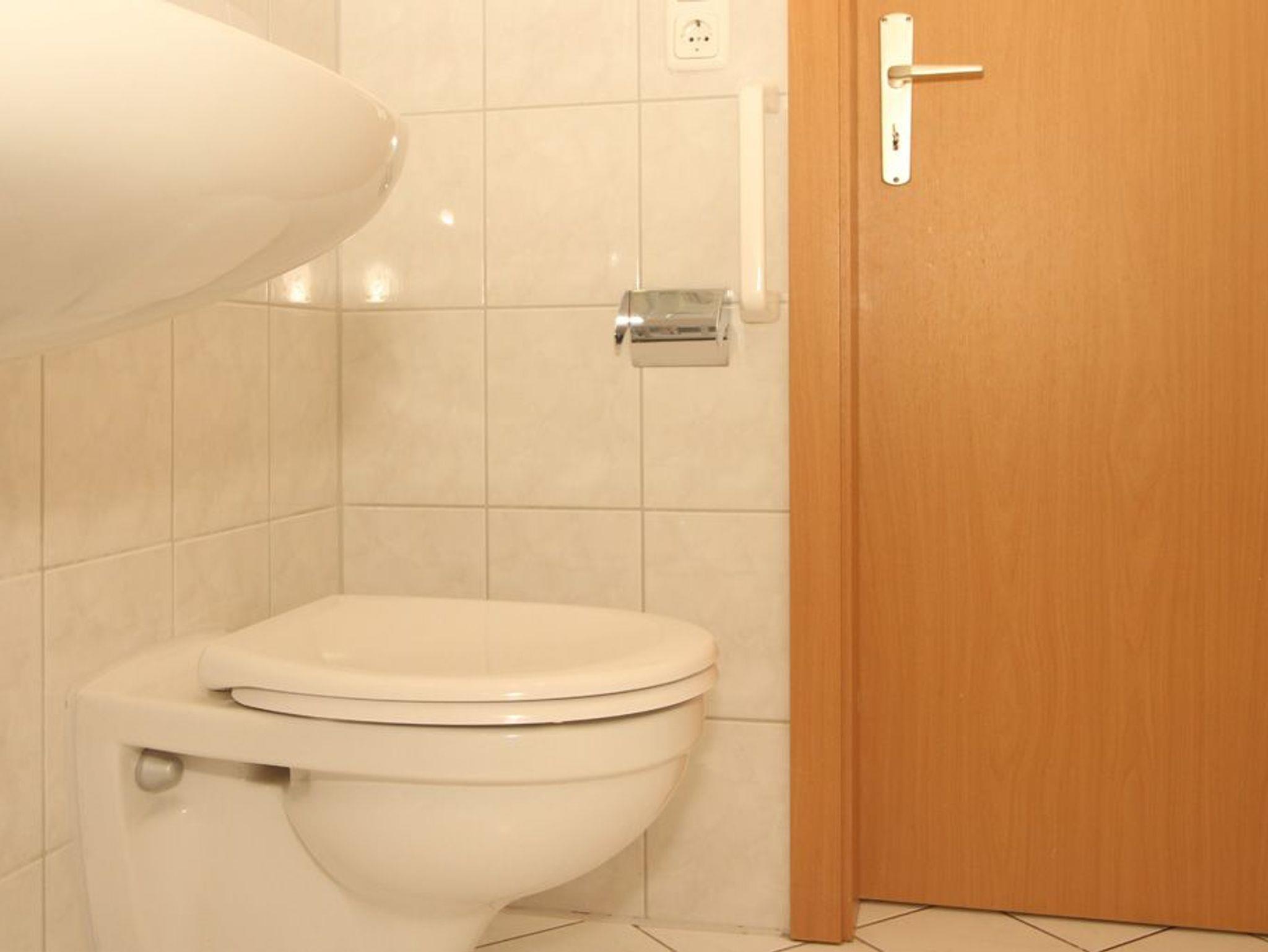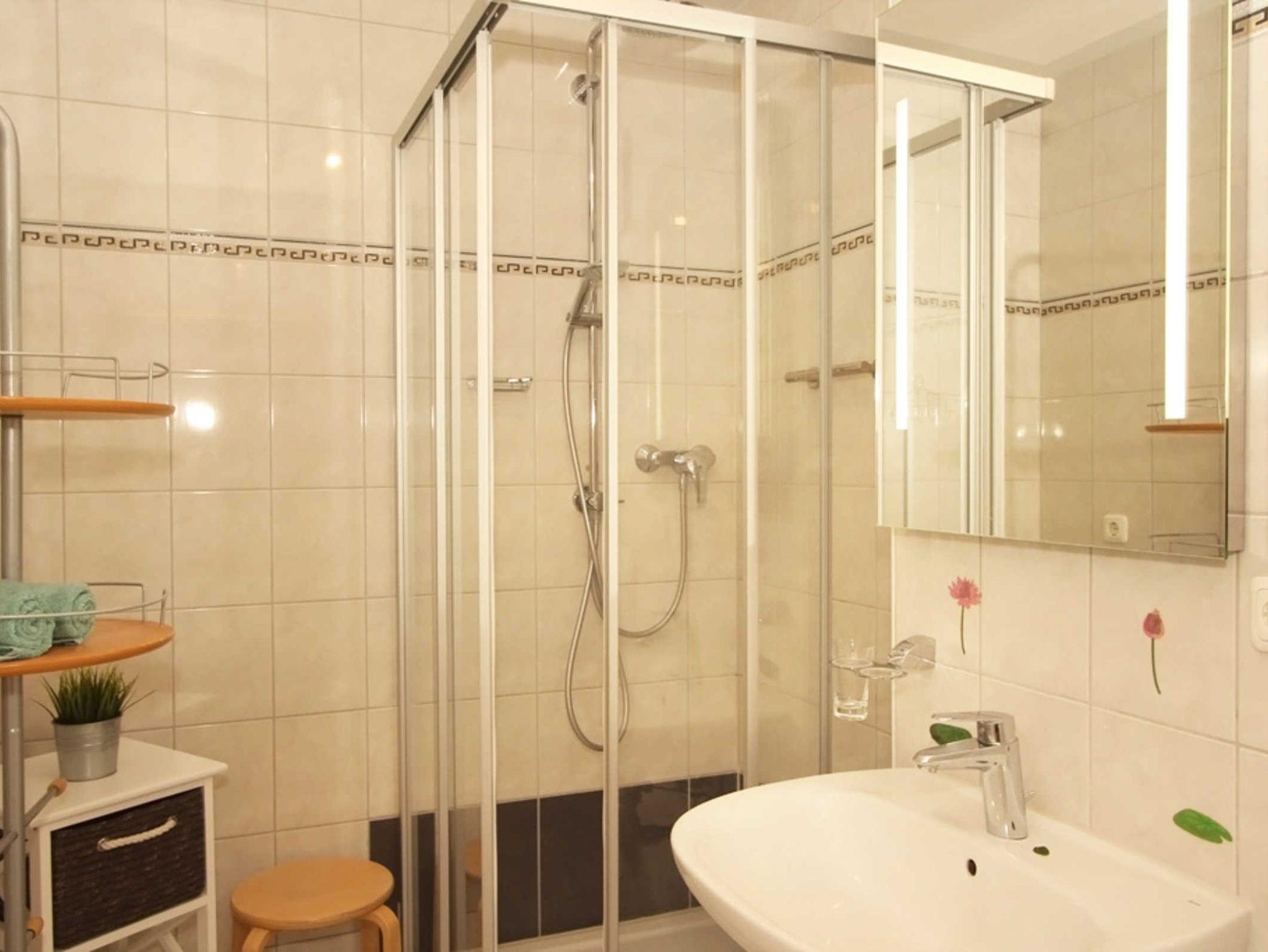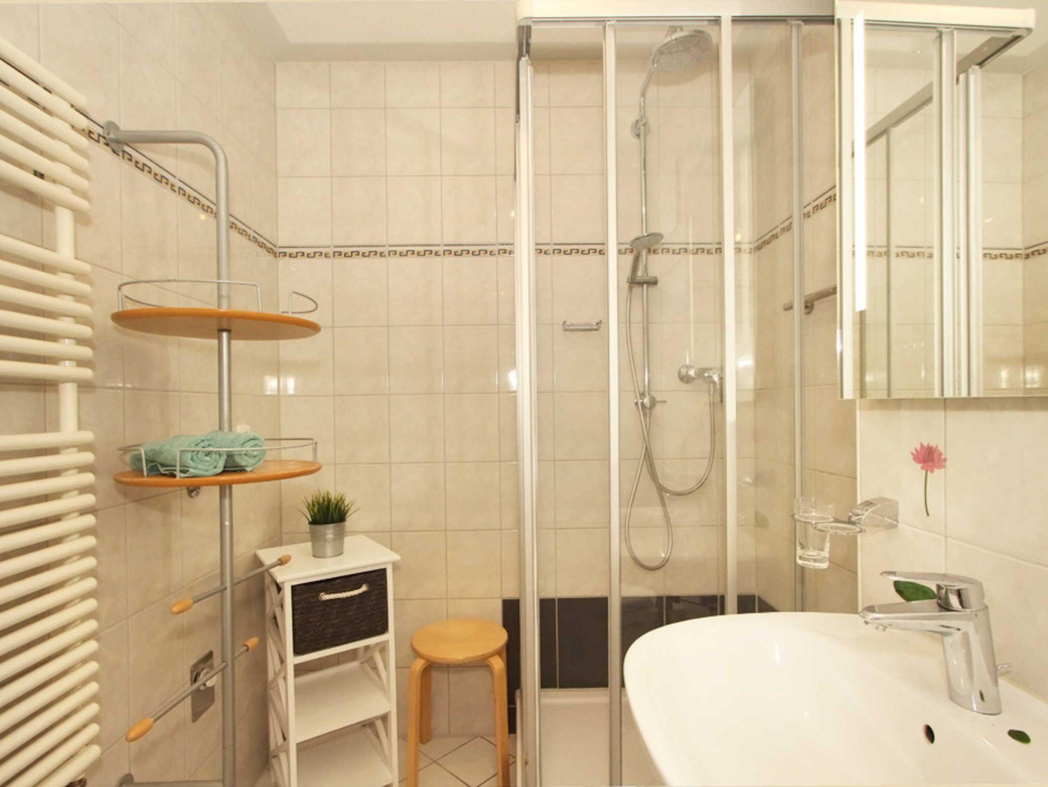 Natürlich gehören zum Bad eine Dusche, ein WC und ein Föhn.