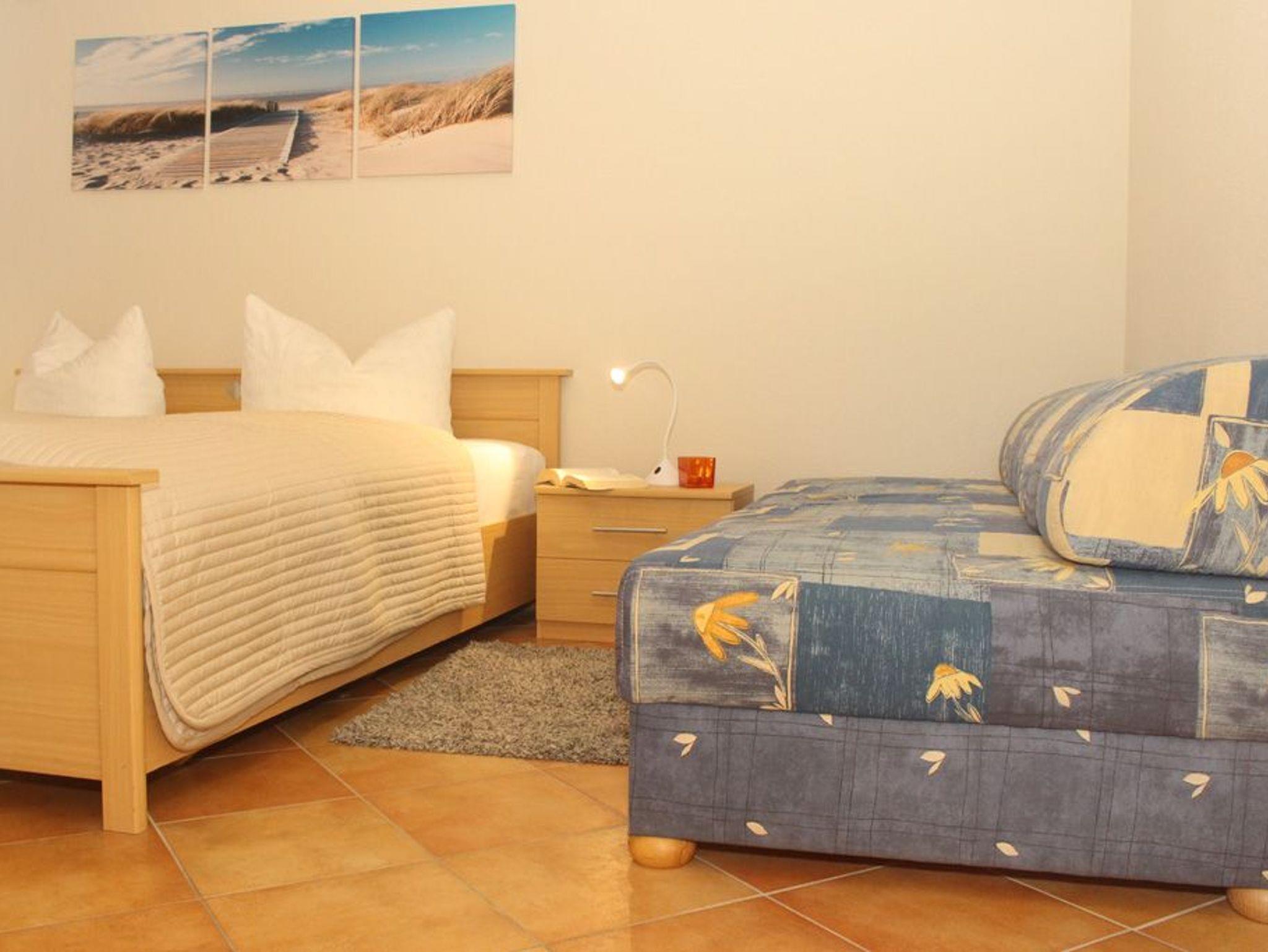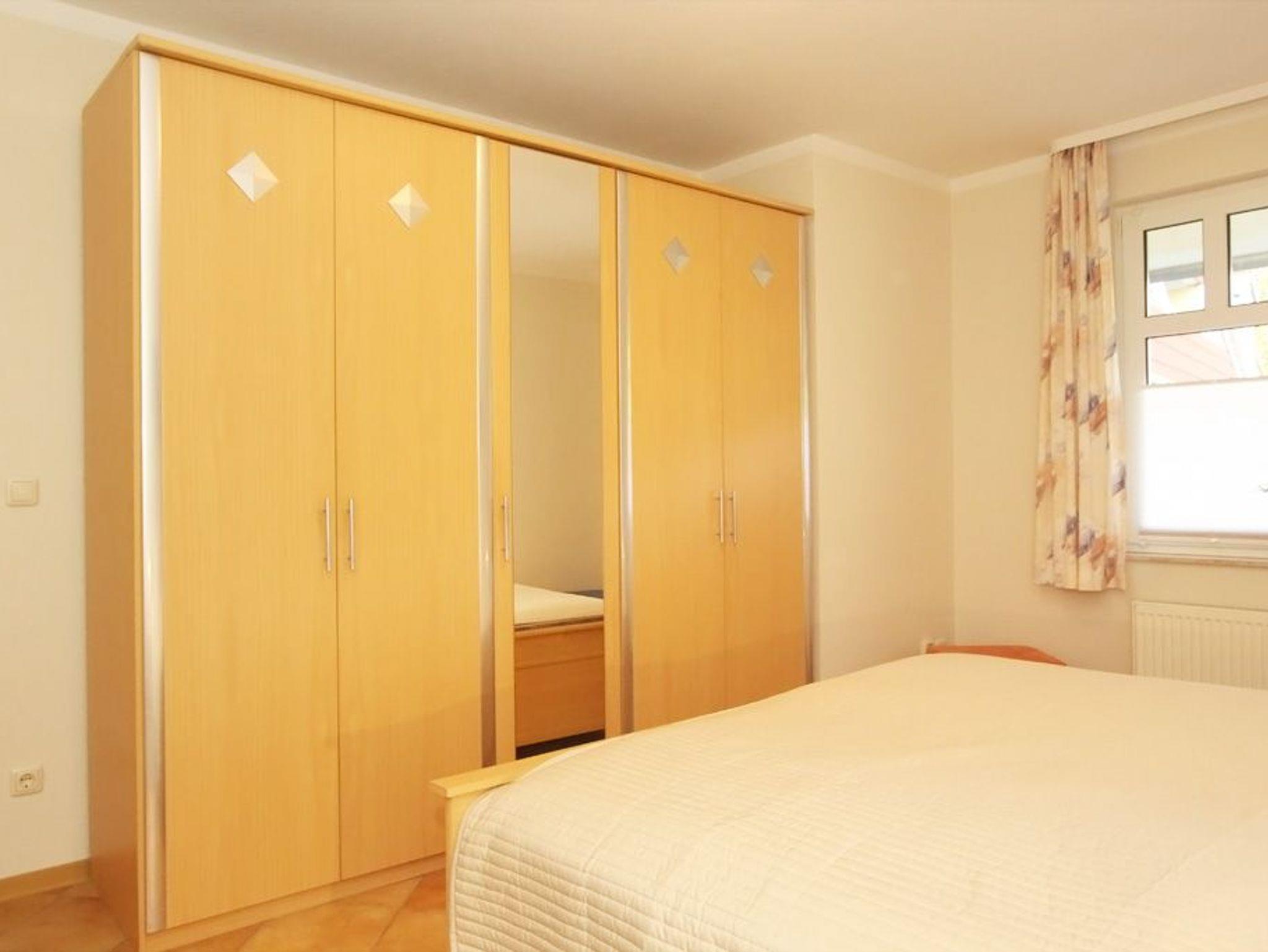 Das Schlafzimmer verfügt sowohl über ein Doppelbett als auch über eine Couchliege als weitere Schlafoption. In dem großen Kleiderschrank können Sie gern Ihre Urlaubsgarderobe ablegen.