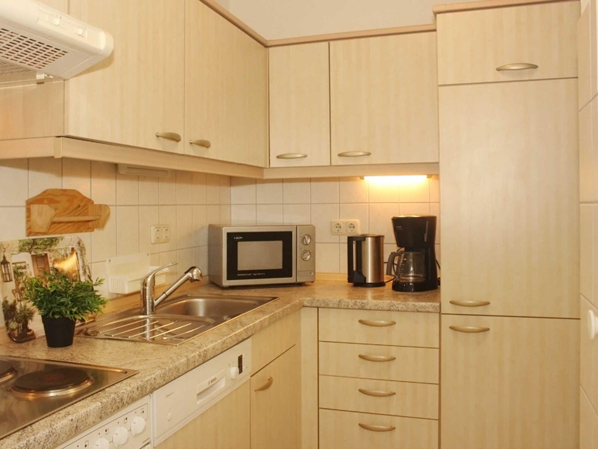 In der offenen Küche finden Sie alles, was sie brauchen: einen Geschirrspüler, eine Mikrowelle, einen Kühlschrank mit Gefrierfach, einen Herd bzw. Backofen und vieles mehr. Ihre Mahlzeiten können Sie bequem an der separaten Essecke einnehmen.