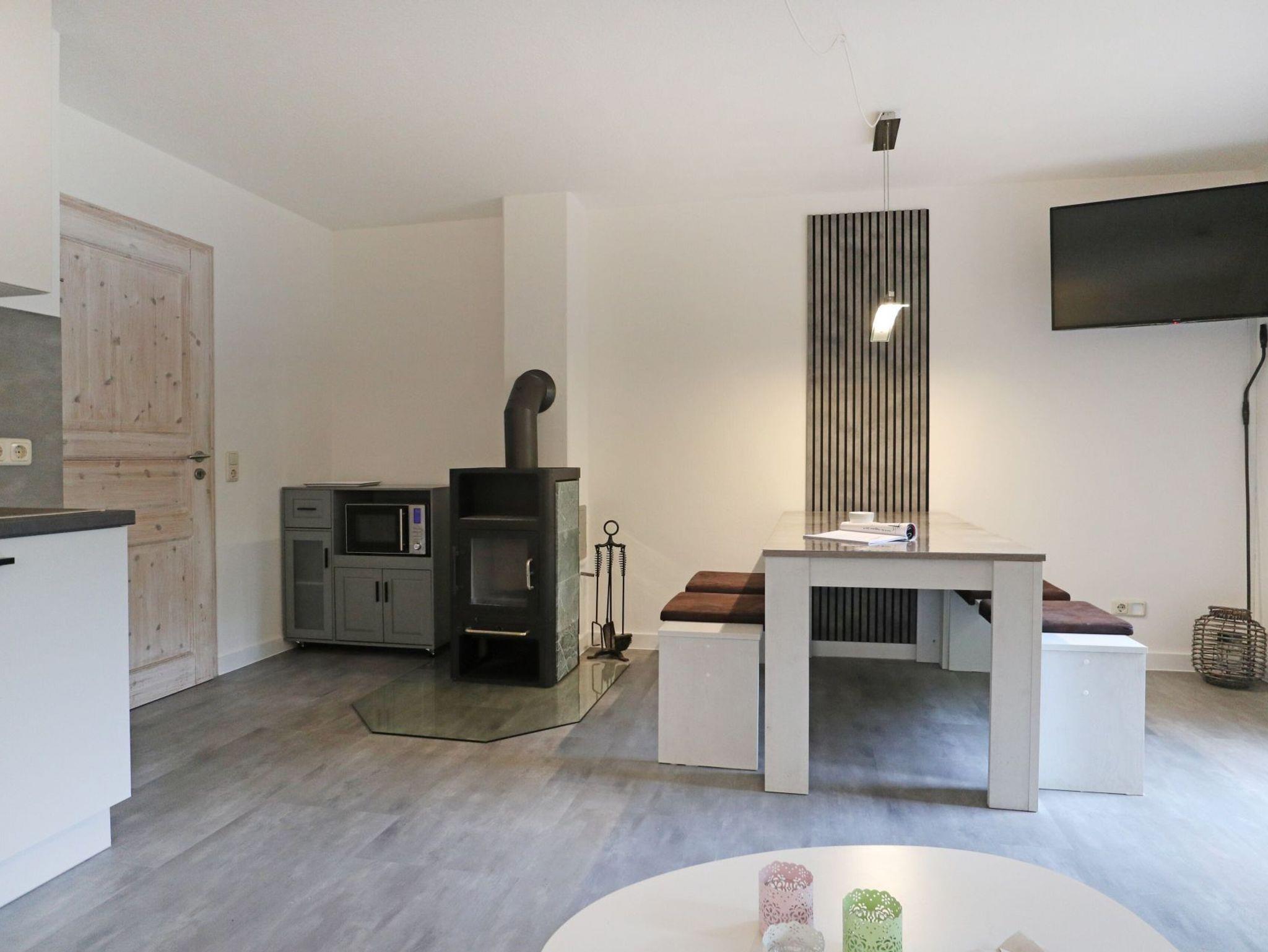 Das modernisierte Ferien Reihenhaus ? Urlauberdorf 44B - mit Süd-West Terrasse bietet auf 63qm familienfreundliches Wohnen zum Wohlfühlen. Der Wohn- und Essbereich ist klar strukturiert und mit einem Sofa, Kaminofen, Fernseher, Musikanlage und einem Esstisch ausgestattet ? ideal für entspannte Stunden mit der Familie. Zwei separate Schlafzimmer sowie ein Duschbad sorgen für Komfort und Privatsphäre. Die integrierte Küchenzeile ist vollständig ausgestattet mit Herd, Backofen, Mikrowelle, Geschirrspüler, Kaffeemaschine, Wasserkocher, Toaster u.v.m. Erholung finden Sie auf der saisonal möblierten Süd -West Terrasse. Im Erdgeschoss befinden sich ein hübsches Schlafzimmer mit zwei Einzelbetten und Kleiderschrank. Ein modernes Tageslicht Duschbad mit Waschtisch, Fön, WC und kostenfreier Waschmaschinen Nutzung ist ebenso vorhanden. Über eine Treppe gelangen Sie ins Obergeschoss mit einem weiteren Schlafzimmer mit Doppelbett, Kleiderschrank, 2. Fernseher, Kinderbett. Auch ein Kinderhochstuhl gehört zur familienfreundlichen Ausstattung. Bügeleisen und Bügelbrett befinden sich im Haus. Das Nichtraucherhaus ist für bis zu 4 Personen ideal geeignet. ein PKW-Stellplatz befindet sich kostenfrei am Haus. Weitere PKW-Stellplätze stehen in der Umgebung im öffentlichen Bereich kostenpflichtig zur Verfügung. Haustiere nicht erlaubt. Das Laden von Elektro und Hybridfahrzeugen ist nicht gestattet. Hiervon sind Akkus von E-Bikes & Pedelecs (unter Aufsicht) ausgenommen. Bitte beachten Sie, dass in diesem Objekt kein WLAN vorhanden ist.