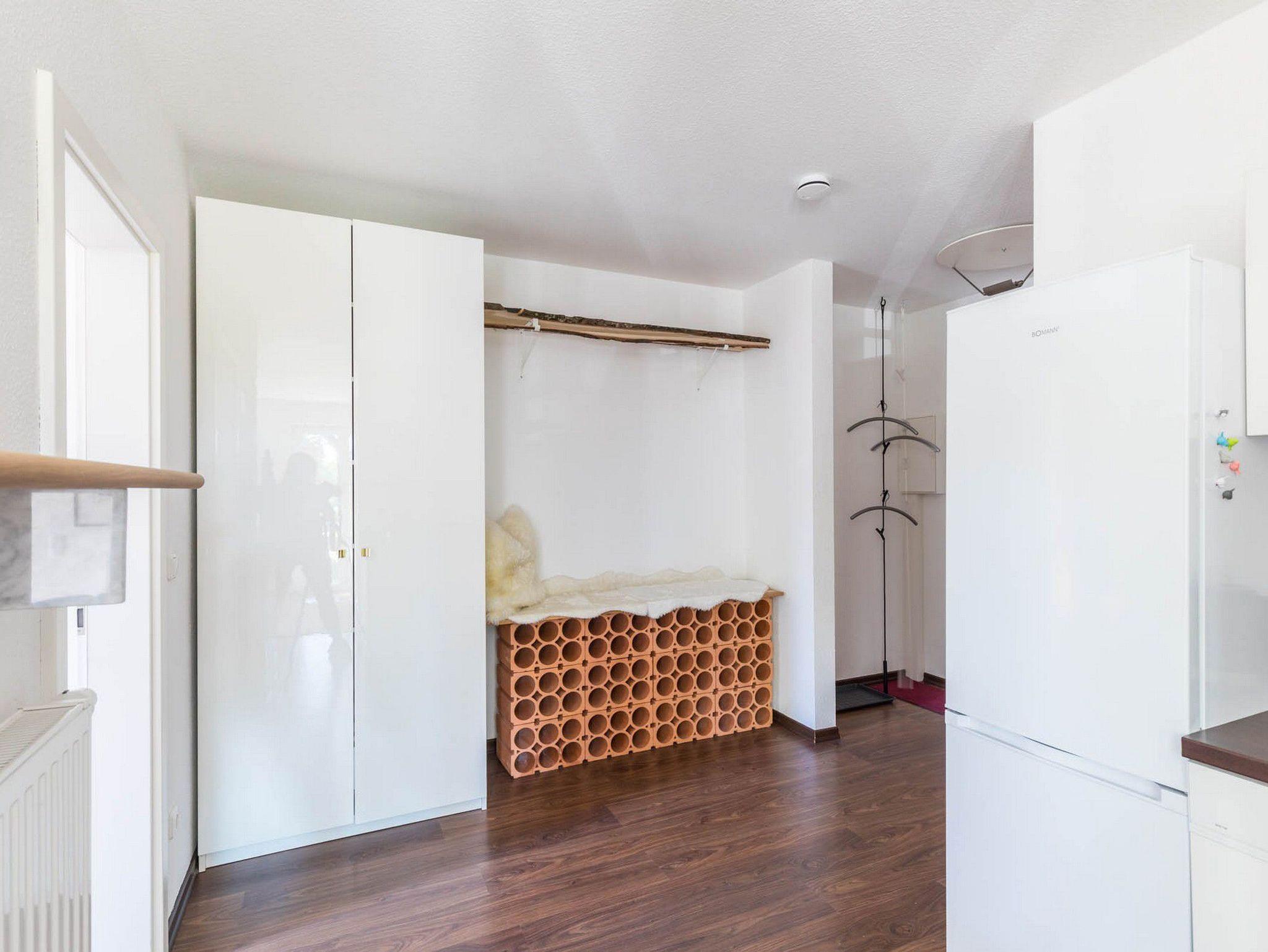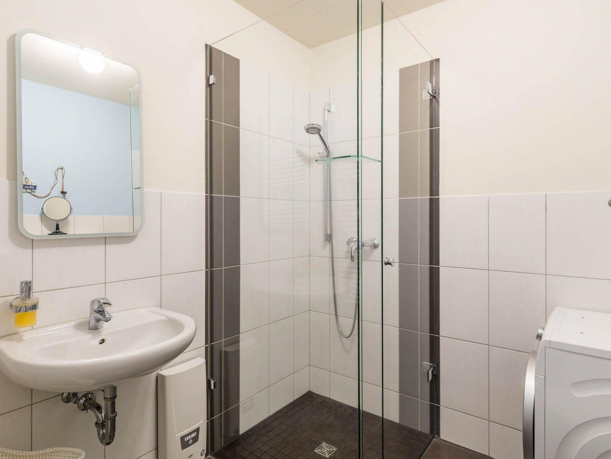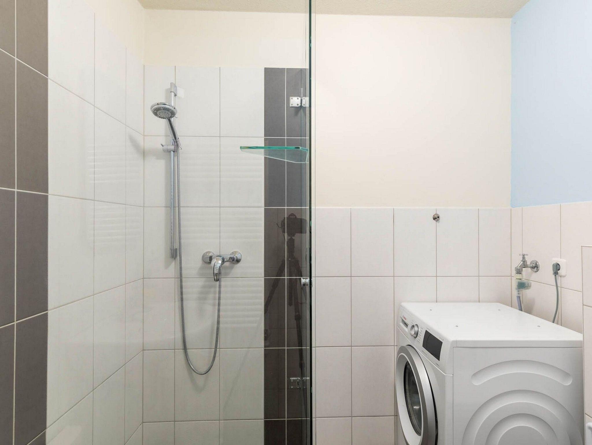 Ergänzt wird die Ausstattung durch ein modern eingerichtetes Duschbad mit ebenerdiger Dusche, Waschmaschine und einen möblierten Eckbalkon nach Südwesten.