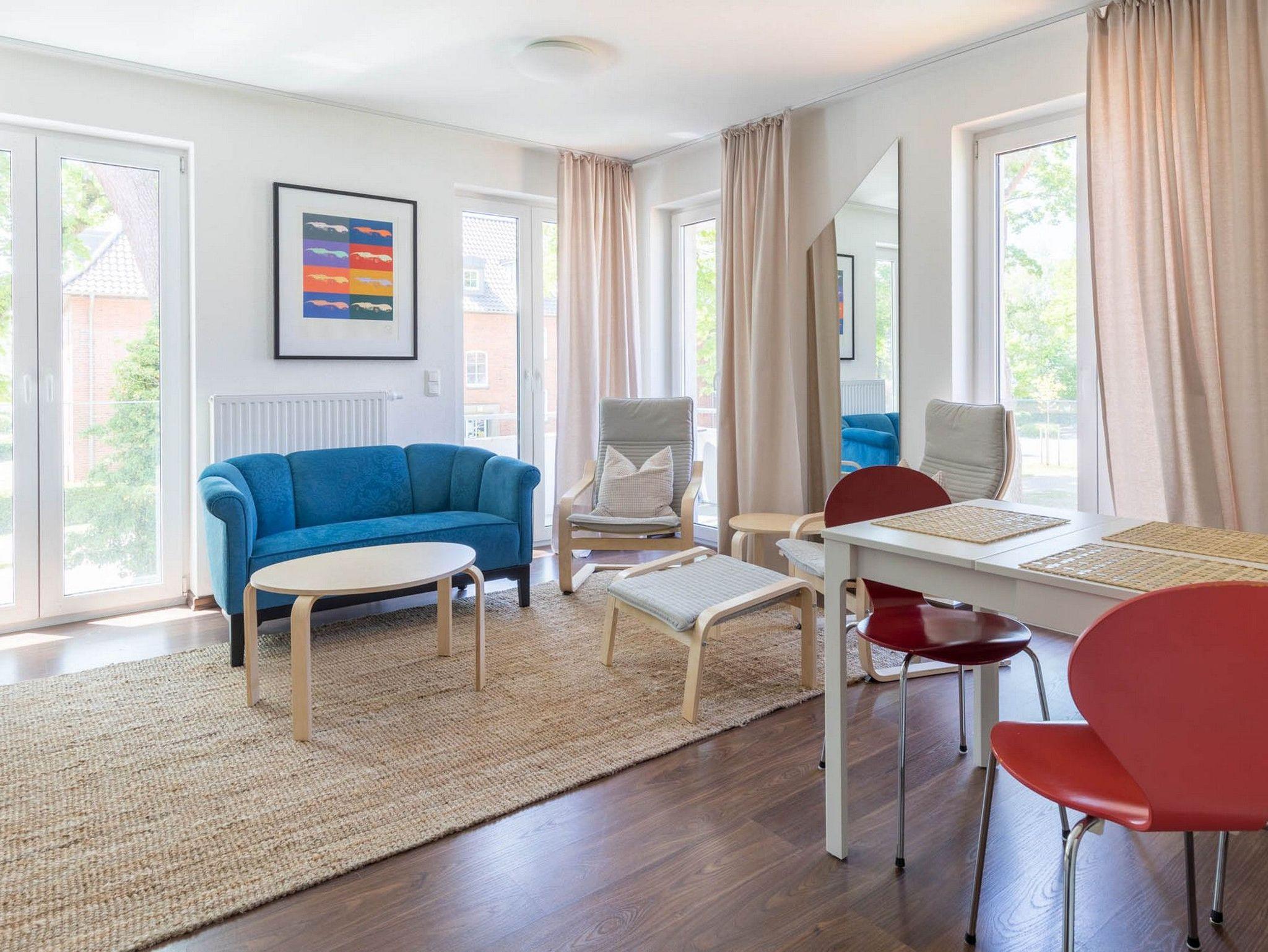 Die Ferienwohnung verfügt über einen geschmackvoll eingerichteten Wohn- und Essbereich mit Sat-TV und WLAN.