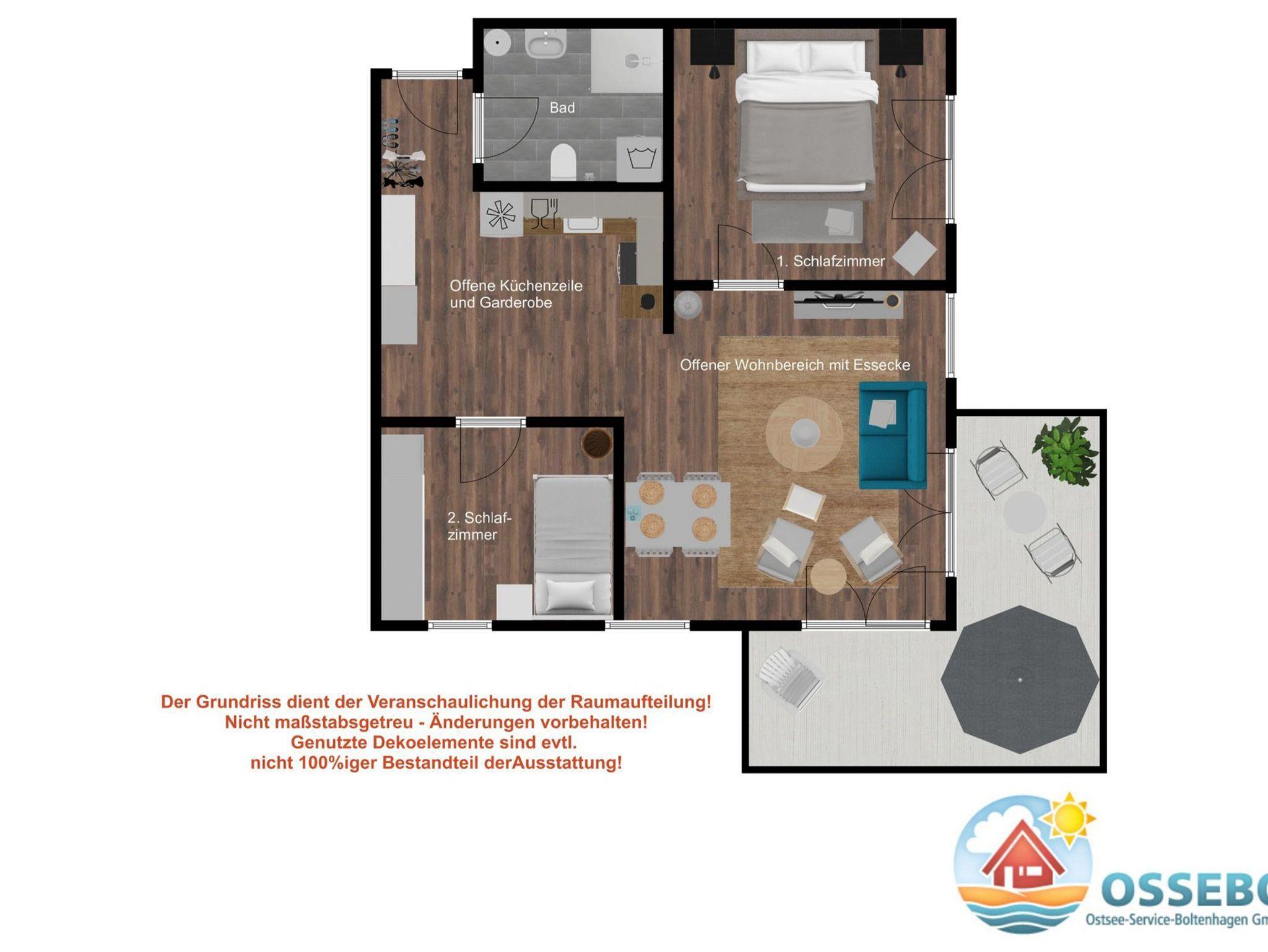 Komfortable 3-Zimmer-Ferienwohnung direkt an der Ostsee in Boltenhagen mit WLAN, Balkon und Tiefgaragenstellplatz.