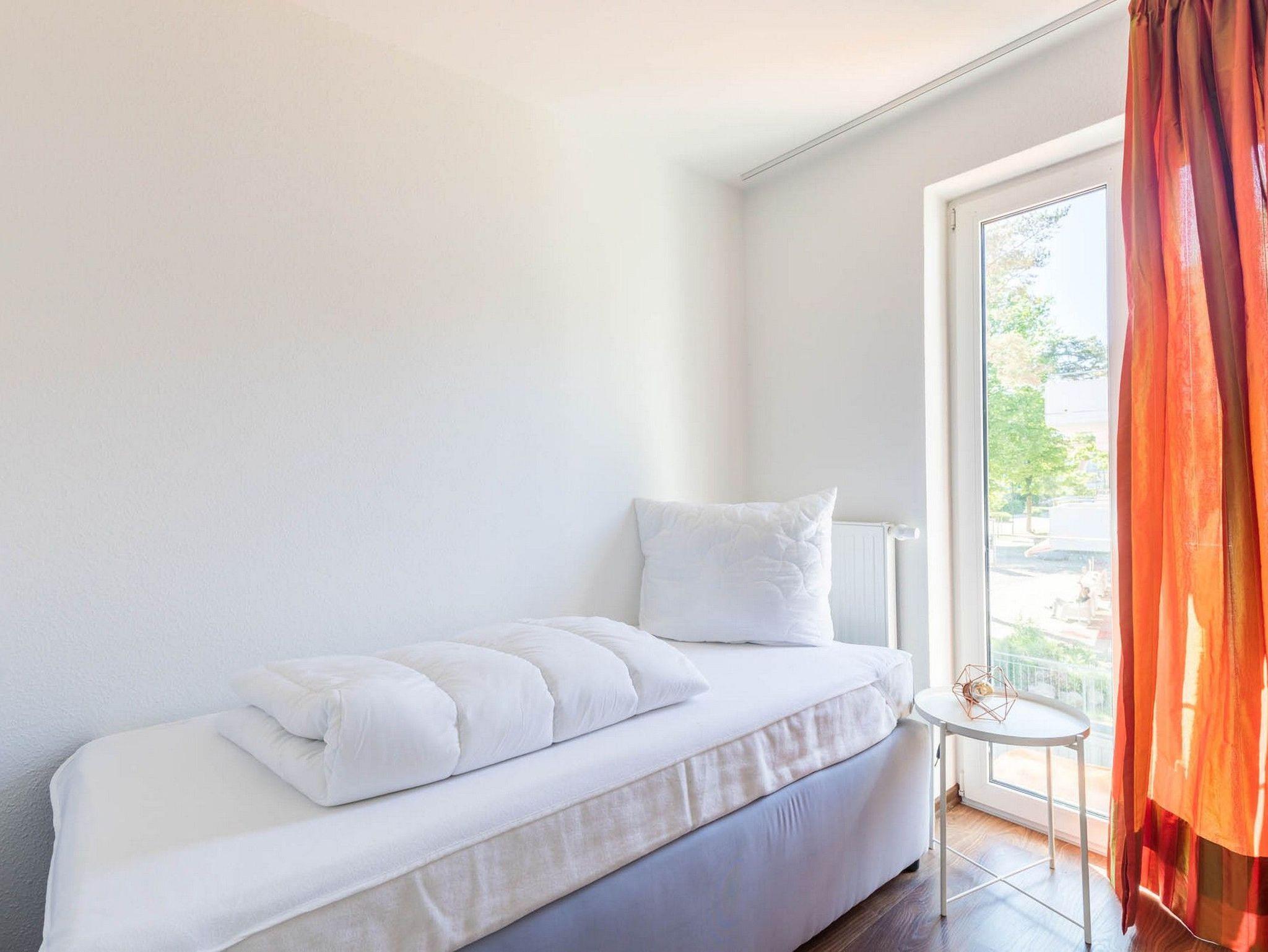 Die Wohnung verfügt über zwei Schlafzimmer, so dass bis zu 3 Gäste problemlos untergebracht werden können: Ein Schlafzimmer ist mit einem bequemen hochwertigen großen Boxspringbett ausgestattet, das andere mit einem Einzelbett.