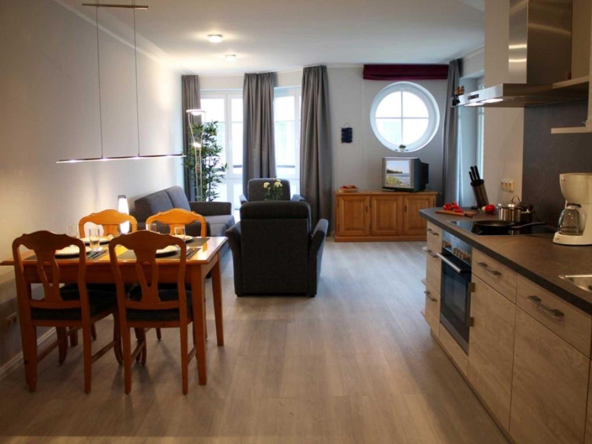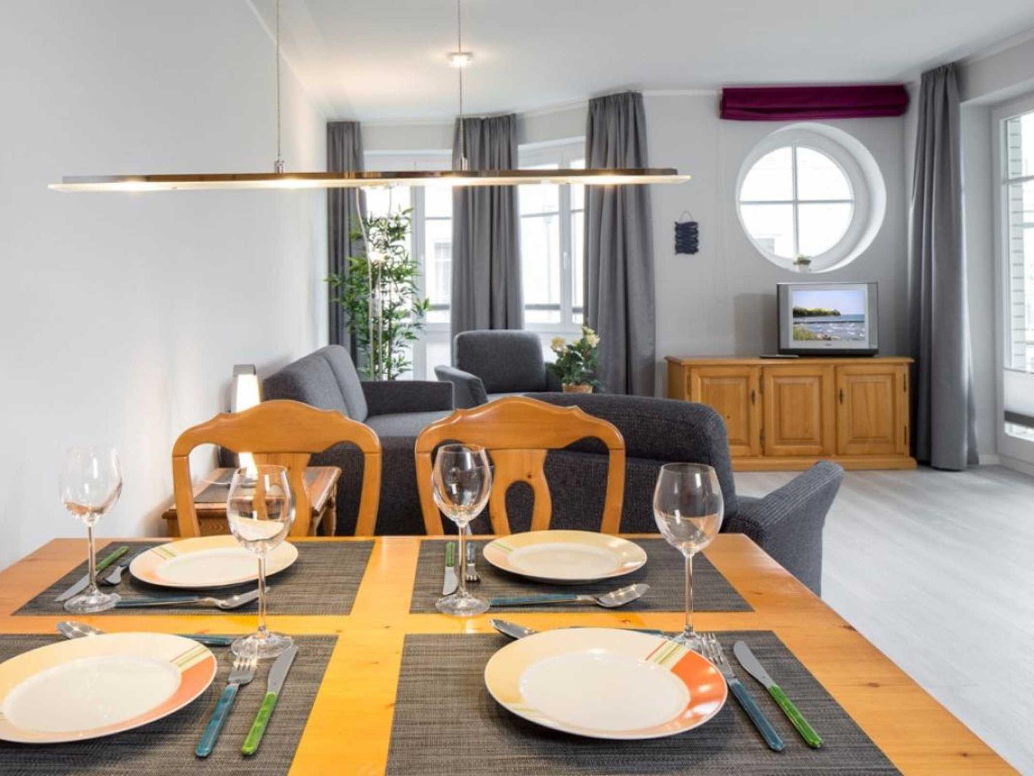 Die behaglich möblierte 2-Zimmer Meerblickwohnung mit Balkon, ist für eine Belegung mit bis zu 4 Personen geeignet und auch Hunde sind willkommen. Sie bewohnen ein 63qm großes Appartement im 1. OG des Hauses. Im Wohn-Essbereich empfängt Sie ein Komfortsofa, das sich mit wenigen Handgriffen in ein Schlafsofa mit zwei weiteren Schlafplätzen umwandeln lässt. Ein Fernseher, Radio sowie gebührenfreies WLAN sind ebenfalls vorhanden. Die bestens ausgestattete Wohnküche ist offen gestaltet und ermöglicht die eigenständige Versorgung mit Urlaubsmahlzeiten: Herd, Backofen, Mikrowelle, Dunstabzug, Kühlschrank mit sep. Gefrierfach, Kaffeemaschine, Toaster, Geschirrspüler usw. unterstützen Sie beim Kochen. Ihre Mahlzeiten nehmen Sie am Esstisch zu sich, oder Sie genießen die Vorzüge des saisonal möblierten Balkons in Nord-West Ausrichtung. Die Wohnung verfügt über ein separates Schlafzimmer mit Doppelbett, Kleiderschrank und Balkonzugang. Zugehörig ist ein modernisiertes Duschbad mit Waschtisch, Handtuchheizung, Föhn, WC. Waschmaschine und Wäschetrockner stehen allen Gästen gegen Gebühr zur Verfügung. Mitgebrachte Fahrräder können auf dem hauseigenen Grundstück an Fahrradständern, oder nach Verfügbarkeit im Untergeschoss des Hauses untergebracht werden. Ihren PKW parken Sie in der Tiefgarage. Hunde sind erlaubt. Nichtraucherwohnung.