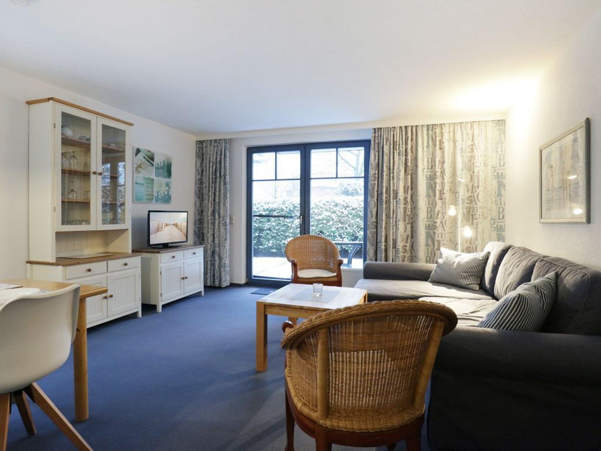 Die gut eingerichtete 2- Zimmer Ferienwohnung Papillon 12-1 besitzt eine Wohnfläche von 55qm und ist auf eine Belegung für bis zu 4 Personen eingerichtet. Der großzügige Wohn-/Essbereich ist mit einem Sofa, das auch als Schlafsofa nutzbar ist, Sessel sowie Esstisch und Schränken möbliert. Zudem sind ein Fernseher, DVD-Player, Musikanlage, kostenfreie WLAN- Nutzung vorhanden. Die saisonal möblierte Süd-Ost Terrasse lädt zum Entspannen ein. In der Wohnküche stehen Herd, Backofen, Mikrowelle, Geschirrspüler sowie Kühlschrank mit integr. Gefrierfach, Kaffeemaschine, Toaster und Wasserkocher bereit. Das separate Schlafzimmer empfängt Sie mit zwei Etagenbetten, Kleiderschrank. Im geräumigen Tageslicht Duschbad, mit Waschtisch, WC, beginnt Ihr Urlaubstag. Gegen Gebühr können Sie im Untergeschoß des Hauses Waschmaschine und Wäschetrockner nutzen. Für Kleinkinder befindet sich ein Hochstuhl im Appartement. Ihren PKW parken Sie kostenfrei auf dem wohnungseigenen Außenstellplatz parken. Bitte beachten Sie, dass es sich um eine Nichtraucherwohnung handelt. Haustiere sind nicht erlaubt. Zur Ostsee gelangen Sie in nur ca. 250 Meter.