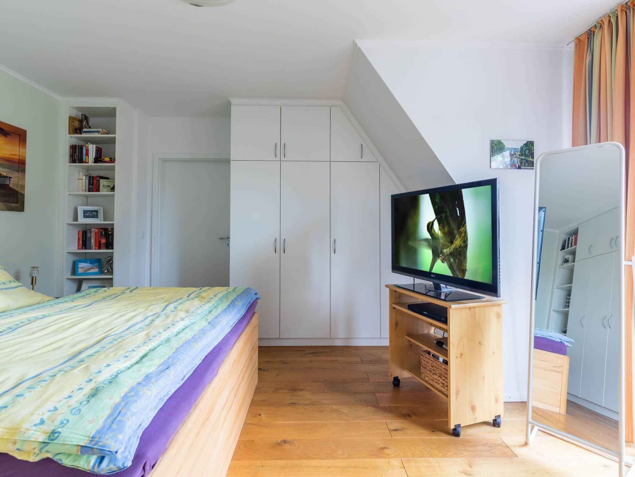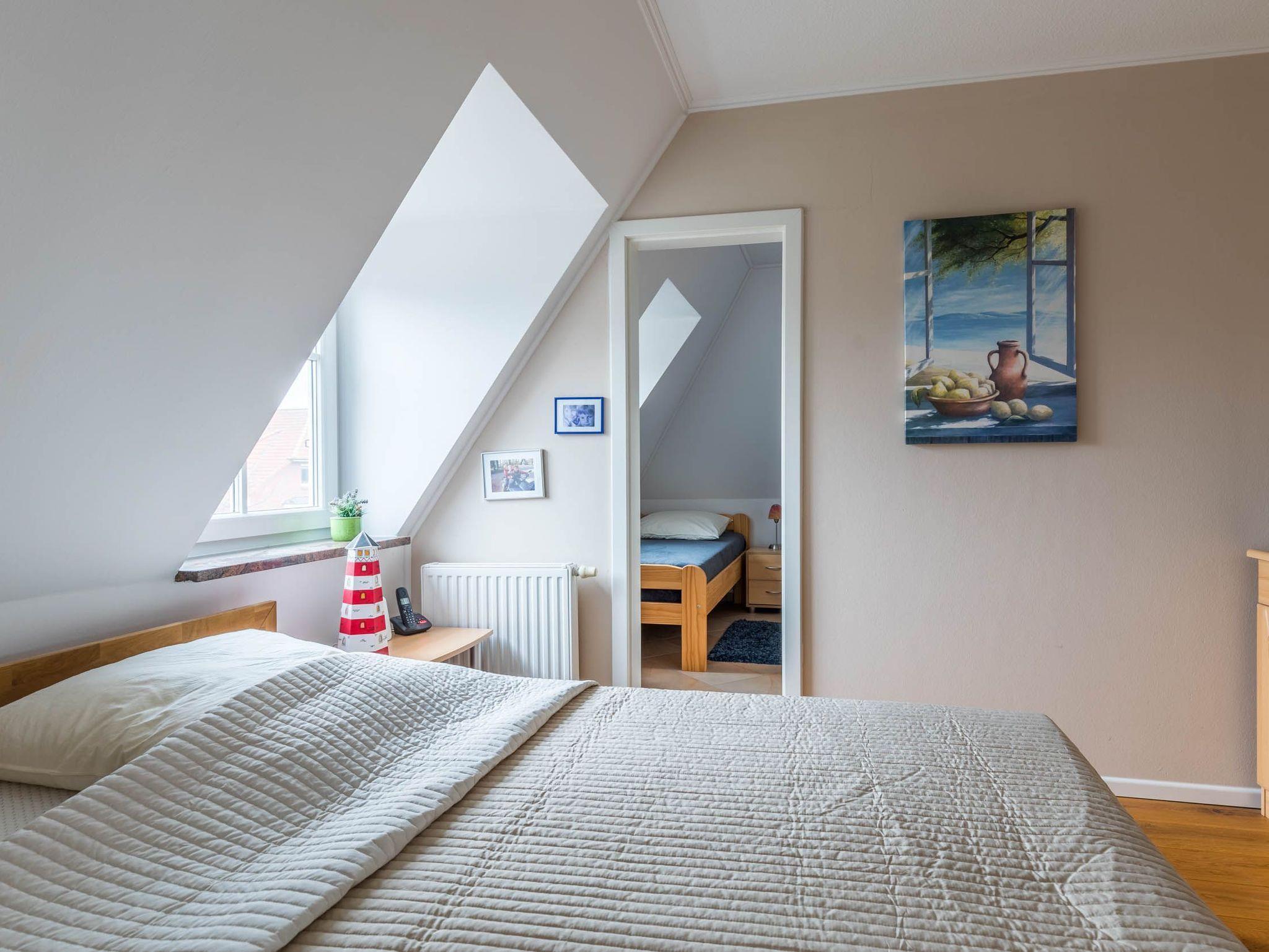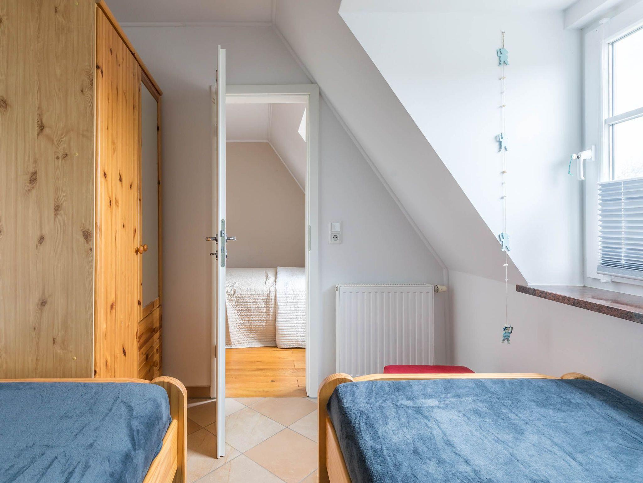 Die Wohnung ist mit 3 separaten Schlafzimmern ausgestattet: Im größten Schlafzimmer befinden sich neben einem höheren Doppelbett auch ein weiterer Flatscreen-TV zur Multimediaunterhaltung. Die Gästezimmer sind einmal mit 2 Einzelbetten und einmal mit einem Doppelbett eingerichtet. Für genügend Stauraum Ihrer Urlaubsgarderobe ist gesorgt.
