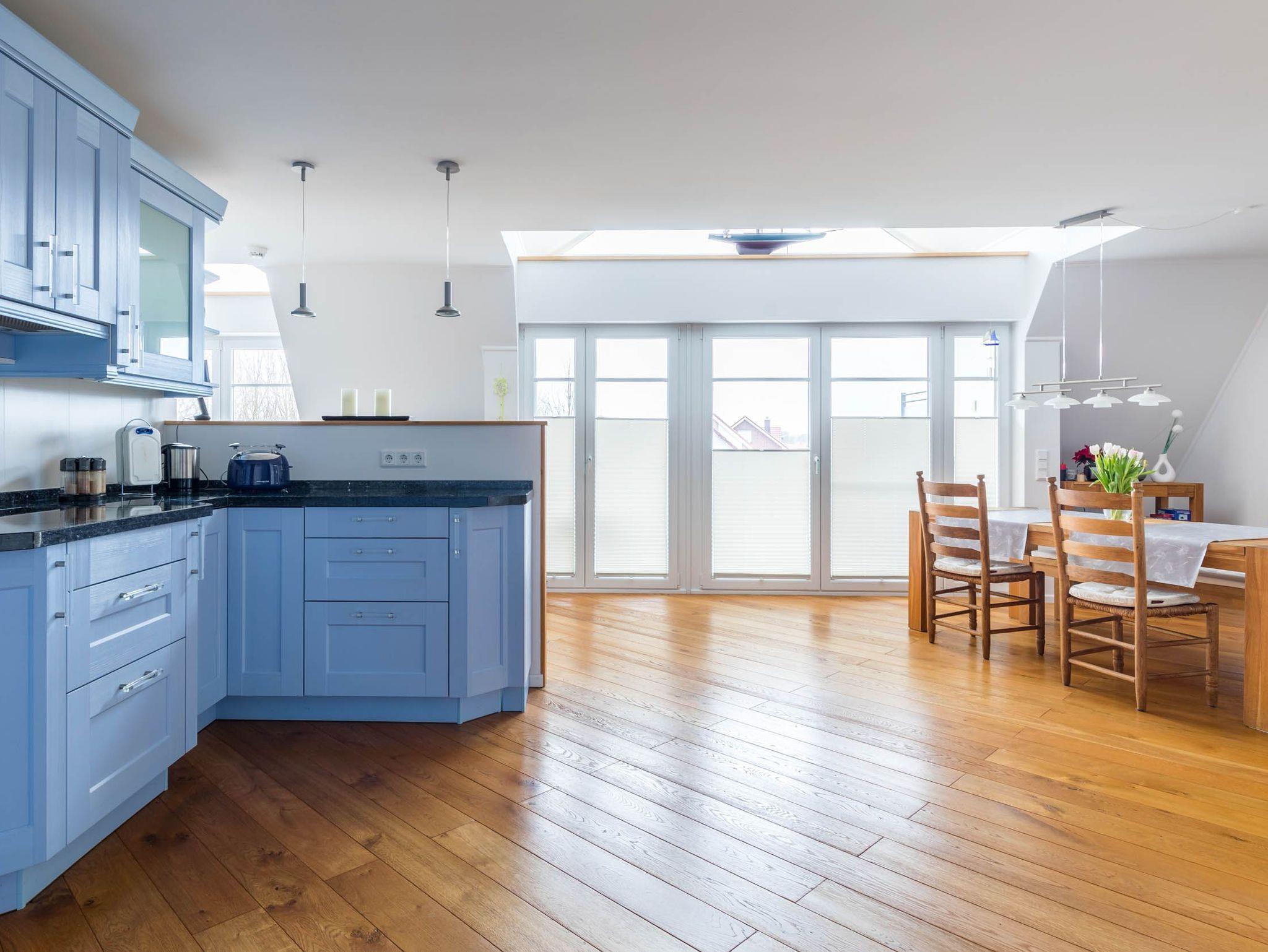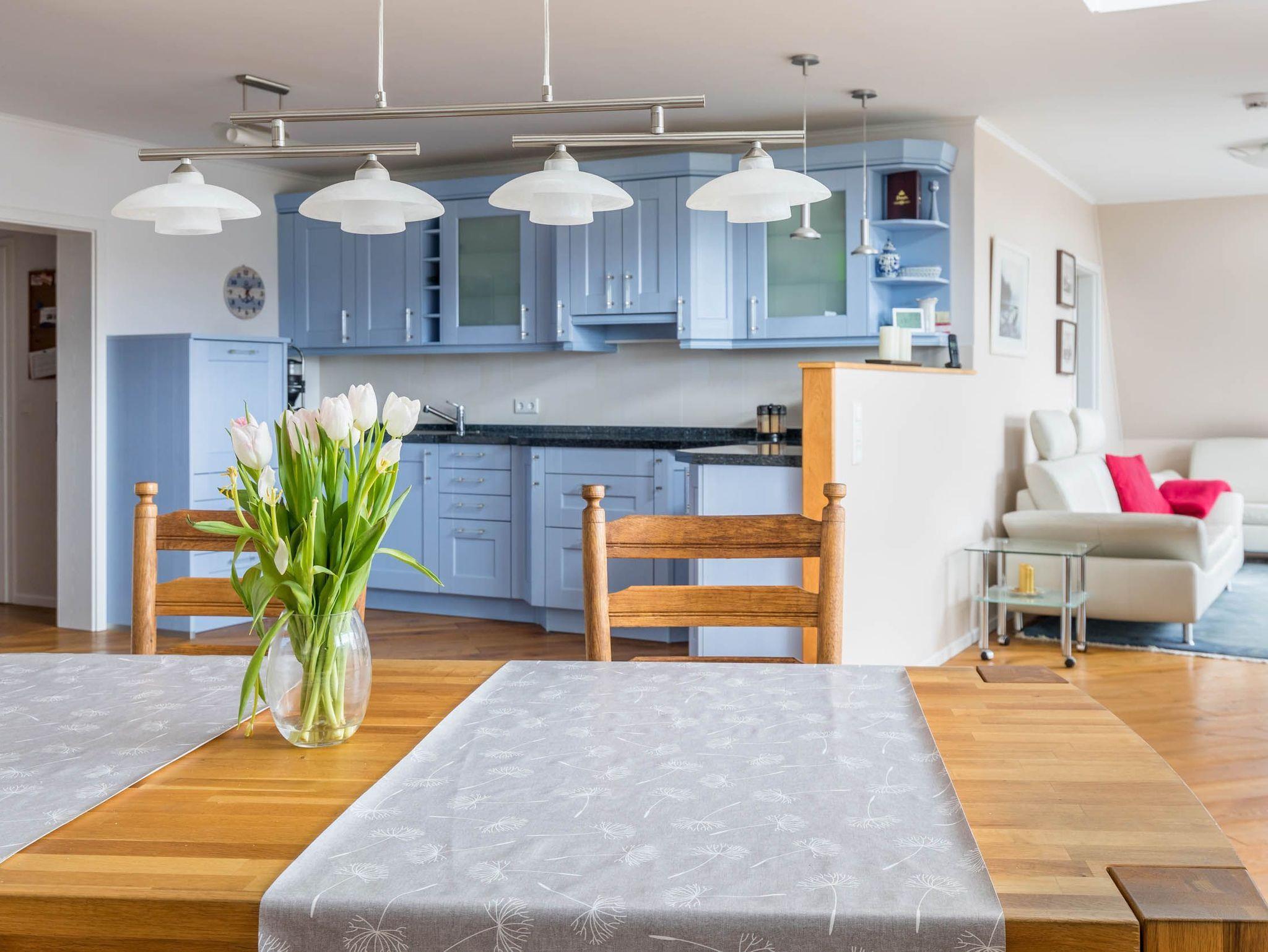 Nutzen Sie die komfortable Ausstattung der großzügigen und offenen Küchenzeile, um Ihre Mahlzeiten selbst zuzubereiten. In der angeschlossenen Essecke können Sie diese anschließend gemeinsam genießen.