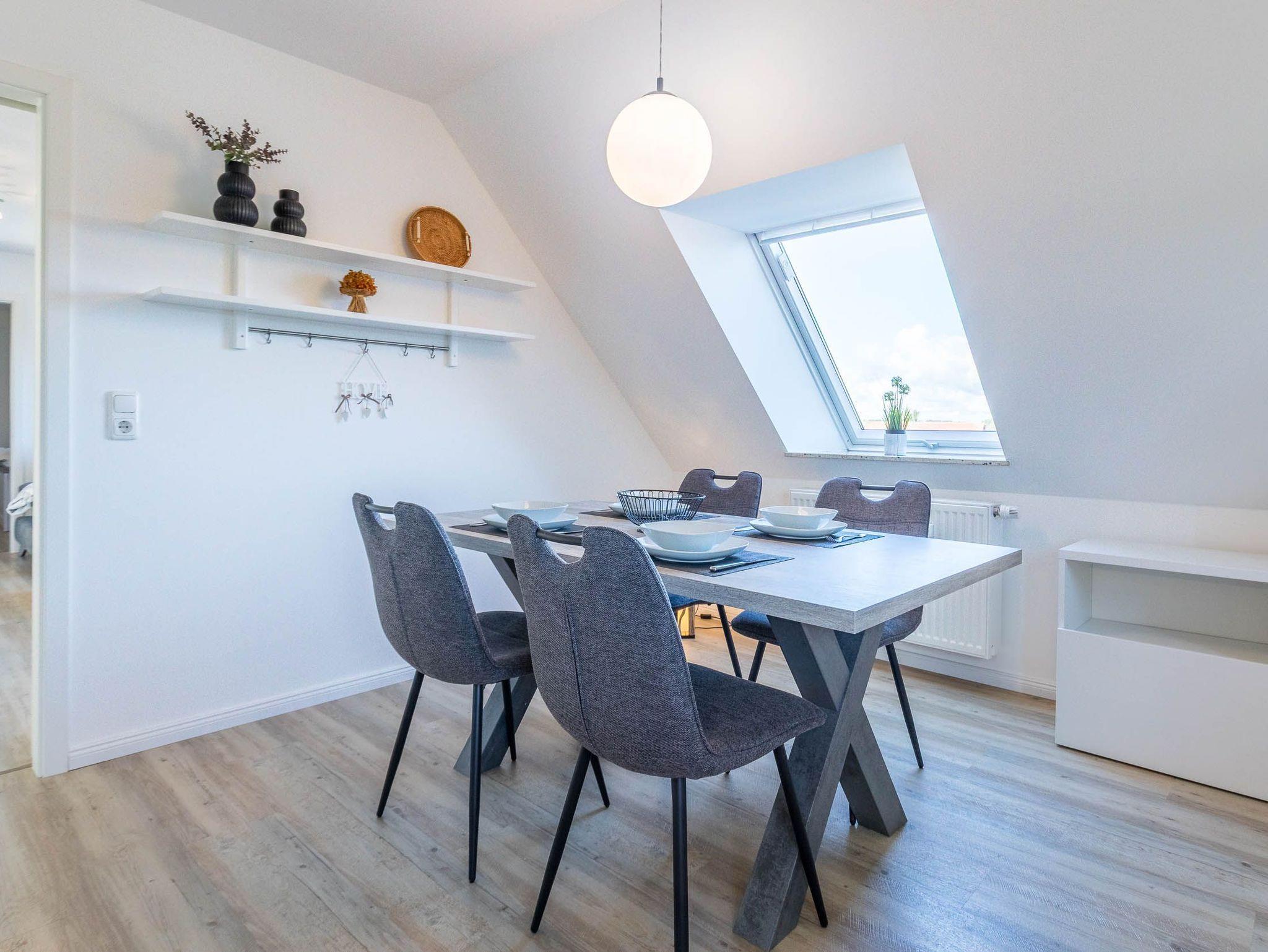 Die 3-Zimmer-Ferienwohnung befindet sich in der 2.Etage des Hauses und ist über eine Treppe zu erreichen. Sie bietet eine komfortable Ausstattung für bis zu 4 Gäste.