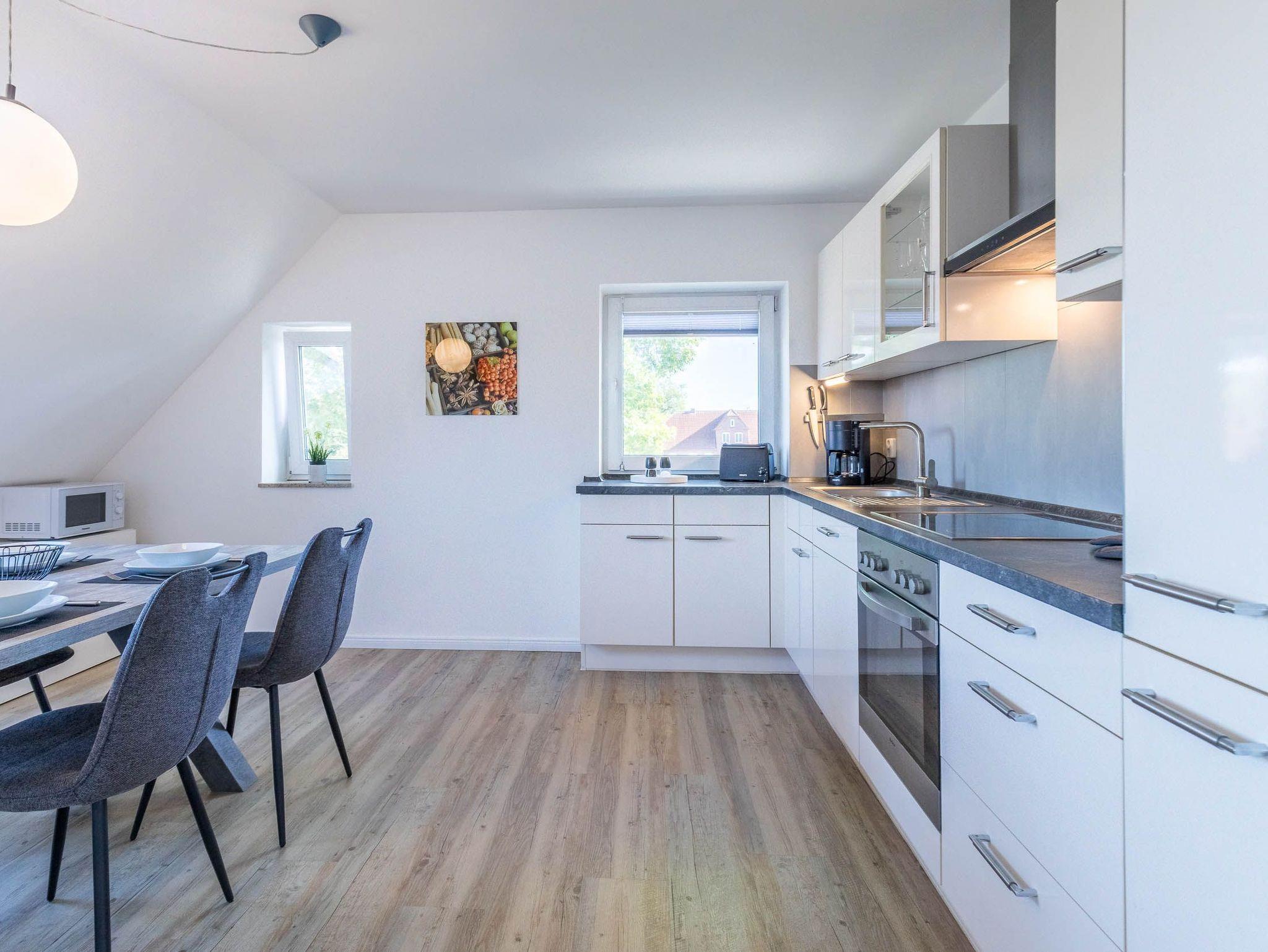 In der separaten, großzügigen Küche finden Sie alle wichtigen Haushaltsgeräte. Ihre Mahlzeiten können Sie bequem an der separaten Essecke genießen.