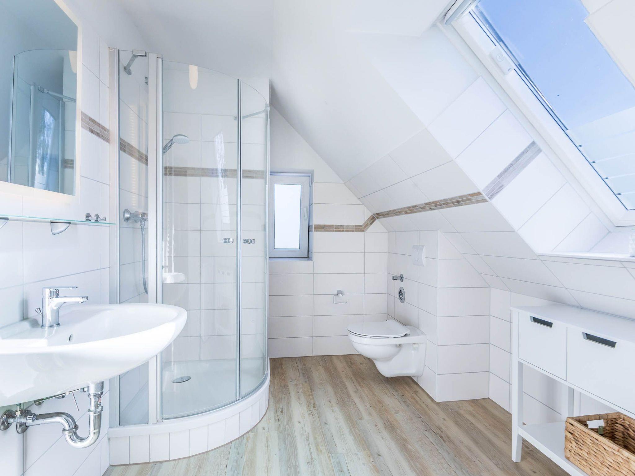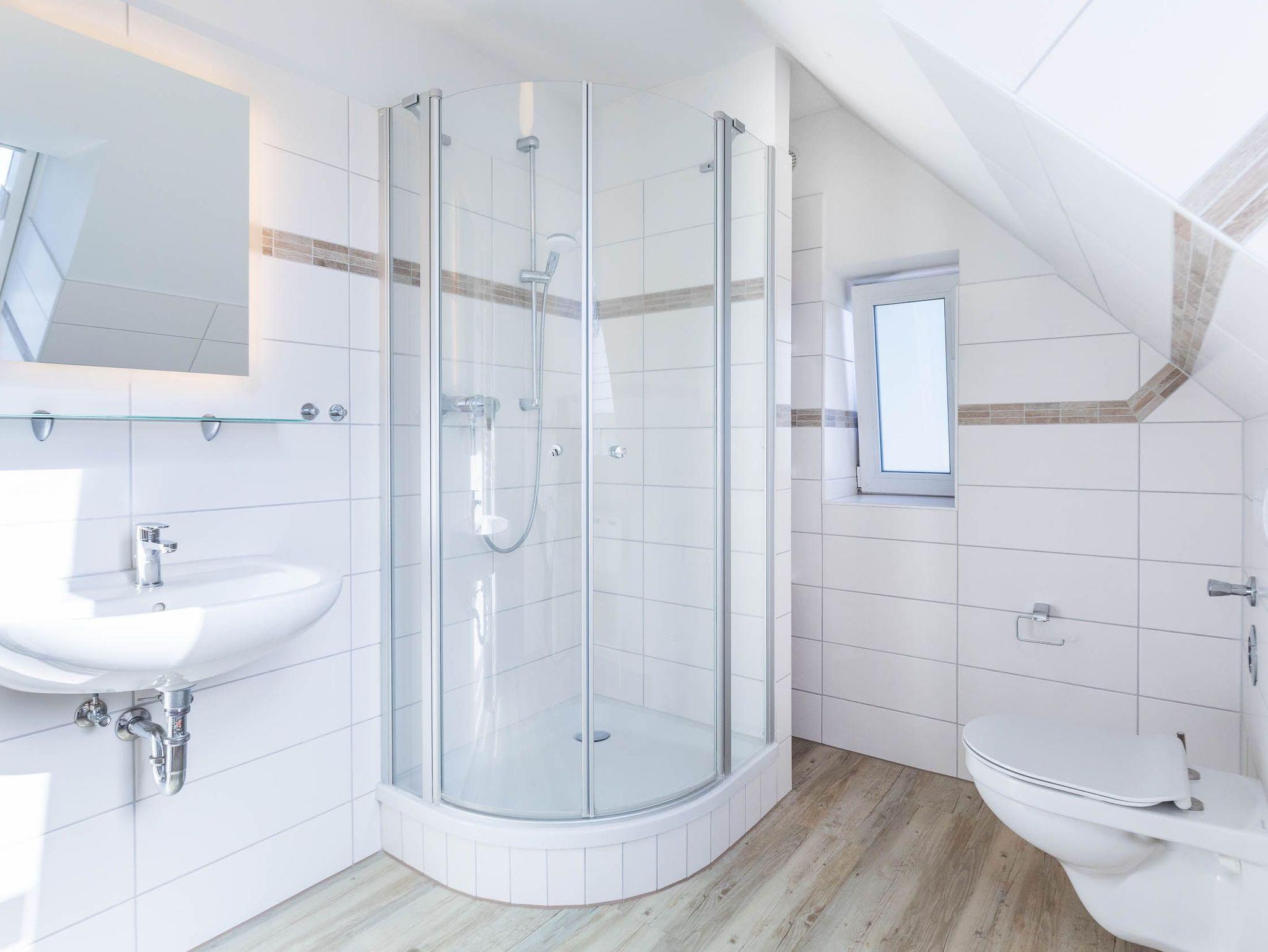 Ein modernes Badezimmer mit Dusche, Waschbecken und WC rundet das komfortable Quartier ab. Zudem steht unseren Gästen eine Waschmaschine (Toplader) zur Verfügung.