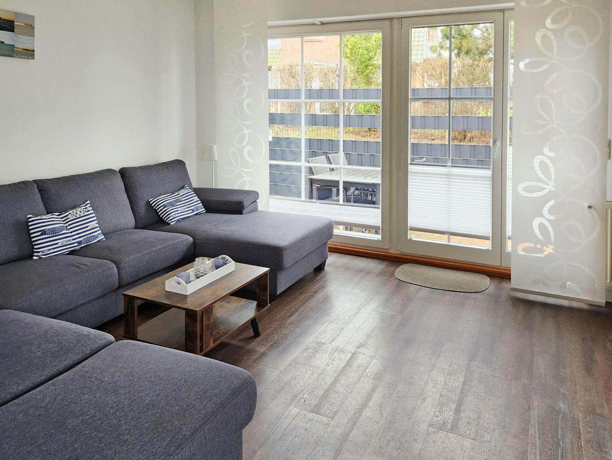 Die modernisierte 3-Zimmerwohnung besitzt eine geräumige Wohnfläche von 74qm. Sie wohnen im Erdgeschoss des Hauses und genießen die Vorzüge einer wohnungseigenen Terrasse mit Strandkorb. Eine Belegung ist mit max. 4 Personen möglich. Der behaglich möblierte Wohn-Essbereich ist mit einer Sofalandschaft und einem Esstisch möbliert. Ebenso sind Fernseher, Musikanlage und WLAN gebührenfrei vorhanden.