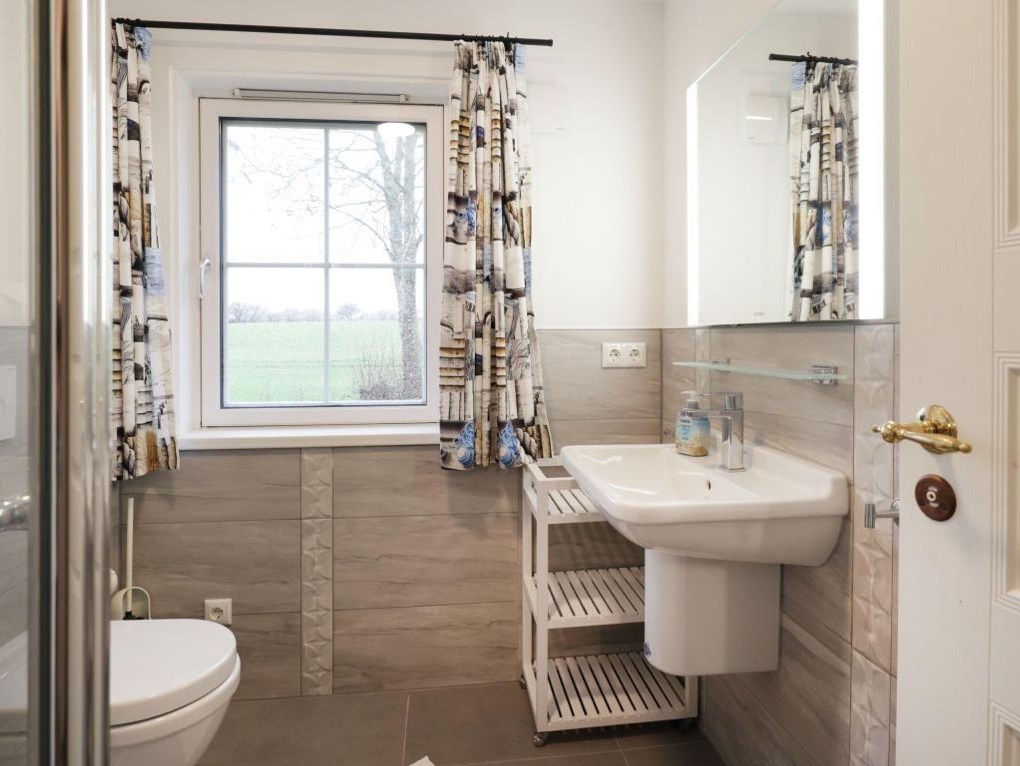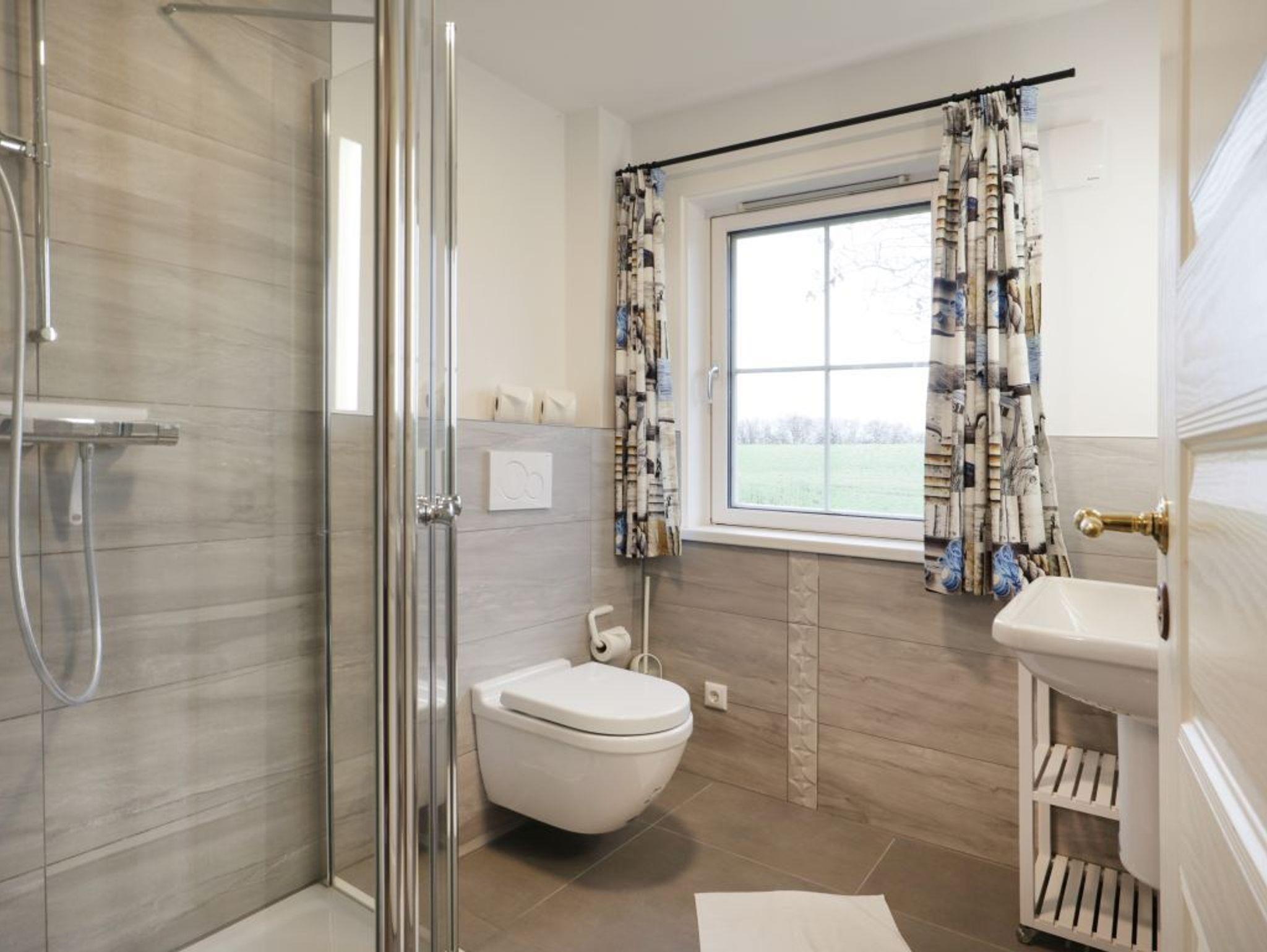 Diese 3-Zimmer-Ferienwohnung liegt im 1. Obergeschoss und ist komfortabel gestaltet. Mit einer Wohnfläche von 60 m² bietet sie Platz für bis zu 4 Urlaubsgäste. Ein Kaminofen sorgt für eine behagliche Atmosphäre, während der saisonal möblierte Balkon zum Entspannen an klarer Meeresluft einlädt. Im geräumigen Wohn-/Essbereich, dem Herzstück der, für Allergiker geeigneten Wohnung, können Sie auf der Sofagarnitur, Fernsehen oder Musik hören. Wenn Sie auf den Zugang zur digitalen Welt Wert legen, steht Ihnen das Internet über WLAN gebührenfrei zur Verfügung. Die gut ausgestattete Wohnküche erleichtert den Ferienaufenthalt. Die Ausstattung umfasst Ceranfeldherd, Backofen, Mikrowelle, Kühlschrank mit integriertem Gefrierfach sowie eine Kaffeemaschine, Wasserkocher, Toaster und einen Geschirrspüler sowie genügend Geschirr und Besteck. Mahlzeiten nehmen Sie am Esstisch zu sich, oder Sie genießen die ländliche Stille auf dem sonnigen Balkon. Dieses Ferienappartement bietet zwei separate Schlafzimmer. Das erste Schlafzimmer ist mit einem Doppelbett, Kleiderschrank und einem Fernseher ausgestattet. Das zweite Schlafzimmer bietet zwei Einzelbetten, Schrank und Schreibplatz. Für mitreisende Kinder ist ein Kinderhochstuhl und etwas Spielzeug vorhanden. Das Tageslicht-Duschbad ist modernisiert und mit Waschtisch, Fön, WC und Fußbodenheizung ausgestattet. Darüber hinaus können Sie die Waschmaschine kostenfrei nutzen. Ihr Fahrzeug parken Sie bequem und kostenlos auf dem hauseigenen Außenstellplatz direkt vor der Wohnung. Diese Ferienwohnung bietet alles, was Sie für einen entspannten Ostseeurlaub benötigen. Auch ein Bügeleisen kann genutzt werden. Ob mit Freunden oder der Familie. In diesem Feriendomizil sind Nichtraucher ohne Haustiere herzlich willkommen.