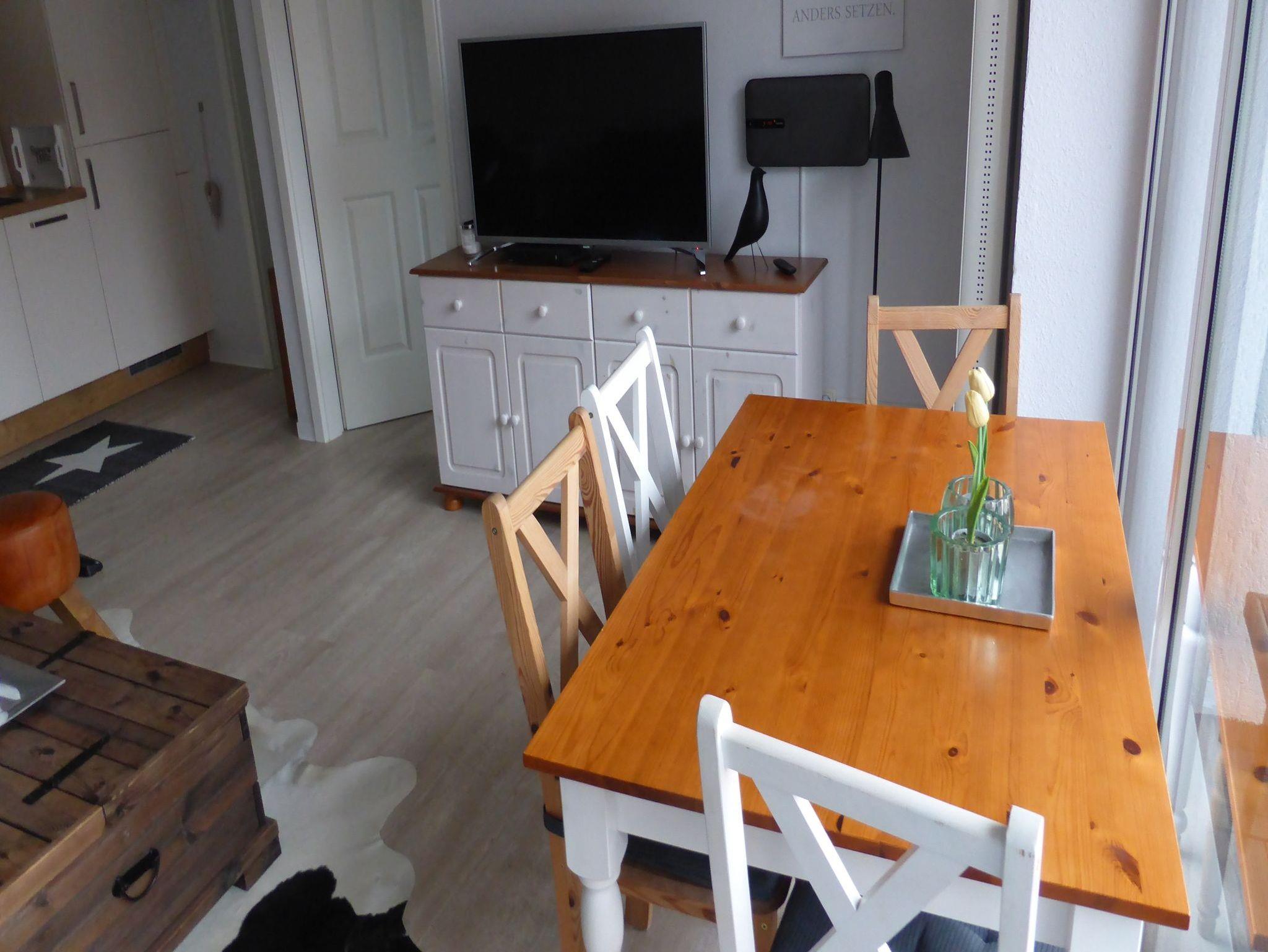 Ein Essbereich und eine offene, voll ausgestattete Einbauküche u.a. mit Geschirrspüler, Mikrowelle, Kaffeemaschine, Toaster und Backofen mit Cerankochfeld gehören ebenfalls zum Wohnbereich.