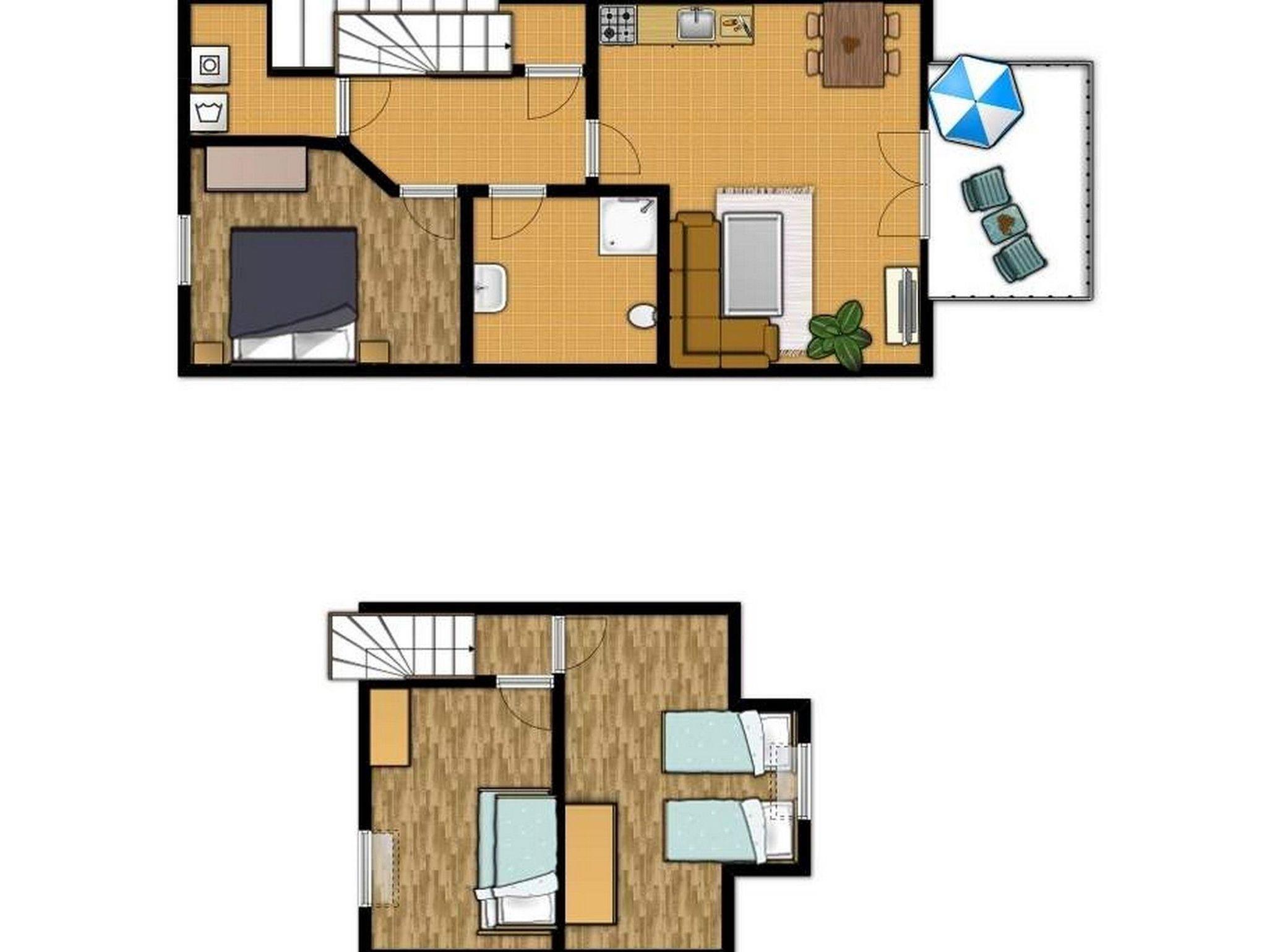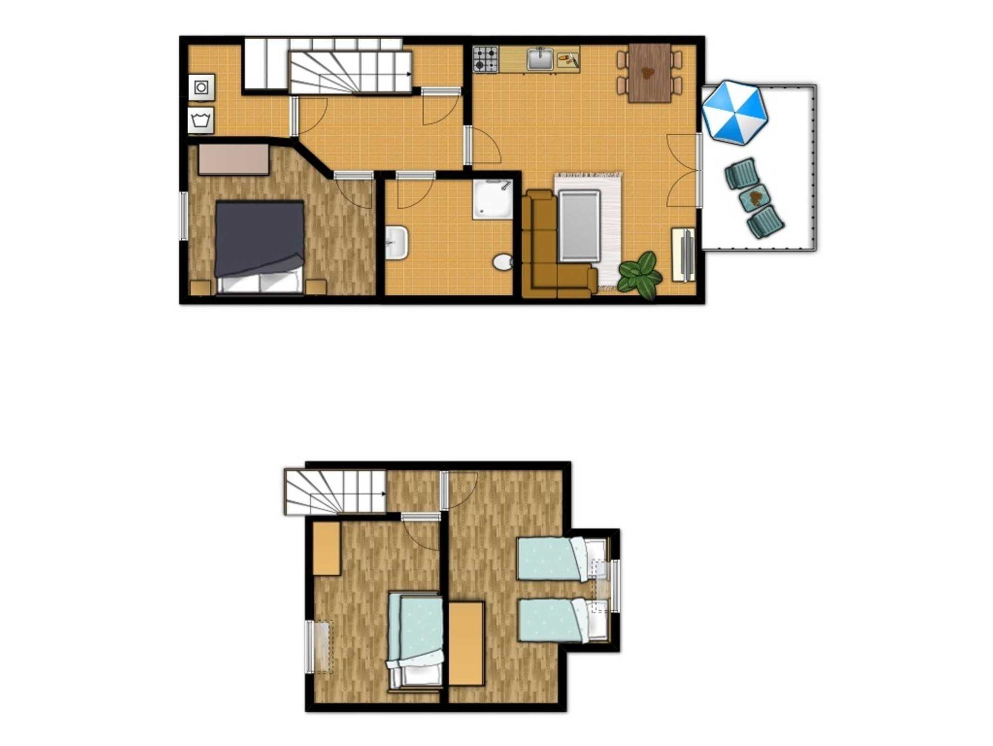 Die komfortable 4-Zimmer-Wohnung im 1.OG erstreckt sich mit etwa 75qm Wohnfläche über zwei Wohnebenen und bietet eine familienfreundliche Ausstattung für 6 Personen.