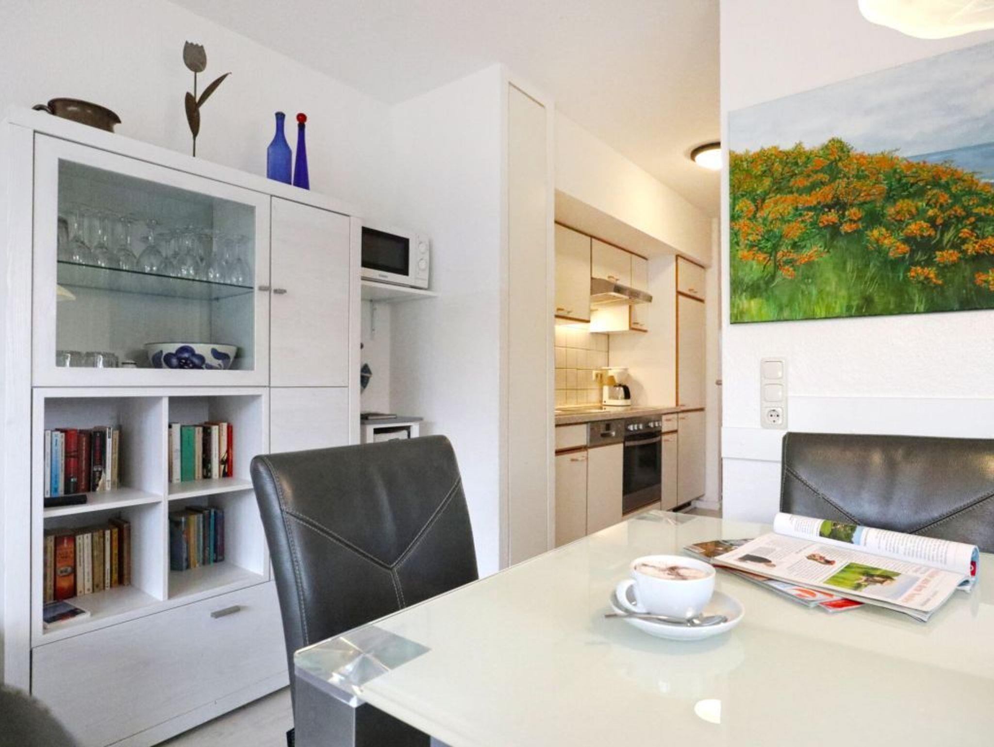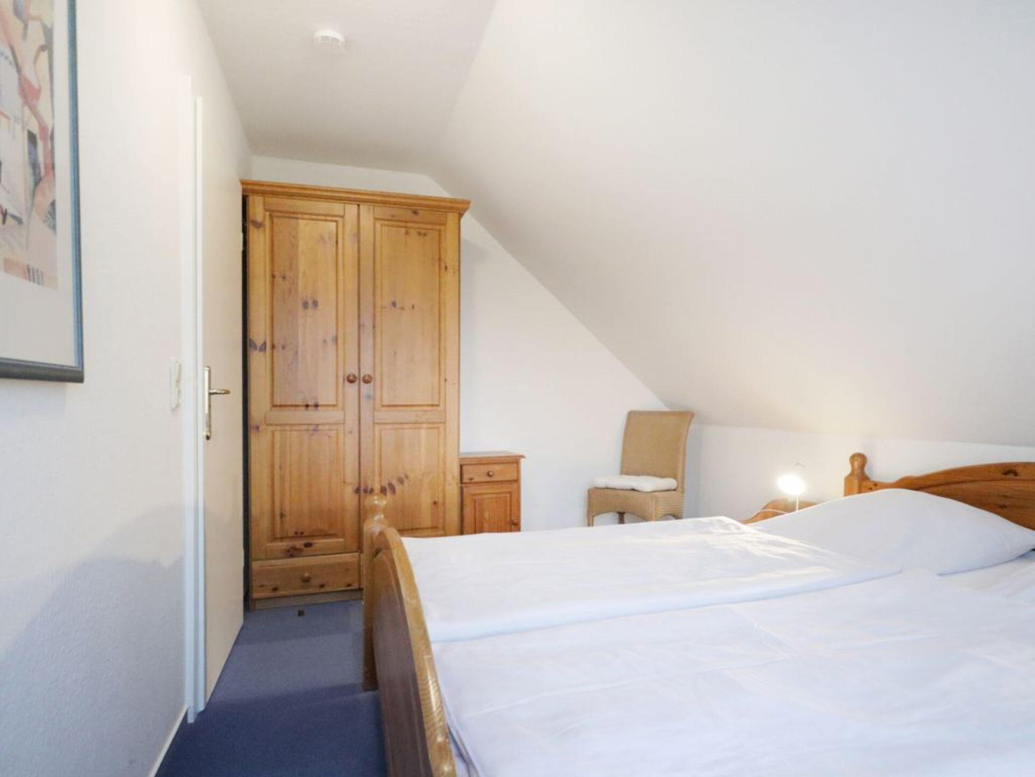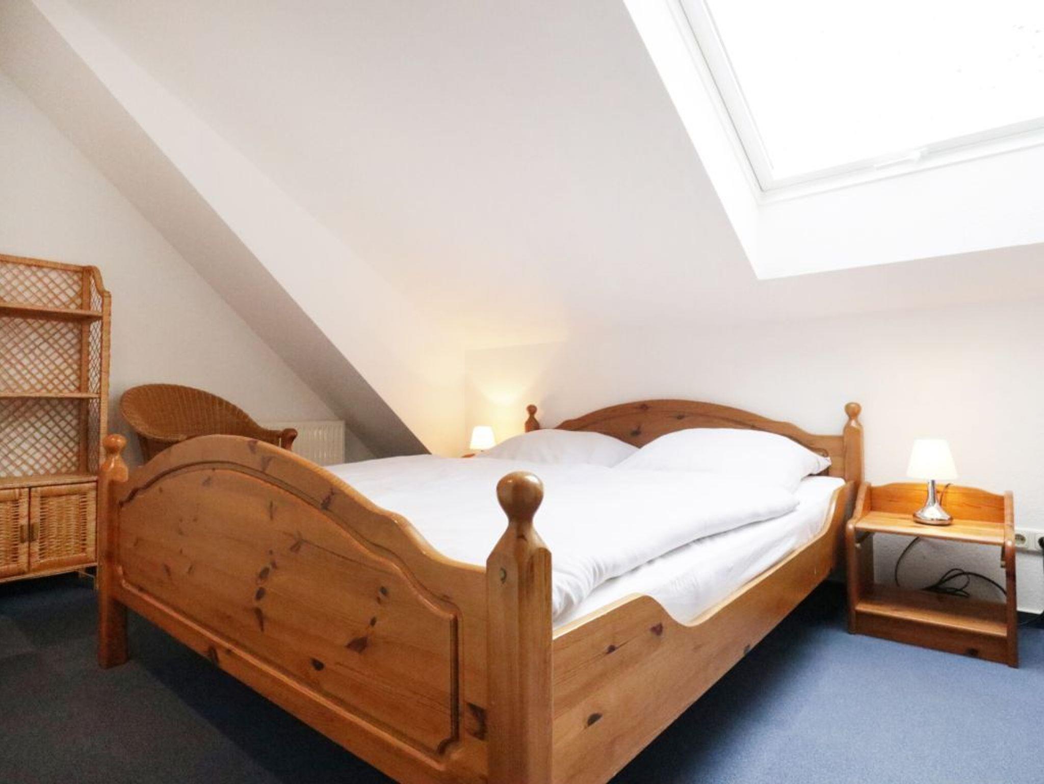 Die behaglich ausgestattete Wohnung befindet sich im 1. Obergeschoss und erstreckt sich über zwei Ebenen. Der im offenen Stil gehaltene Wohn-/Essbereich ist mit einer voll ausgestatteten Küchenzeile eingerichtet, so dass Sie sich bei Bedarf vollkommen eigenständig mit Urlaubsmahlzeiten versorgen können. Ihre gemeinsamen Mahlzeiten nehme Sie am großen Esstisch, oder während der wärmeren Jahreszeit bestimmt gerne auf dem saisonal möblierten Süd-West Balkon zu sich. Technische Unterhaltungselektronik bieten ein Fernseher, Musikanlage sowie kostenfreie WLAN-Nutzung. Die Wohnung besitzt insgesamt drei Schlafzimmer wovon eines mit zwei Einzelbetten und Kleiderschrank eingerichtet ist und sich in der unteren Wohnebene befindet. Ebenso ist ein großzügiges Duschbad mit zwei Waschtischen und WC auf dieser Ebene vorhanden. Über eine leicht geschwungene Holztreppe gelangen Sie in die obere Ebene, wo sich zwei weitere Schlafzimmer mit Doppelbett und Kleiderschank befinden. Im Untergeschoss des Hauses können Hausgäste Waschmaschine und Wäschetrockner gegen Gebühr nutzen. Keine Haustiere. Rauchen ist nicht gestattet. Ihr Fahrzeug parken Sie kostenfrei auf dem zur Wohnung gehörenden PKW-Stellplatz, der sich in unmittelbarer Nähe zum Haus befindet. Sollten Sie weitere Stellplätze benötigen, so stehen am Ortseingang kostenfreie Flächen nach Verfügbarkeit bereit, oder Sie nutzen die innerörtlichen kostenpflichtigen Parkplätze.