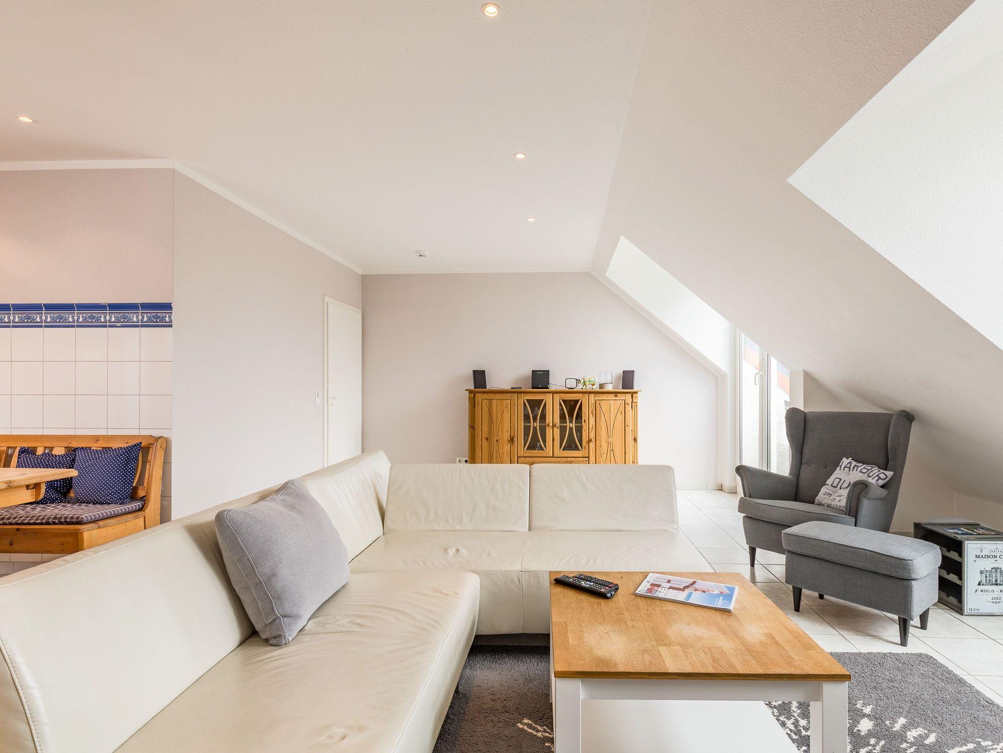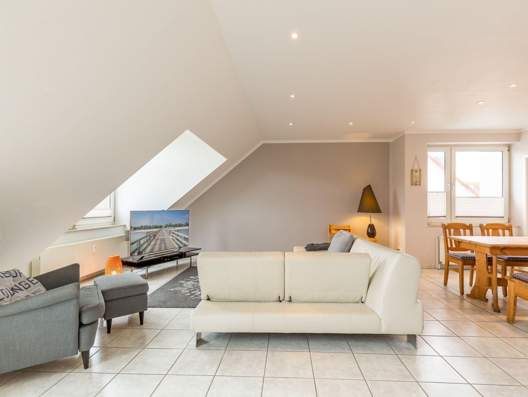 Die Ferienwohnung Ferienliebe in Boltenhagen bietet 78 m² Komfort in sonniger Dachgeschoßlage nahe dem Strand.