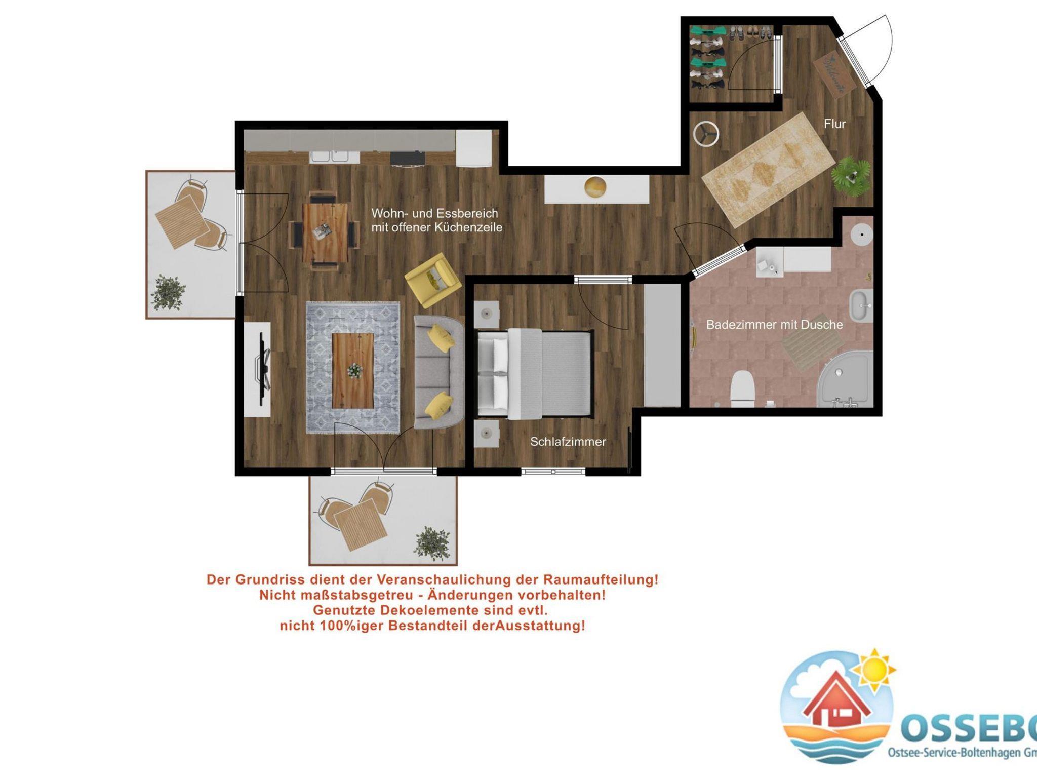 Stilvolle 2-Zimmer-Wohnung in Boltenhagen mit WLAN, zwei Balkonen und kostenfreien Fahrrädern für erholsamen Ostseeurlaub.