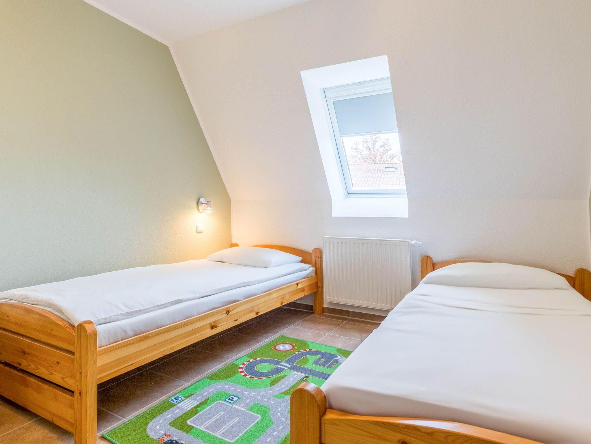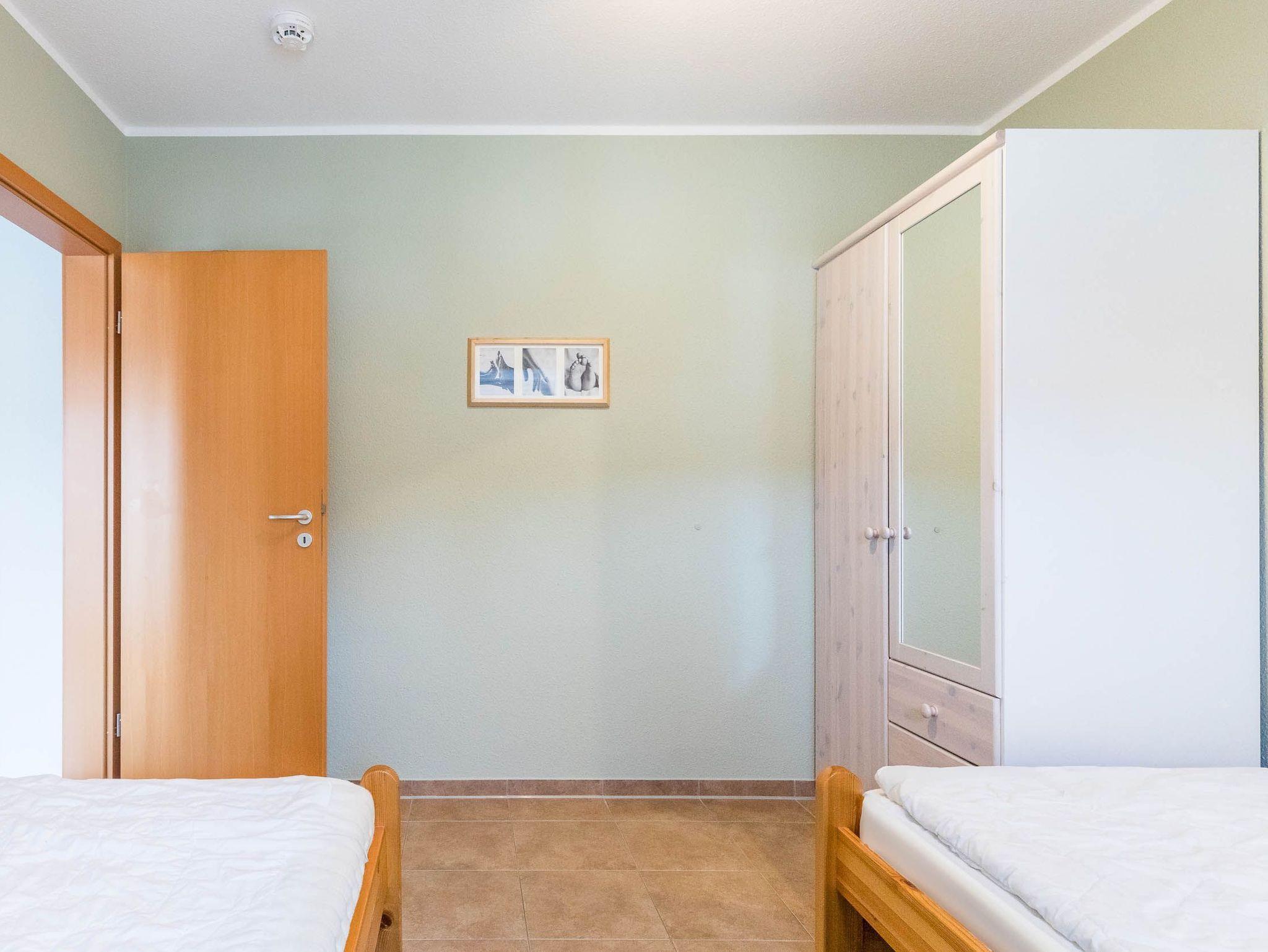 Weiterhin befindet sich das Gäste-/ Kinderzimmer auf dieser Etage. Dieses bietet 2 Einzelbetten und einen großen Kleiderschrank.