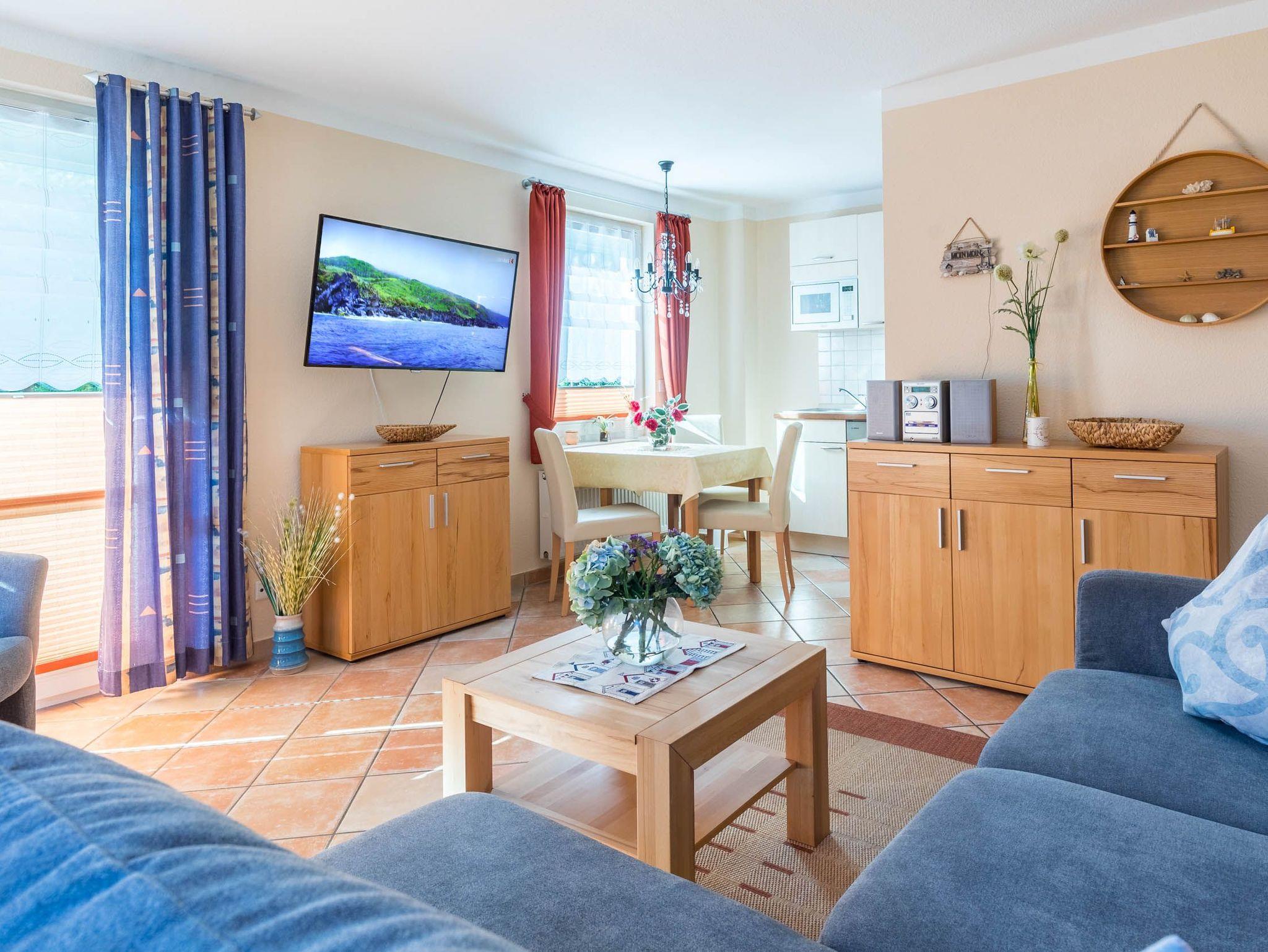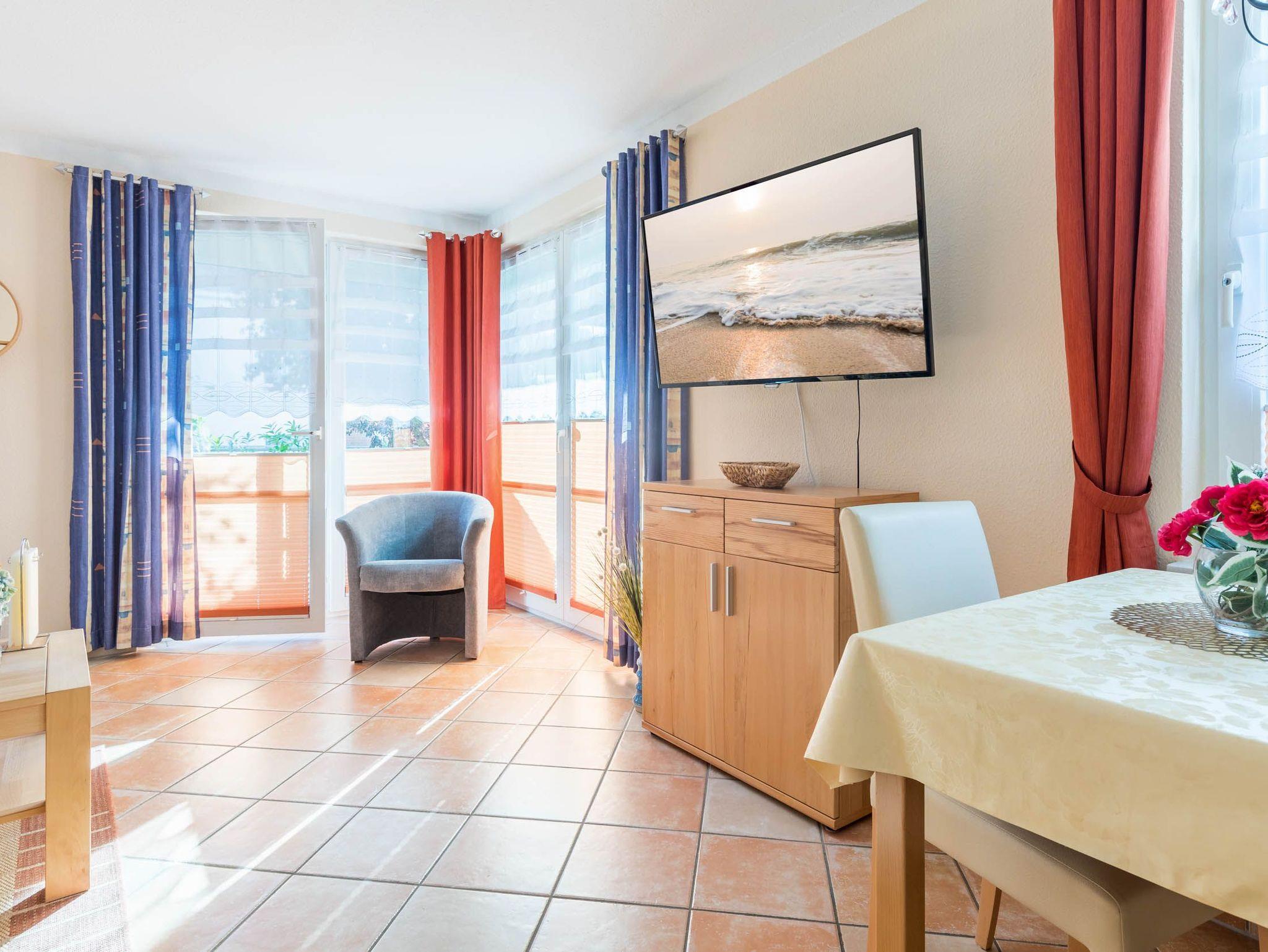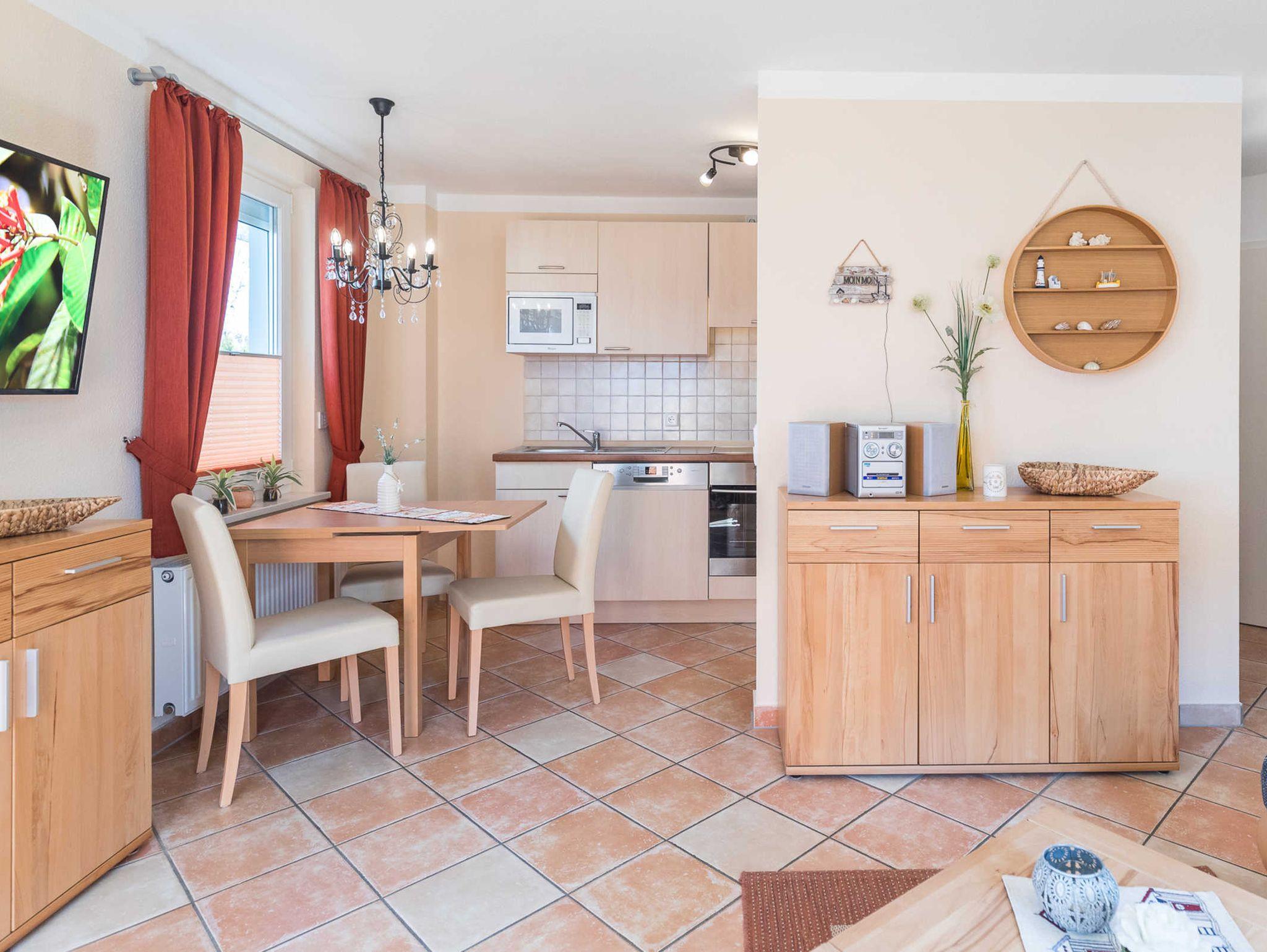 Dieses schöne 2-Zimmer-Ferienappartement im EG lädt auf rund 49qm Wohnfläche zum Ostseeurlaub zu Zweit ein.