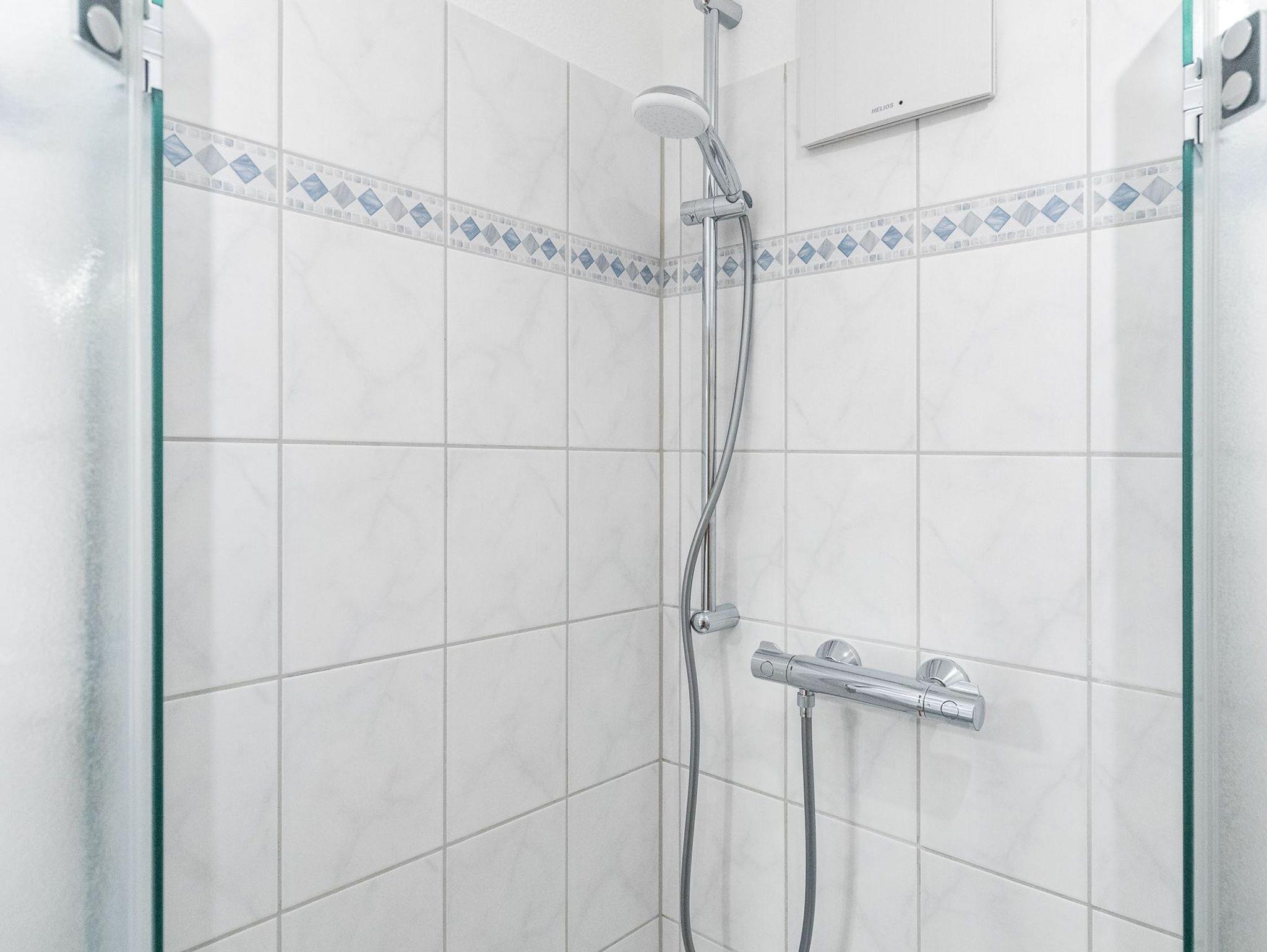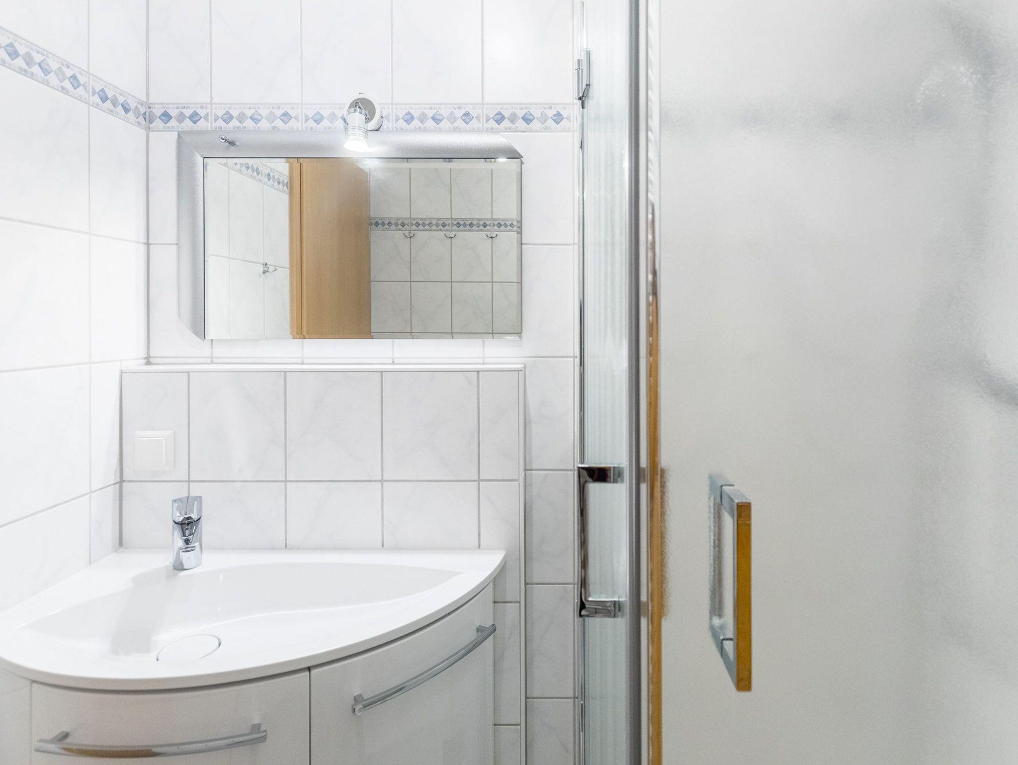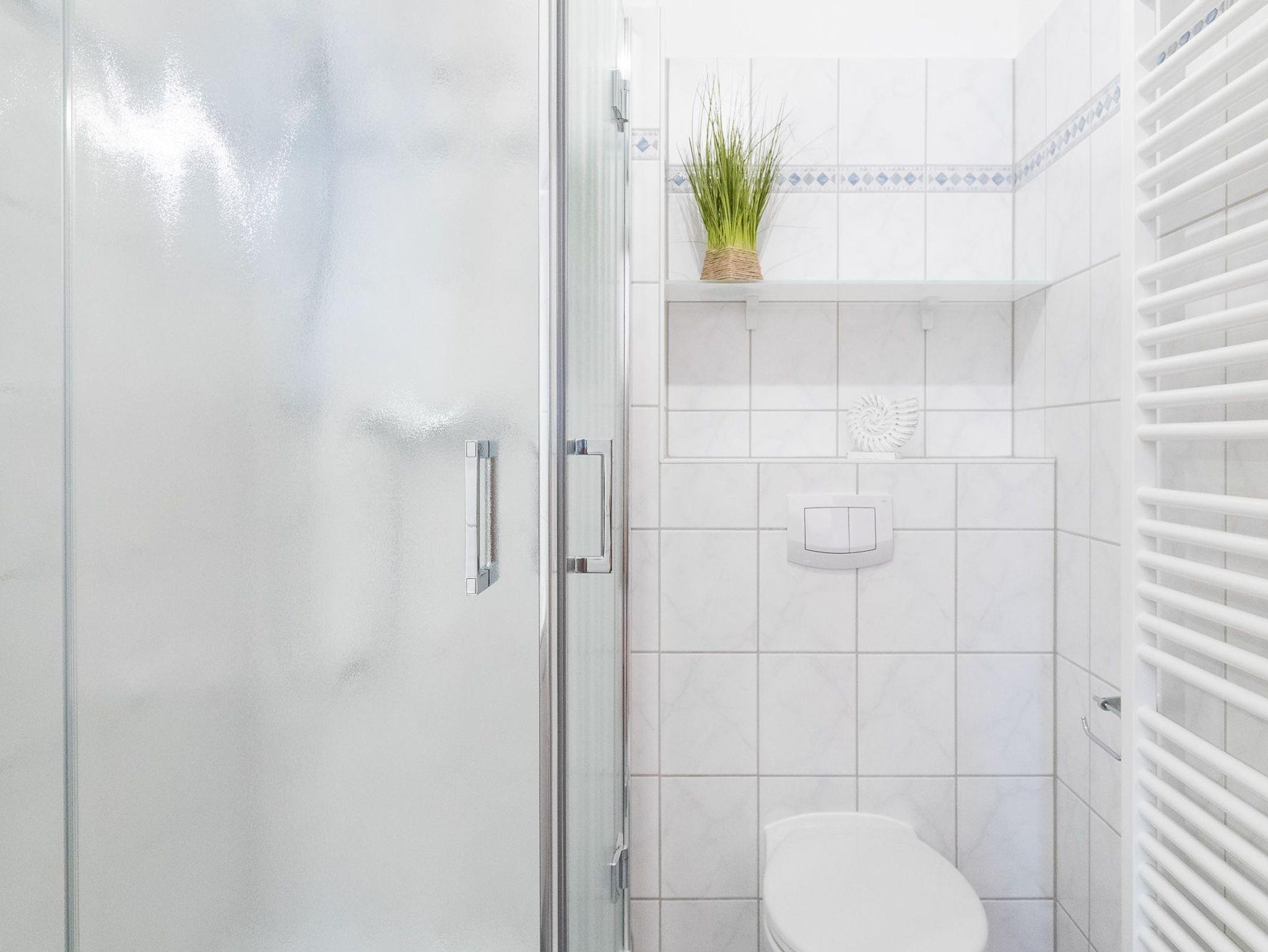 Ein modern eingerichtetes Duschbad mit WC, Handtuchheizung und Fußbodenheizung komplettiert diese zentrale Nichtraucher-Ferienunterkunft.