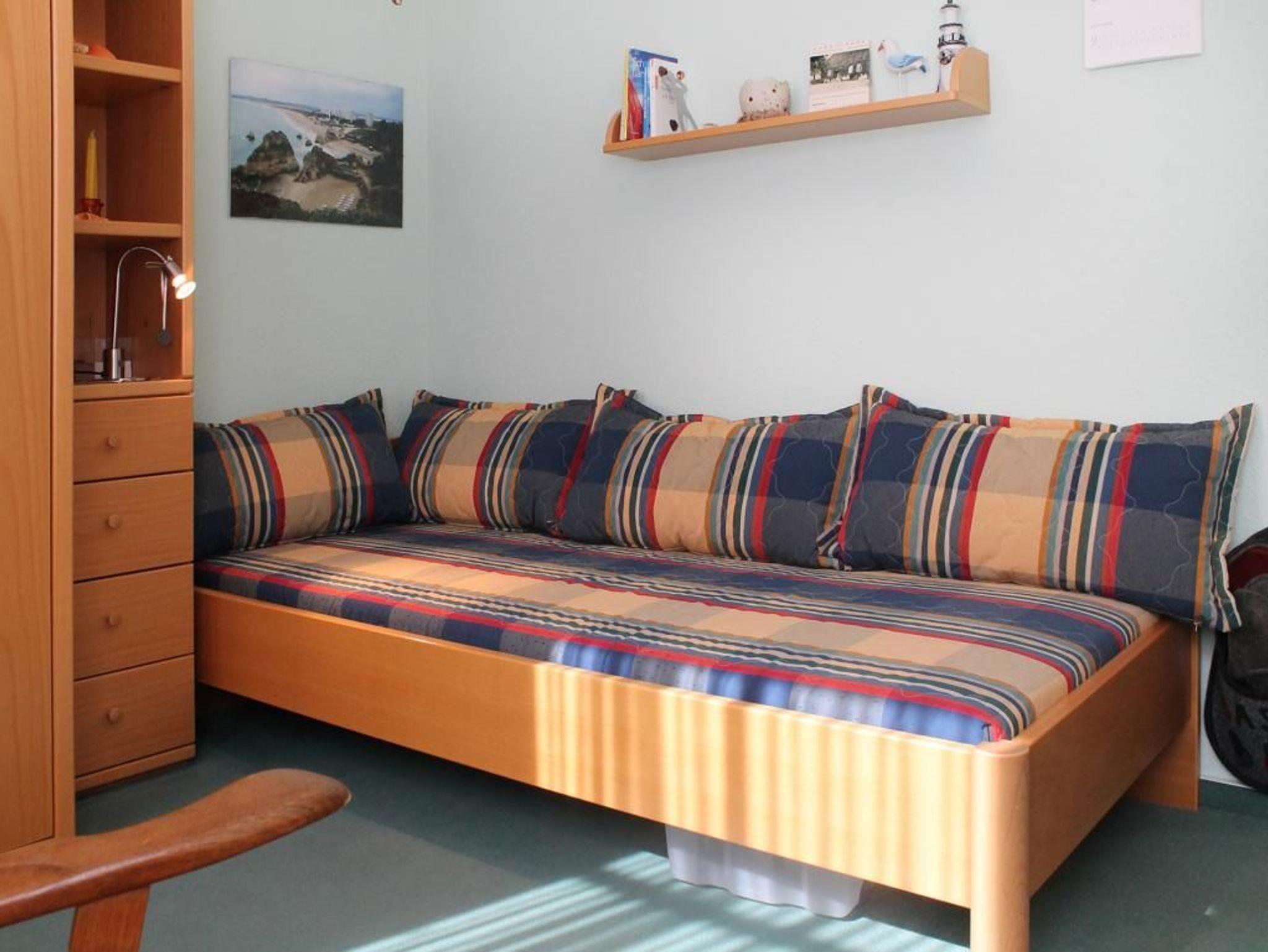 Das Appartement Residenz am Teich 4 besticht durch seine ruhige und trotzdem zentrale Lage. Nur 100 Meter trennen Sie vom wunderschönen Strand. Die 66 m² sind modern und liebevoll für bis zu 5 Personen eingerichtet. Das großzügige Wohnzimmer mit Kamin und Fernseher sorgt für einen angenehmen Aufenthalt. Die integrierte Komfortküche ist mit Geschirrspüler, Cerankochfeld, Backofen, Kühlschrank, Mikrowelle, Wasserkocher, Kaffeemaschine und Toaster komplett ausgestattet. Die sonnige Terrasse erreichen Sie vom Wohnbereich. Des Weiteren verfügt das 3-Zimmer-Appartement über 2 separate Schlafzimmer (1x Doppelbett, 1x Schrankbett und Einzelbett). Auch ein stilvoll ausgestattetes Duschbad steht Ihnen während des Aufenthaltes zur Verfügung. Ein PKW-Stellplatz befindet sich direkt vor dem Haus. Ein Strandkorb steht auf der Terrasse für Sie bereit.