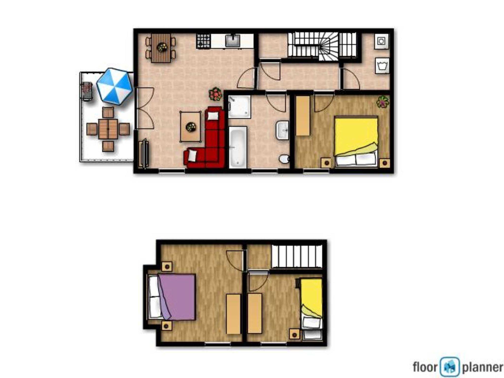Sie bietet in der ersten Wohnebene einen hellen Wohn- und Essbereich mit einer offenen Küchenzeile und einer gemütlichen separaten Essecke. Der gemütlich eingerichtete Wohnbereich bietet für die gesamte Familie ausreichend Platz zum Entspannen. Für Unterhaltung sorgen hier ein Flatscreen-TV und ein DVD-Player.