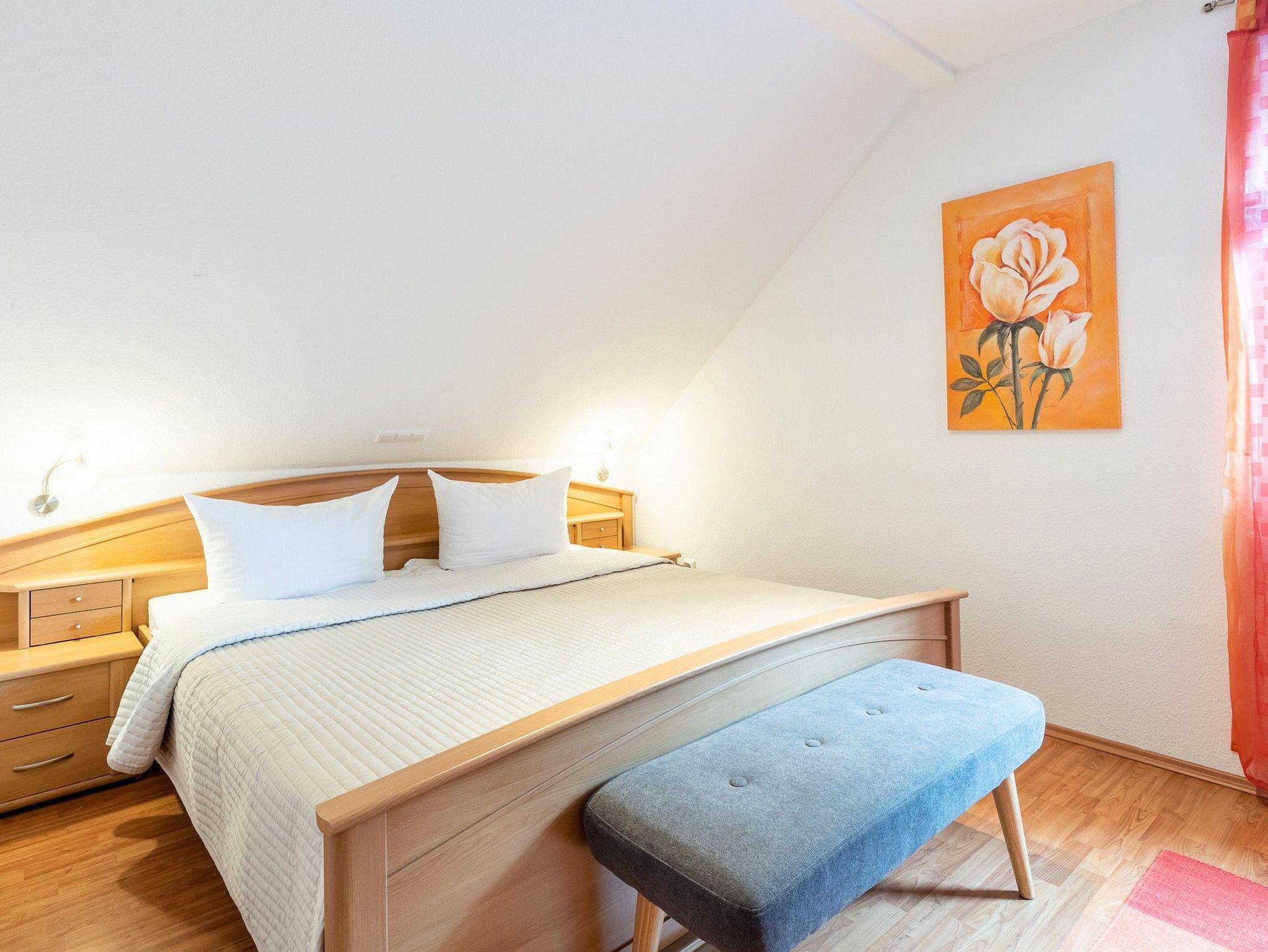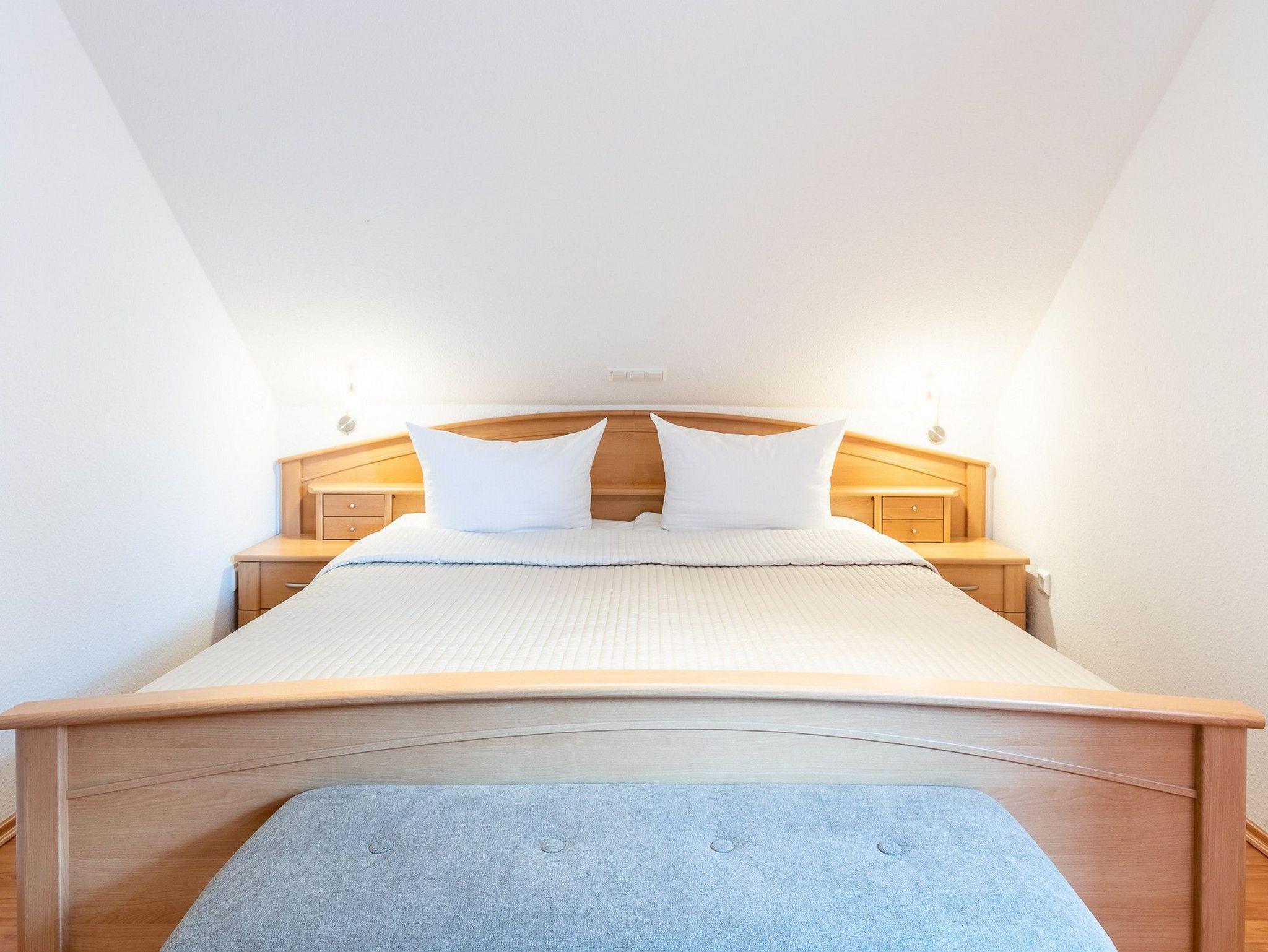 Ebenso befindet sich auch dieser Etage eines der 3 Schlafzimmer. Dieses ist mit Doppelbett und einem Kleiderschrank für Ihre Garderobe einrichtet.