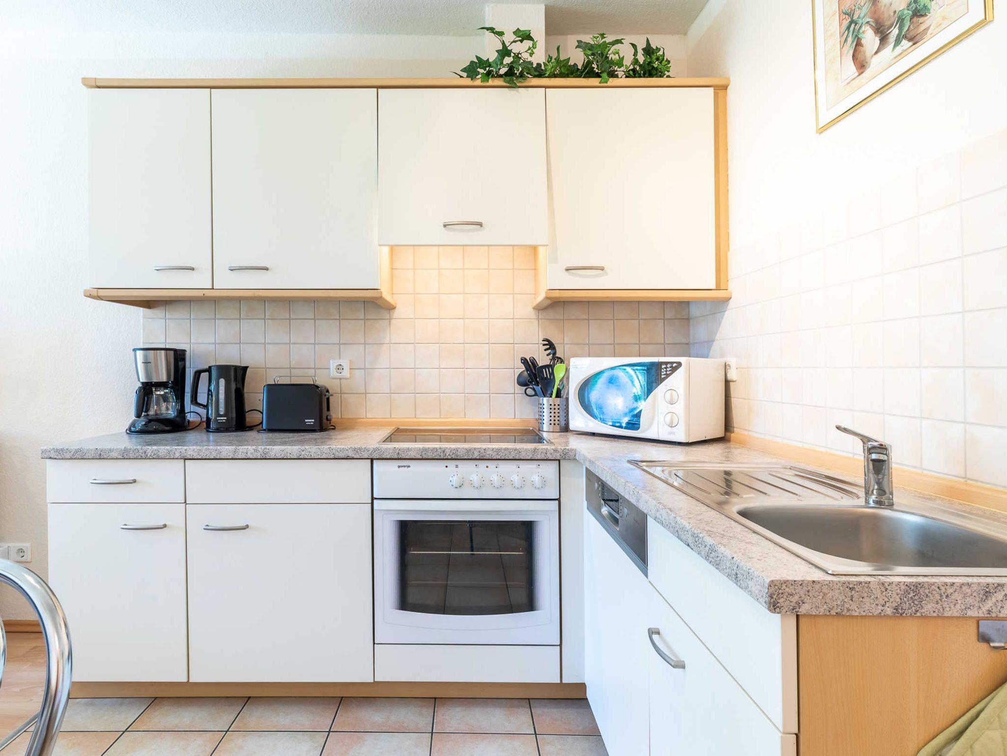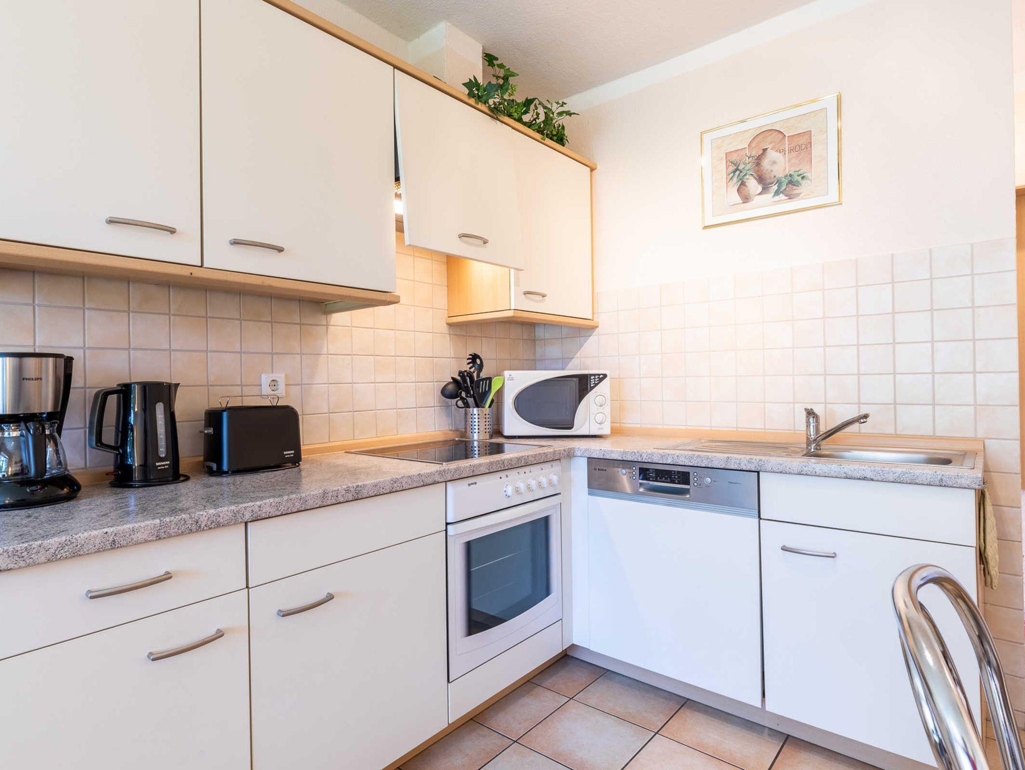 Im kombinierten Wohn-/Essbereich mit hochwertig ausgestatteter Küchenzeile, Essecke und gemütlicher Couch ist genügend Platz, um köstliche Mahlzeiten zuzubereiten oder einfach die Seele baumeln zu lassen. Eine Stereoanlage und ein SAT-TV (Flatscreen) sorgen für Unterhaltung. Die ausziehbare Couch im Wohnzimmer bietet zusätzlich einer dritten Person einen Schlafplatz.