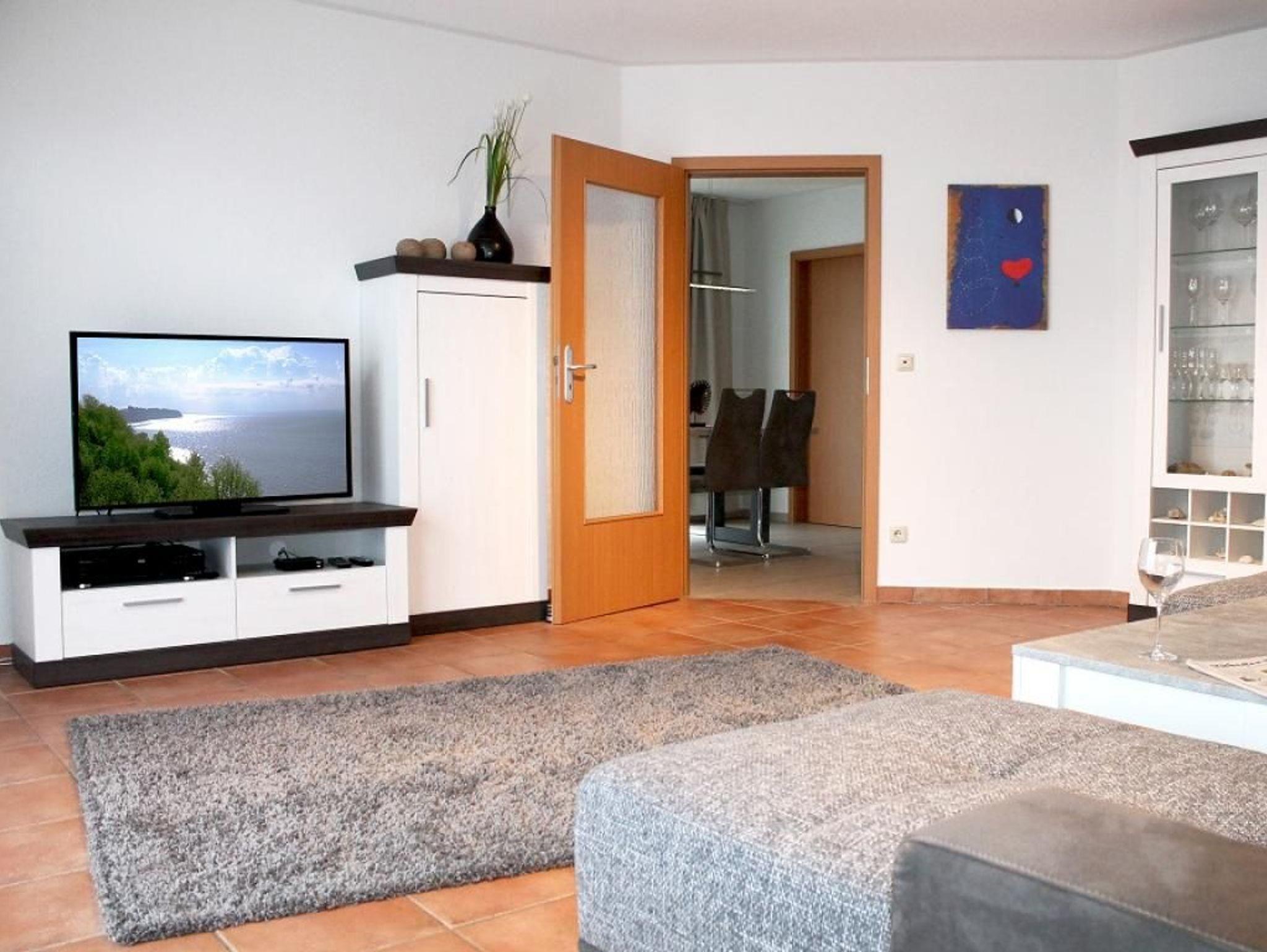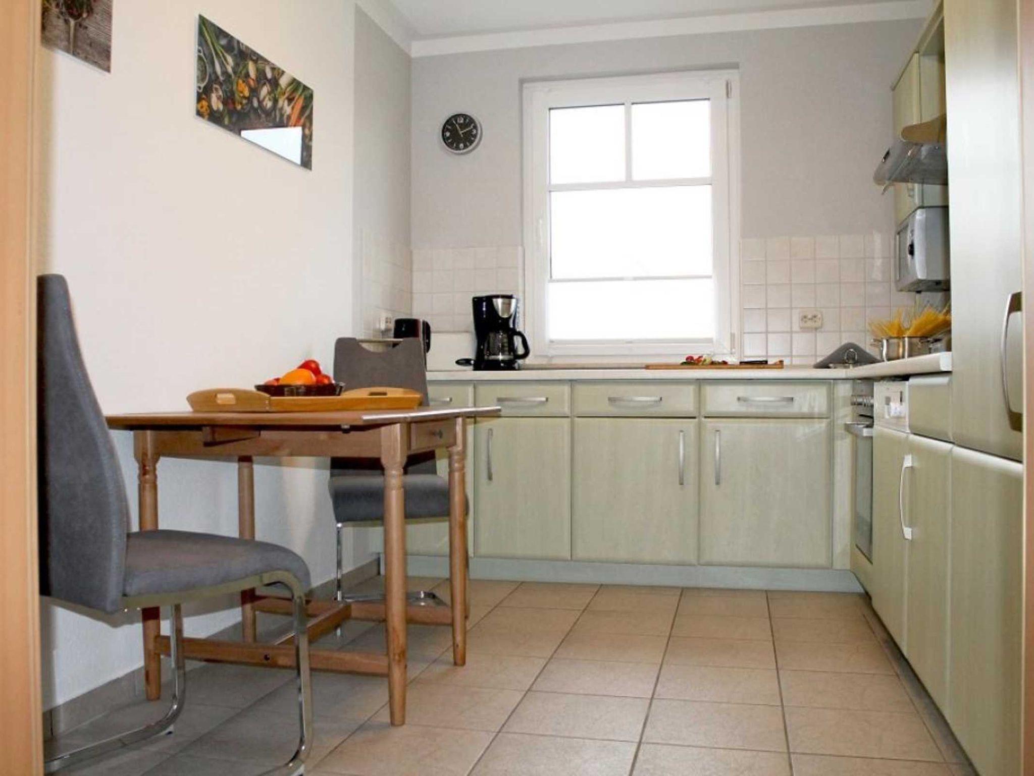 Das charmante 2-Zimmer-Appartement im Erdgeschoss bietet auf 66 m² ein komfortables Zuhause für bis zu vier Personen. Die wohnungseigene Terrasse mit Zugang zum Garten und Südausrichtung verspricht entspannte Stunden an der frischen Ostseeluft. Im stilvoll eingerichteten Wohn-/Essbereich erwarten Sie hochwertiges Mobiliar, warmer Parkettboden und ein komfortables Sofa, das sich bei Bedarf in eine zusätzliche Schlafgelegenheit verwandeln lässt. Für Unterhaltung sorgen Fernseher, DVD-Player sowie eine Radio-/Musikanlage. WLAN kostenfrei. Die gemütliche Essdiele schafft den idealen Rahmen, um Mahlzeiten in angenehmer Atmosphäre zu genießen. Die separate, voll ausgestattete Küche lädt zum Kochen ein: Herd, Backofen, Mikrowelle, Dunstabzug, Geschirrspüler, Kühlschrank mit Gefrierfach, Kaffeemaschine, Toaster und Wasserkocher stehen bereit. Je nach Wunsch speisen Sie am kleinen Sitzbereich in der Küche oder am großzügigen Esstisch der Essdiele. Das separate Schlafzimmer mit Doppelbett und Kleiderschrank bietet ideale Voraussetzungen für erholsame Nächte. Das moderne Tageslicht-Duschbad ist mit Waschtisch, WC, Handtuchheizkörper sowie einer kostenfrei nutzbaren Waschmaschine ausgestattet. Ein Bügeleisen steht ebenfalls zur Verfügung. Für zusätzlichen Komfort sorgt die Fußbodenheizung in der gesamten Wohnung. Ihren Pkw parken Sie bequem und sicher in der zur Wohnung gehörenden Garage.