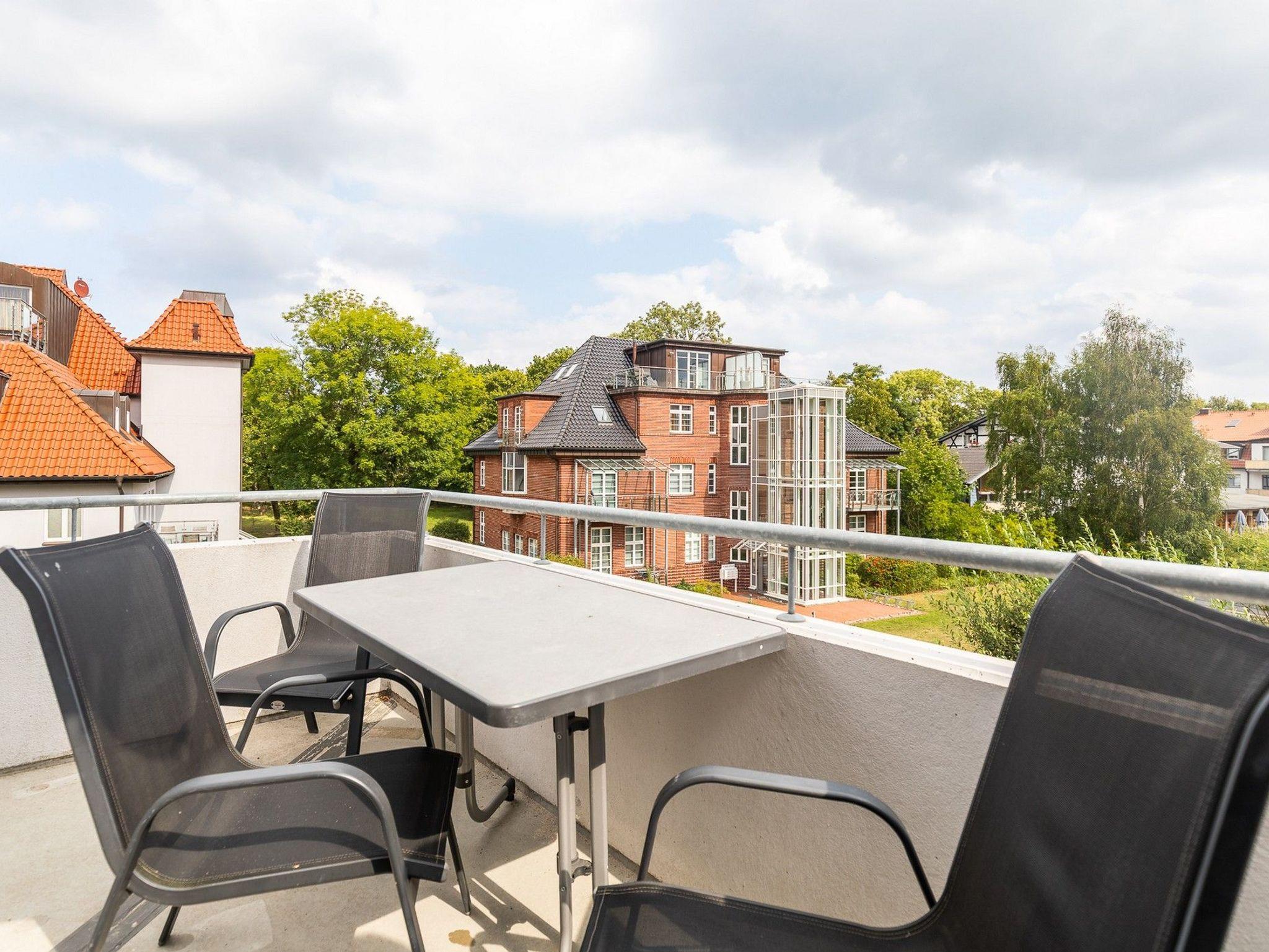 Nutzen Sie gern den möblierten Nordost-Balkon zum Verweilen an der frischen Ostseeluft. Zum Strand ist es nur ein Katzensprung.