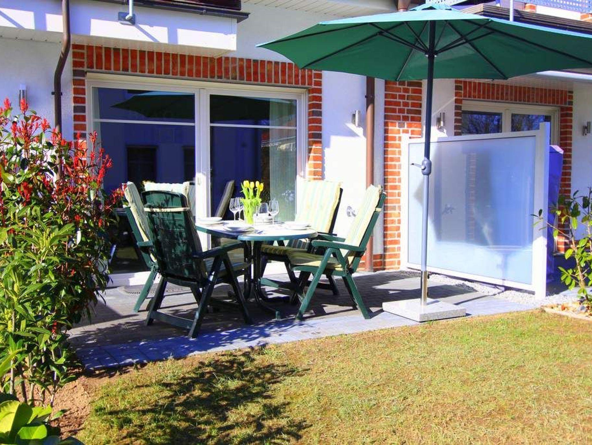 Genießen Sie die herrliche Ostseeluft auf der schönen möblierten Südost-Terrasse, welche Sie vom Wohnzimmer aus erreichen.