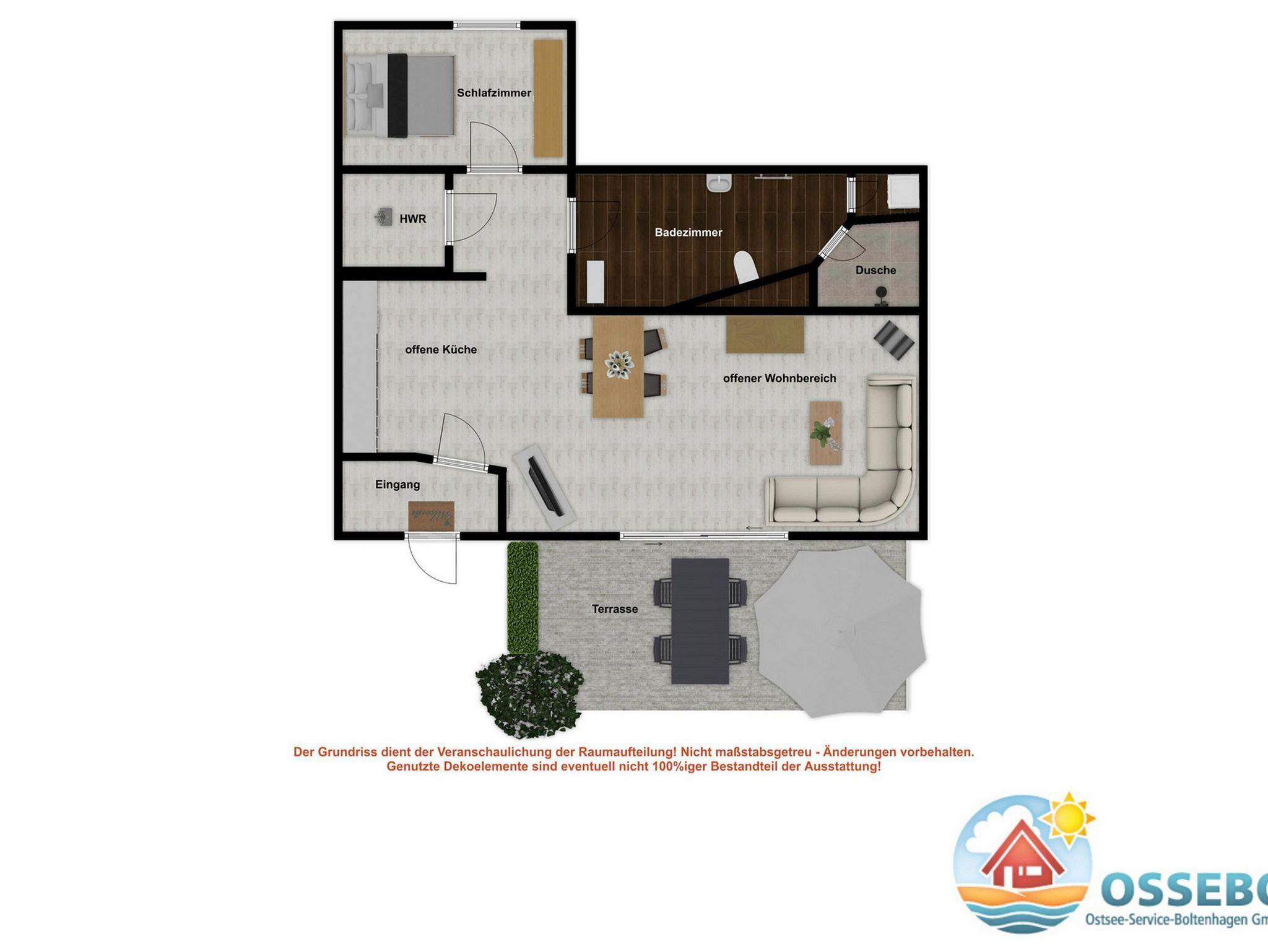 Diese 2-Zimmer-Ferienwohnung mit Kamin im Ostseebad Boltenhagen ist modern und komfortabel eingerichtet.