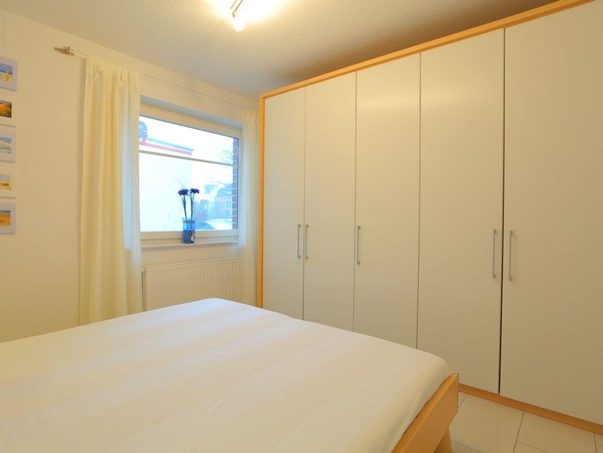 Im Schlafzimmer stehen ein bequemes Doppelbett und ein großer Kleiderschrank bereit.