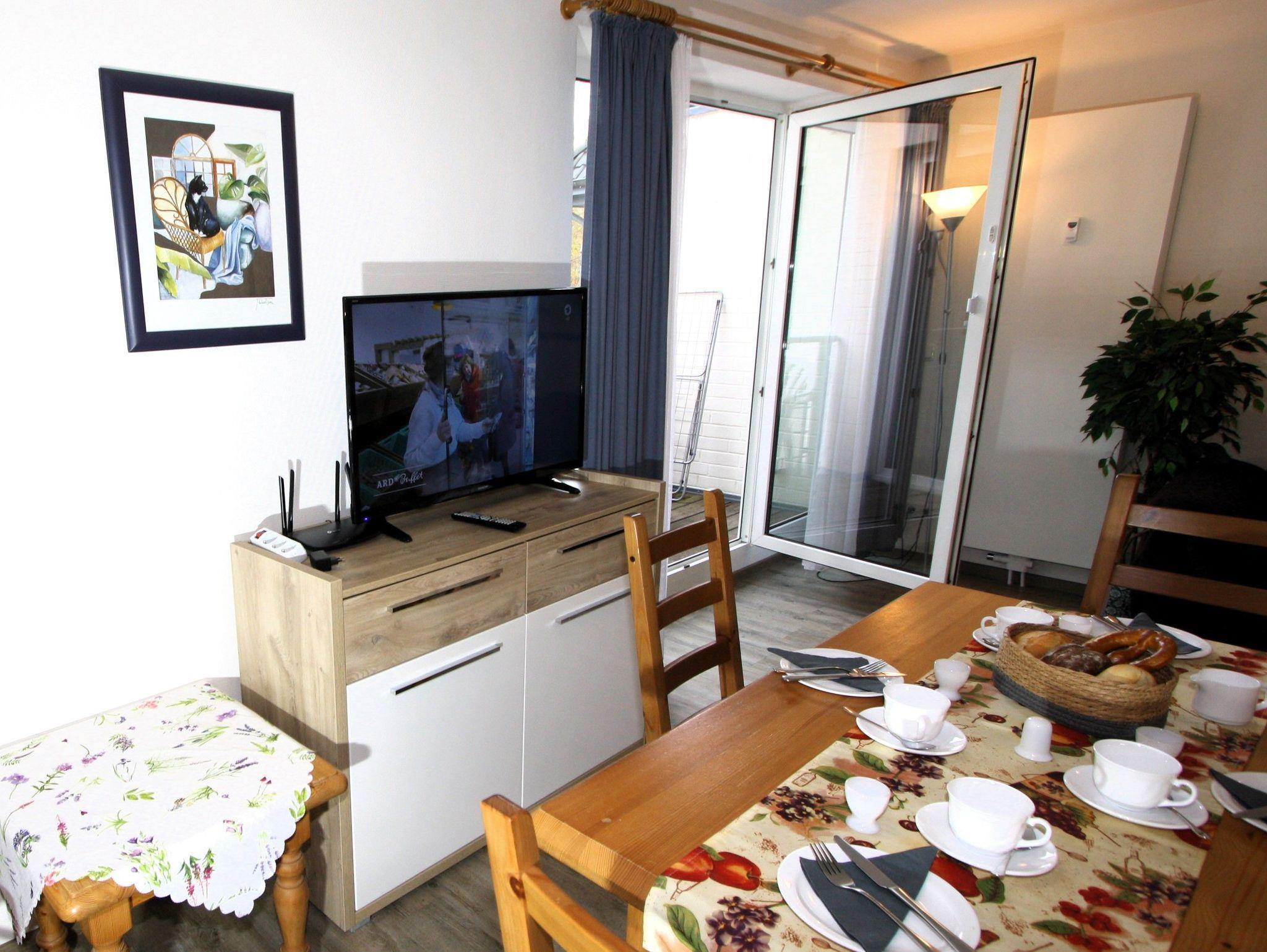 Ihre gut ausgestattete Zwei-Zimmer-Ferienwohnung für bis zu vier Personen verfügt über einen Balkon oder Terrasse, kostenfreies WLAN und sky-Empfang. Sie erreichen die Wohnung bequem mit dem Aufzug, für Ihren PKW steht ein Platz in der Tiefgarage zur Verfügung. Dort befindet sich zudem ein Waschraum mit Münzwaschmaschinen und Münzwäschetrockner und ein Platz für Ihre Fahrräder.