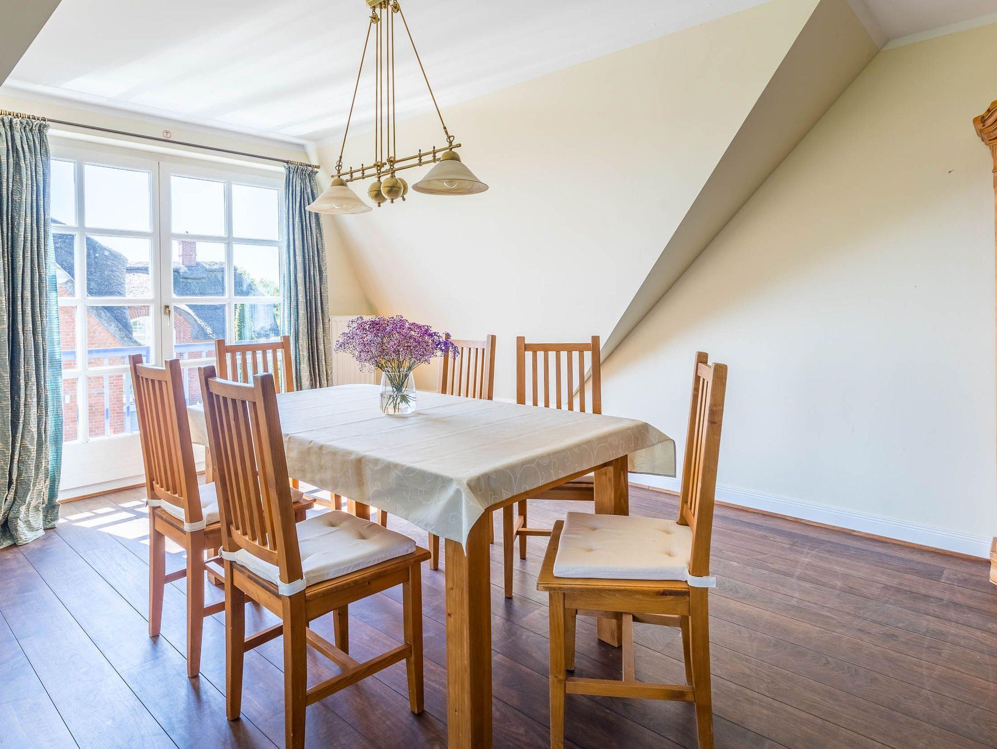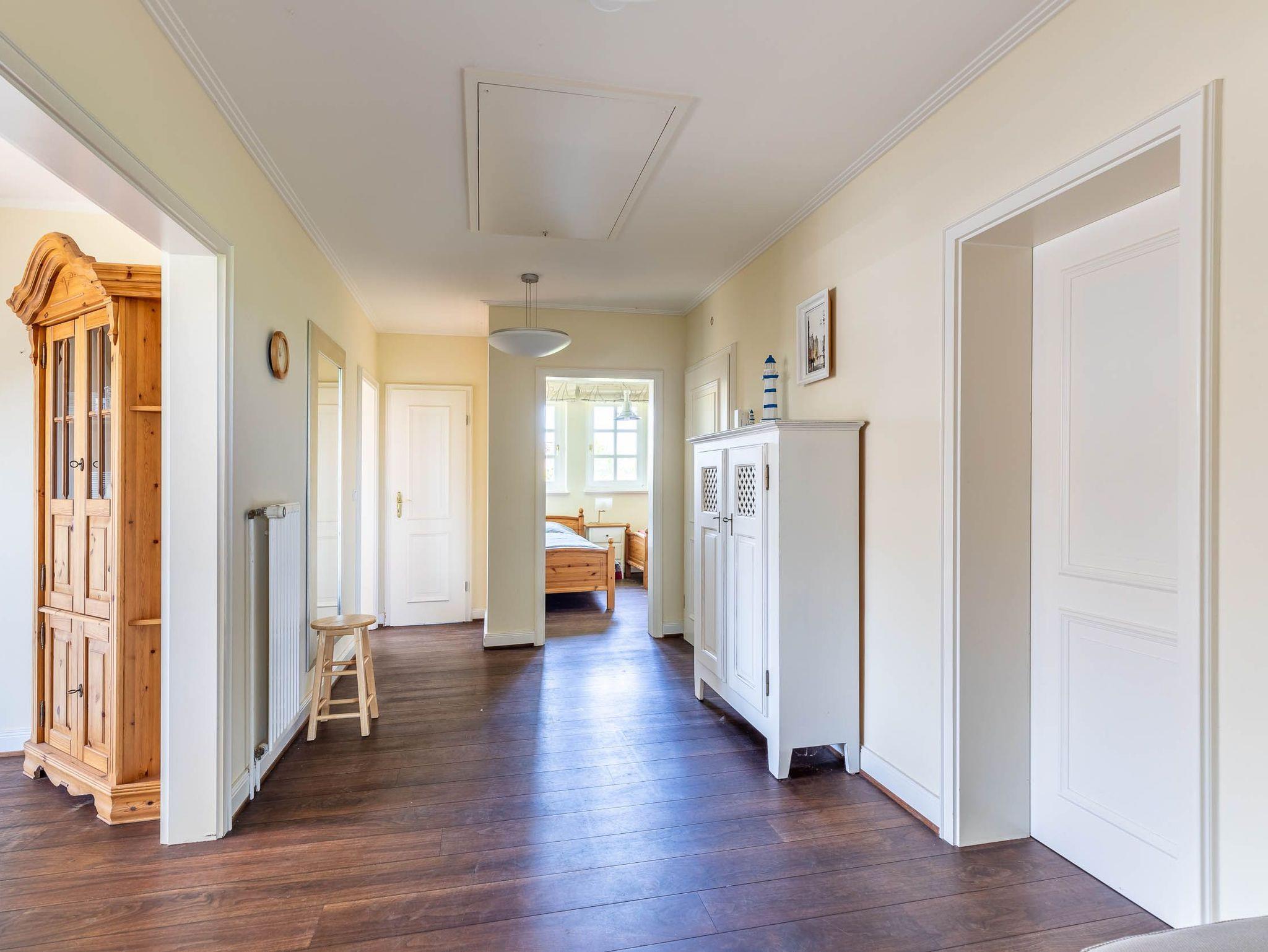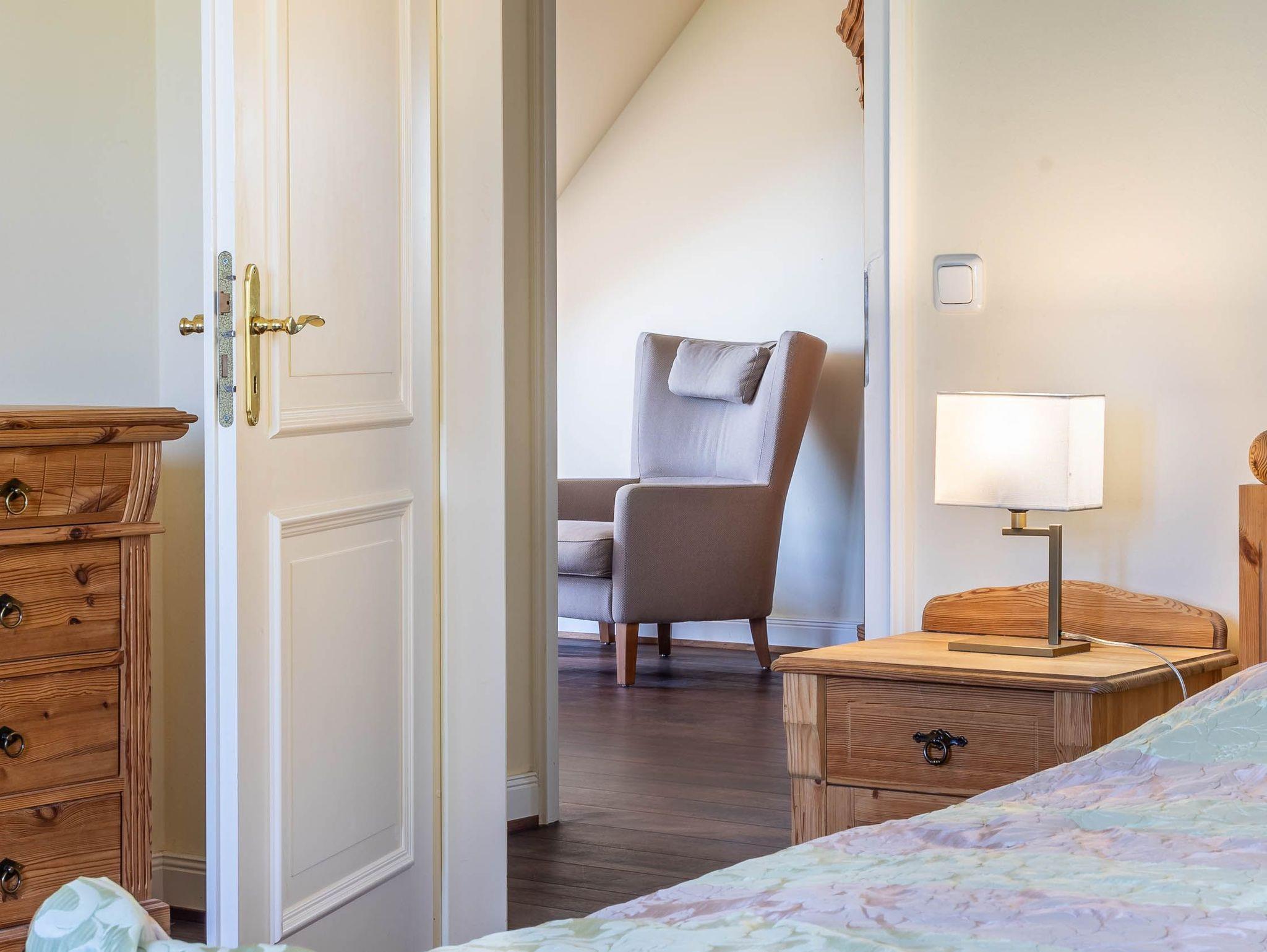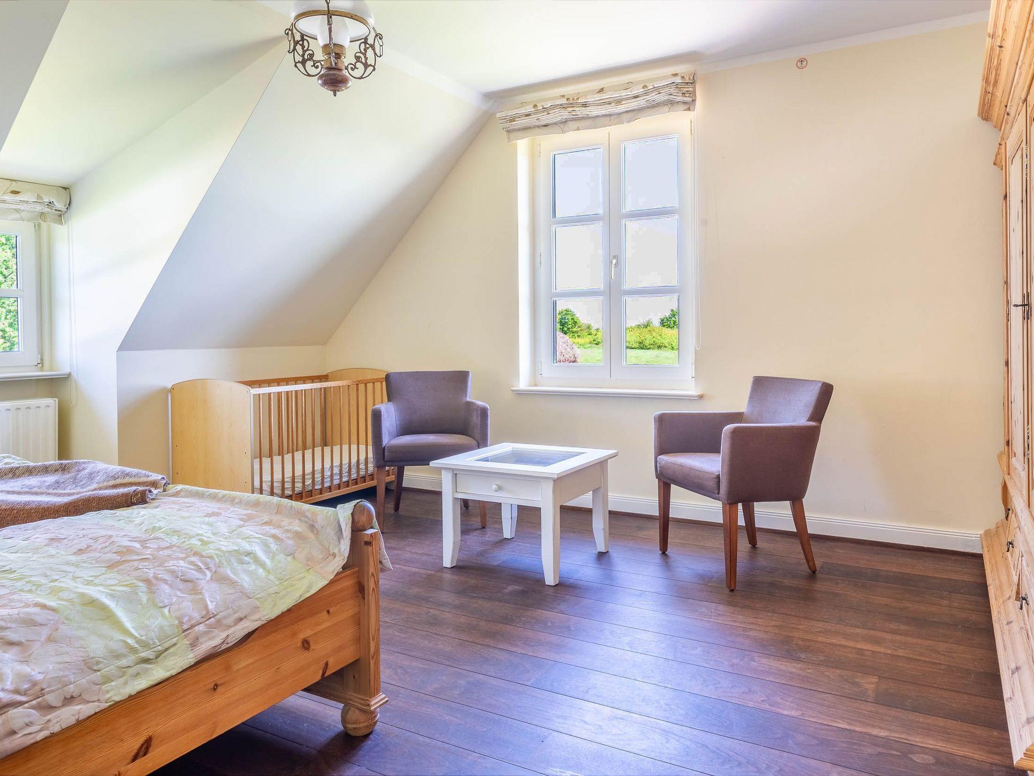 Die komfortable und großzügige 3-Zimmer-Ferienwohnung befindet sich im 1. Obergeschoss und ist für 4 Gäste + Kleinkind komplett eingerichtet.